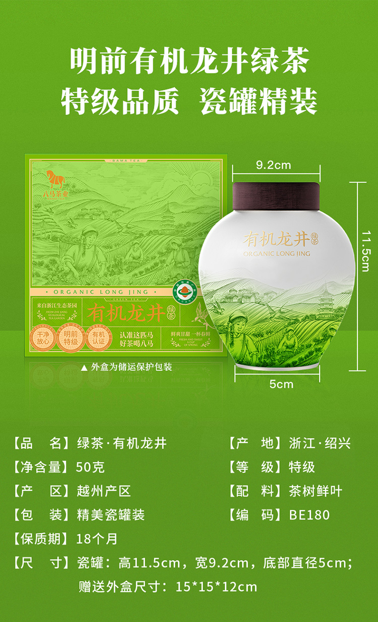 【2025年春茶】八马茶业 | 绿茶有机系列·明前龙井50克