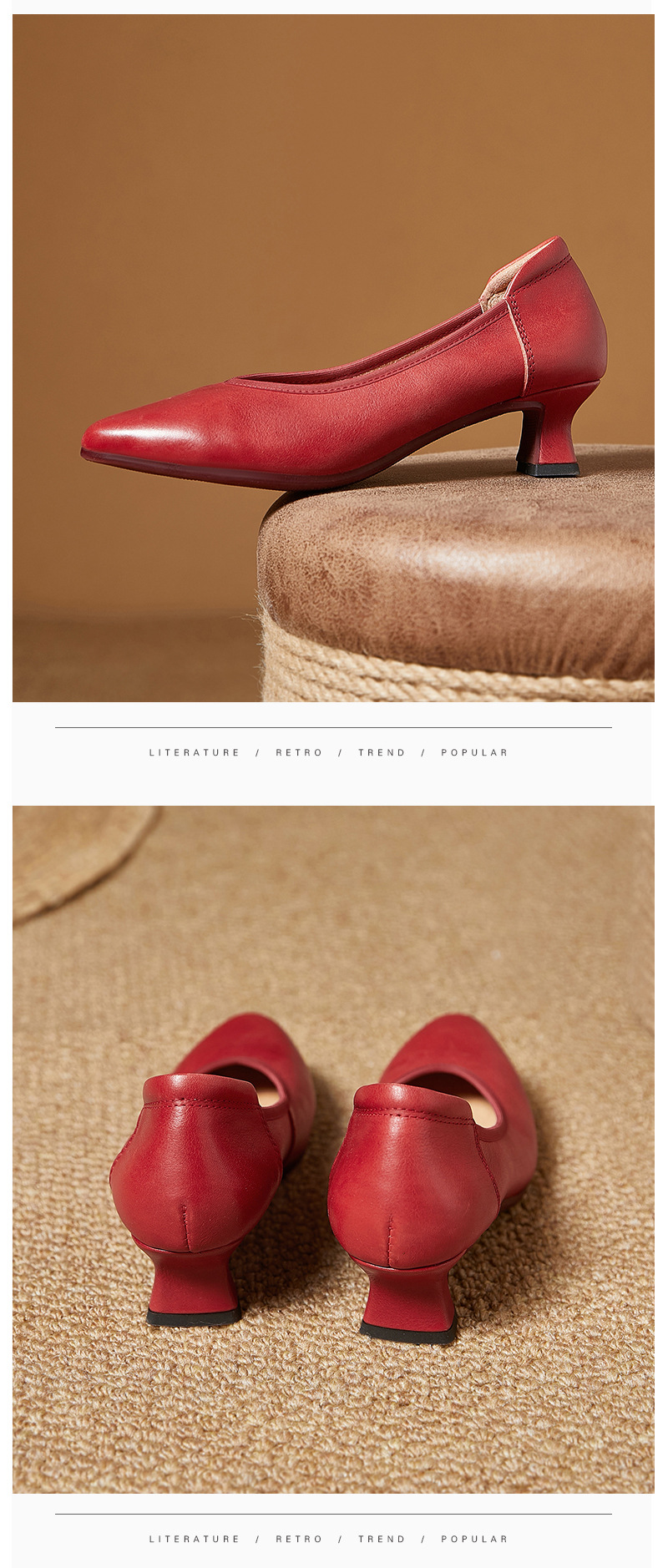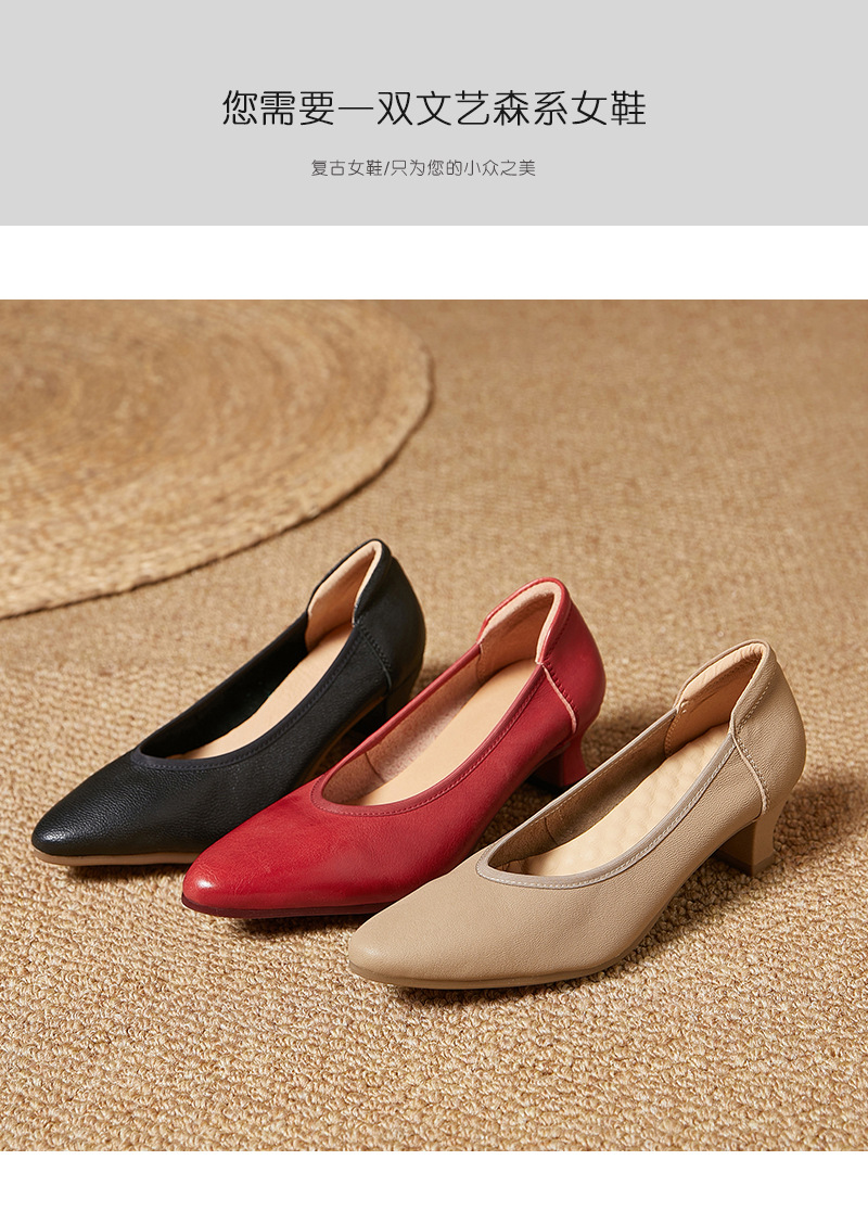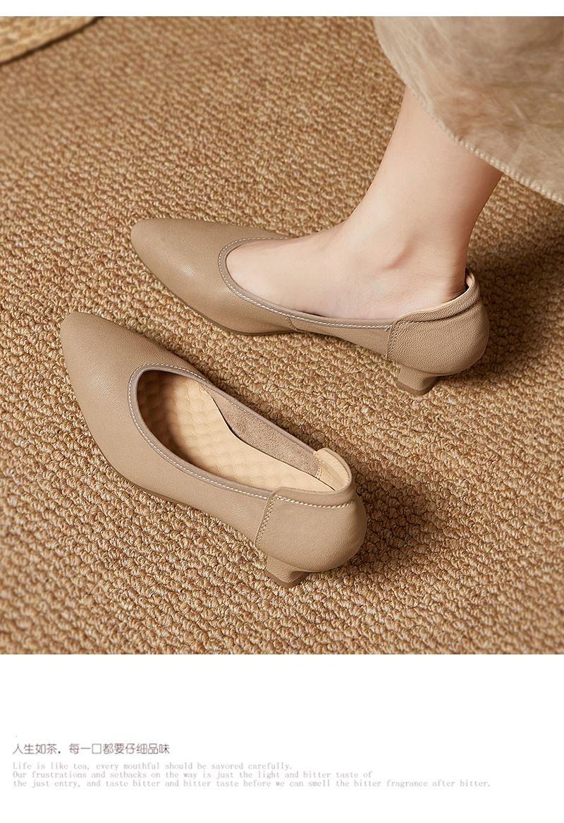 2025新款羊皮小枕头单鞋4公分防磨脚不掉跟尖头女鞋!工作鞋!