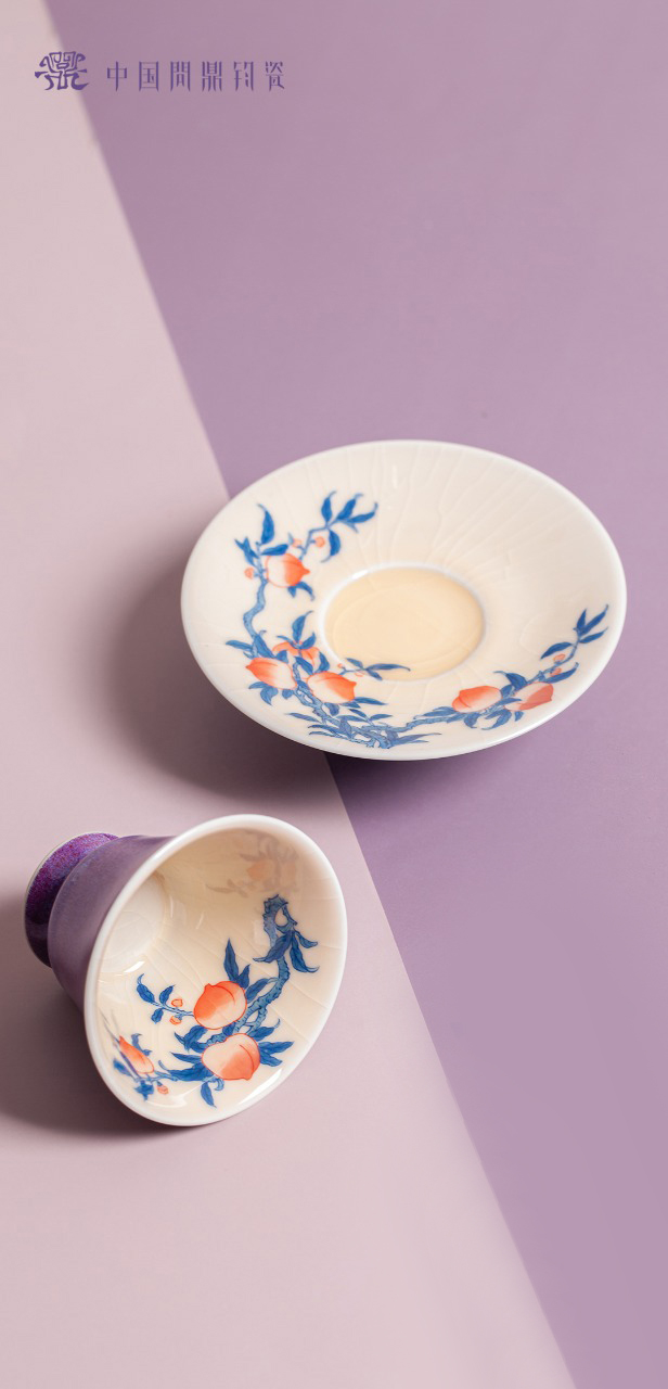 问鼎咖啡中国色咖啡杯粉色(九桃)(梅花鸟)(缺货)