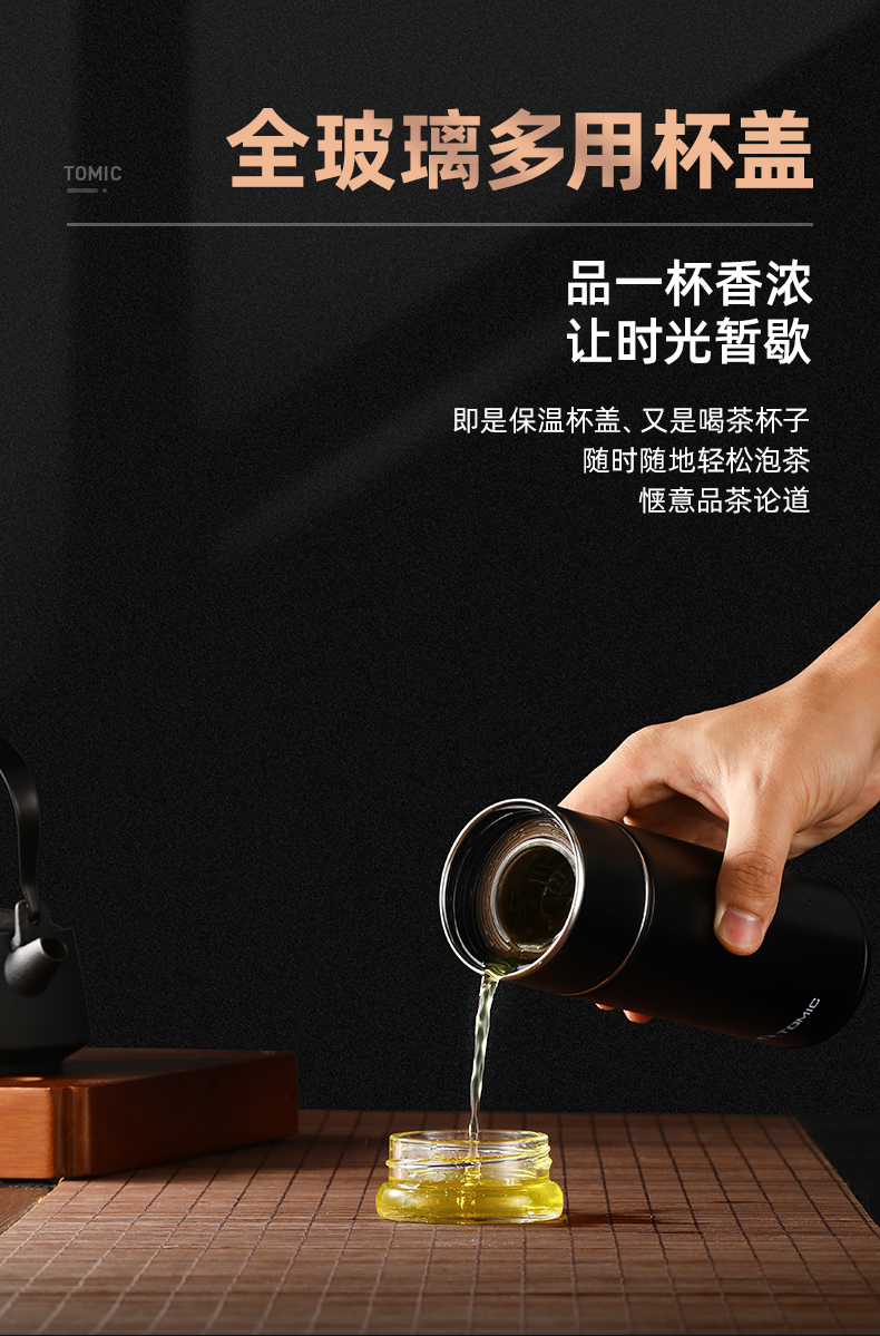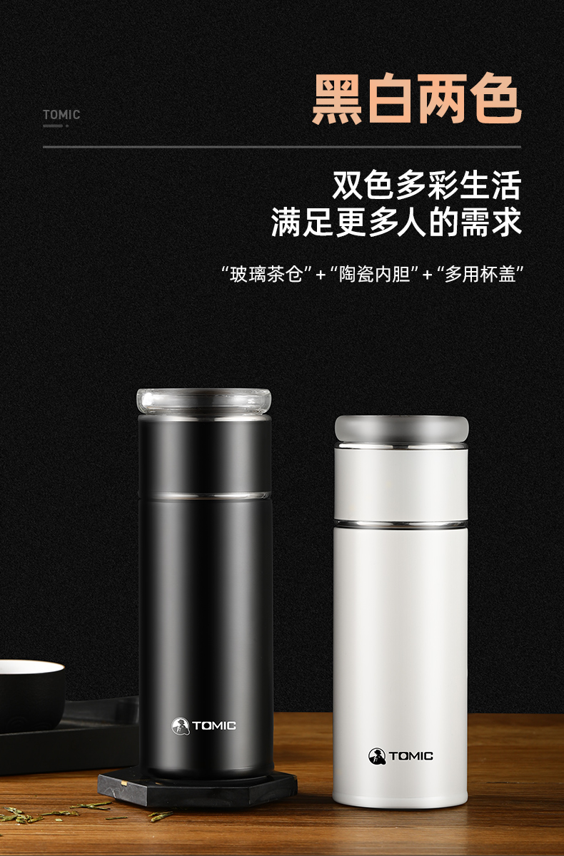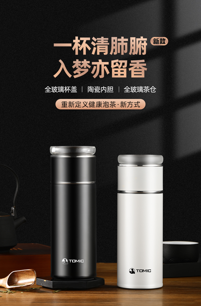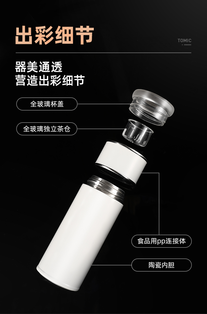特美刻(TOMIC)商务保温杯茶水分离泡茶杯男女便携创意玻璃茶隔水杯子特美赢杯TW00043 白色350ML
