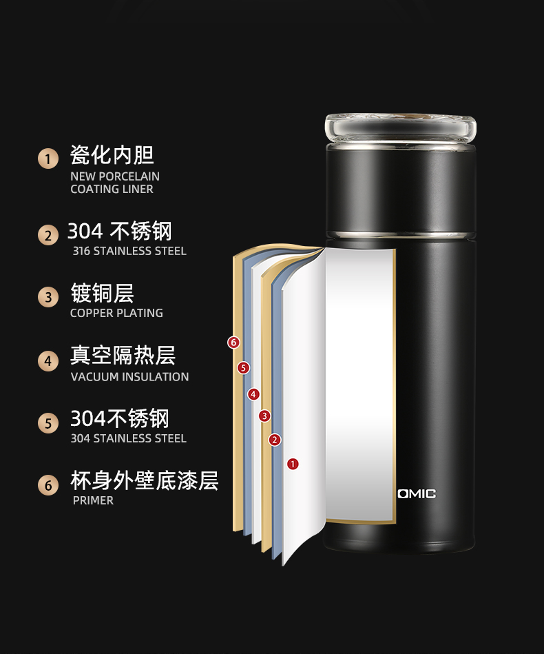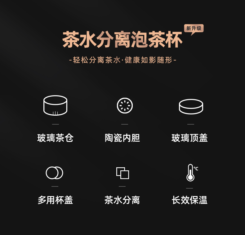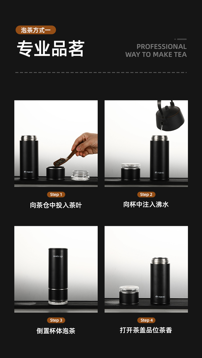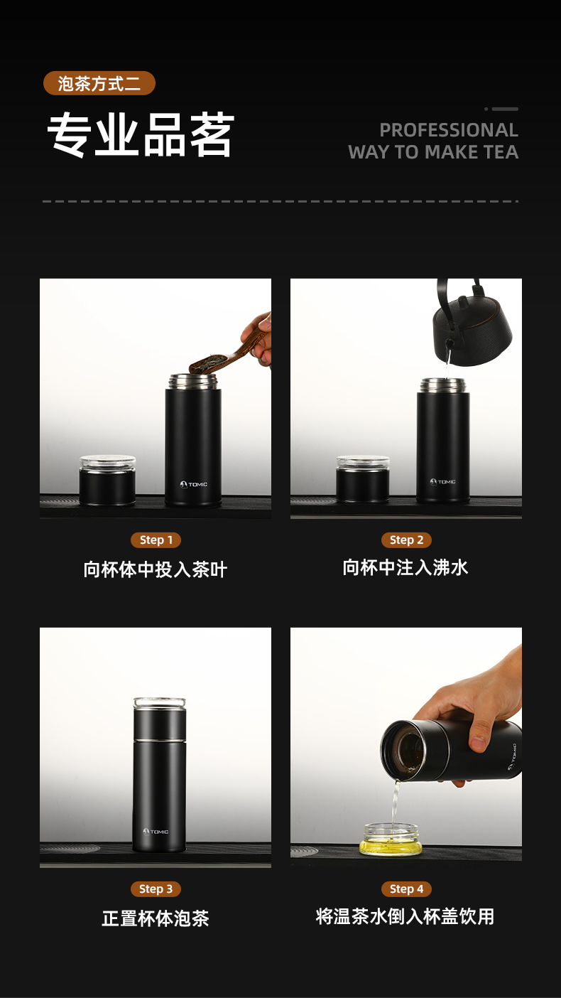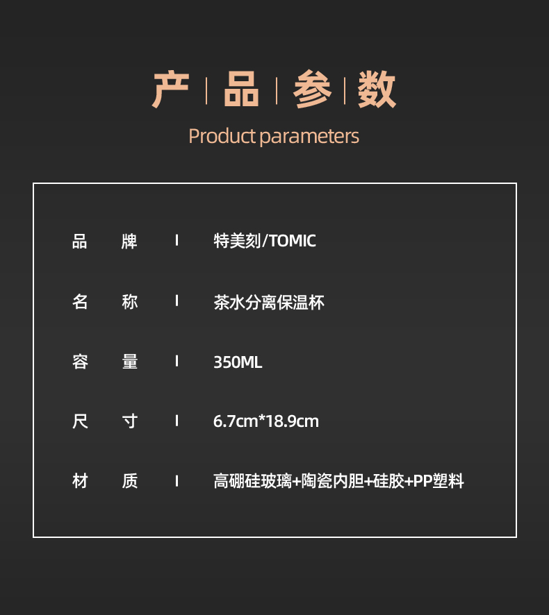 特美刻(TOMIC)商务保温杯茶水分离泡茶杯男女便携创意玻璃茶隔水杯子特美赢杯TW00043 白色350ML