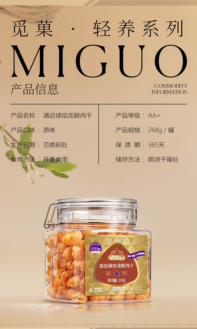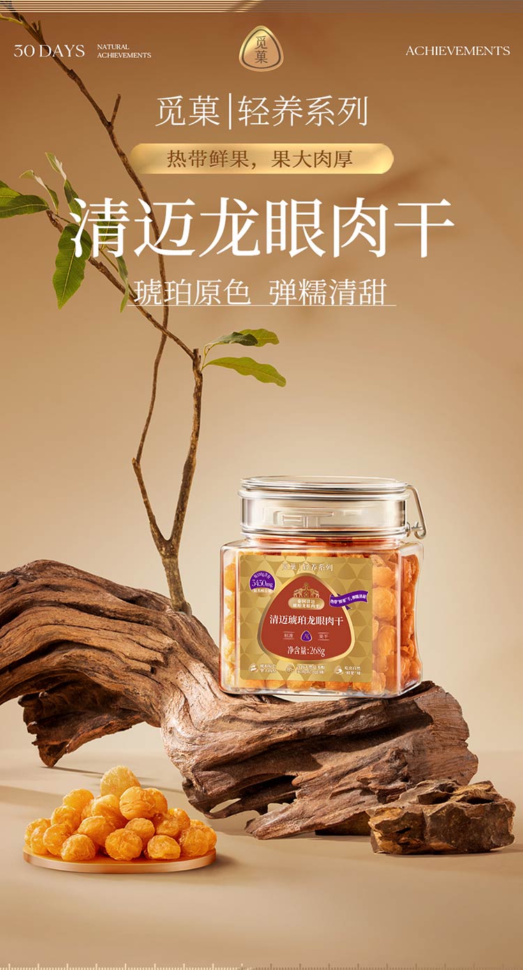 觅菓AA+泰国清迈琥珀龙眼肉干268g原味无添加果干桂圆干零食煲汤