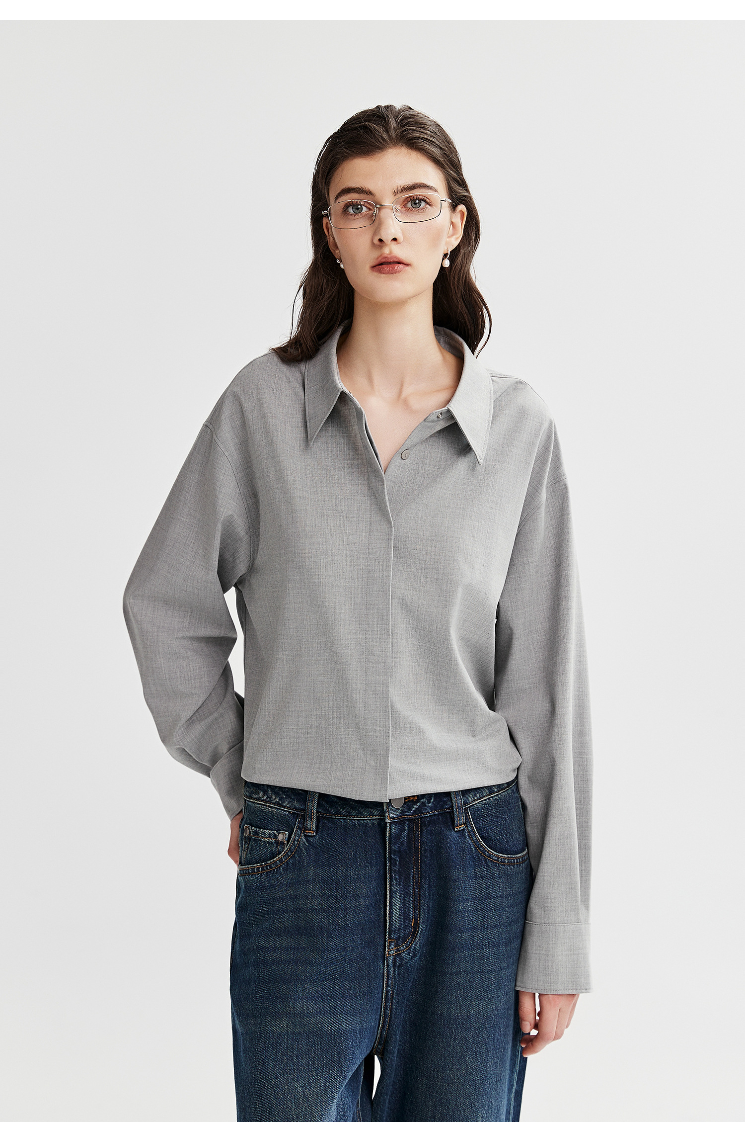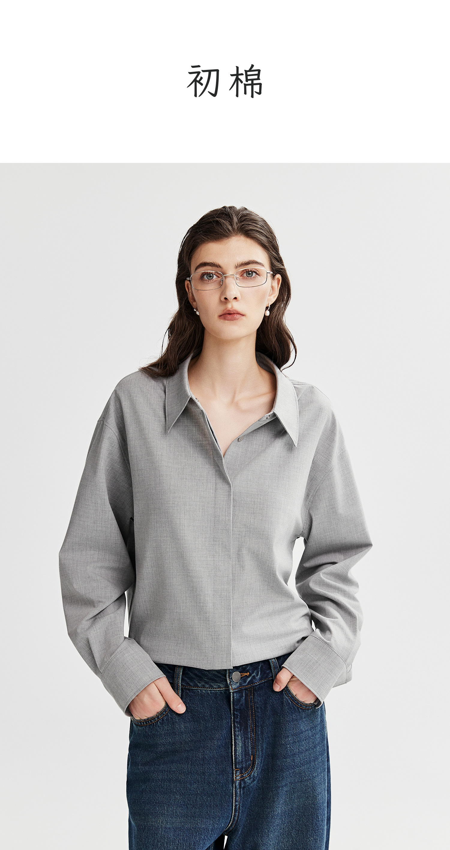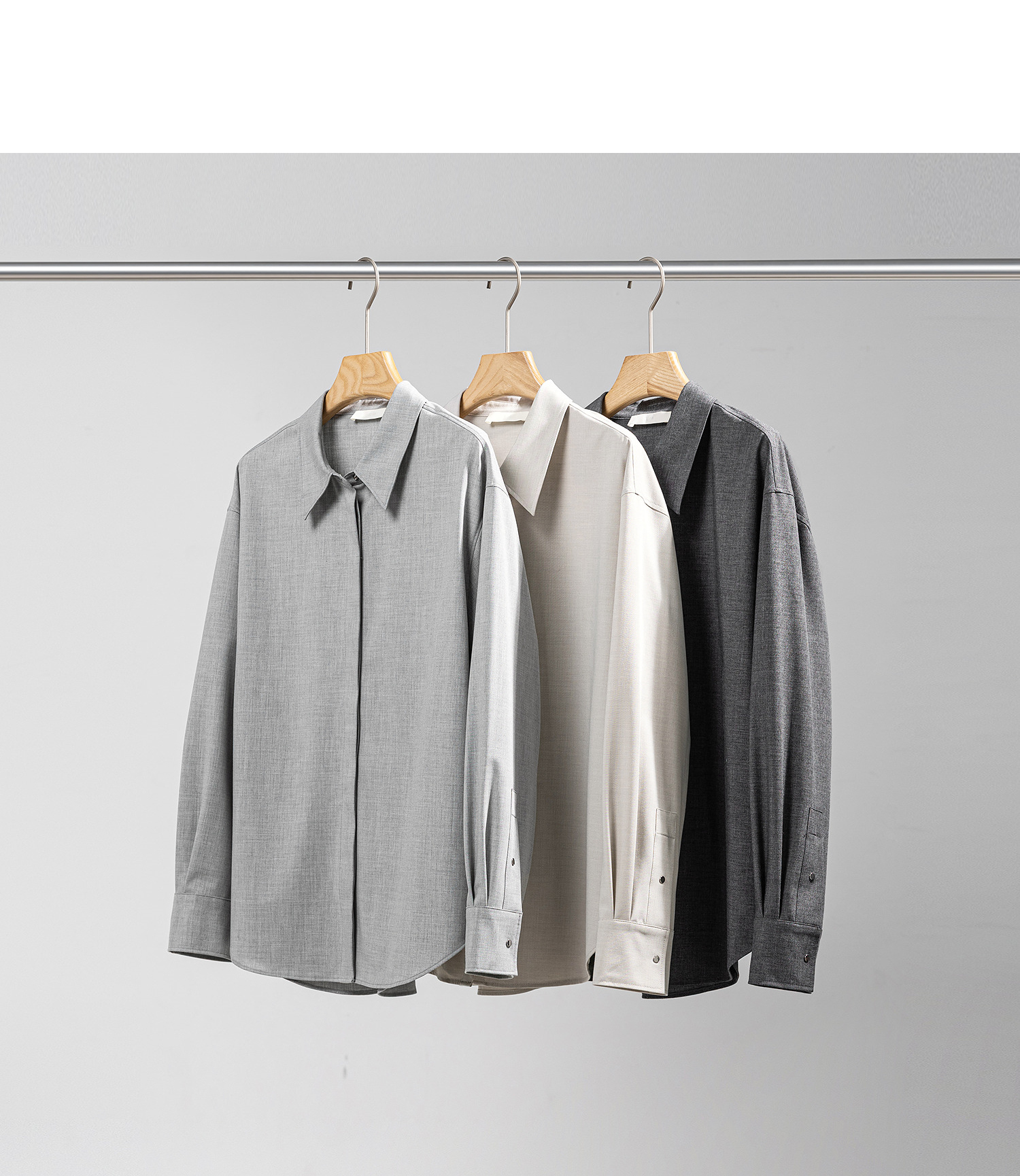 棉仓366604006-暗门襟含羊毛长袖衬衫