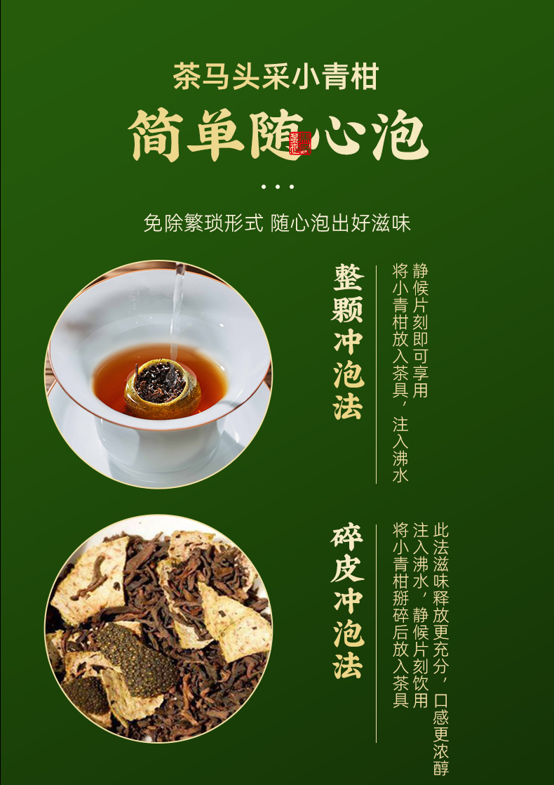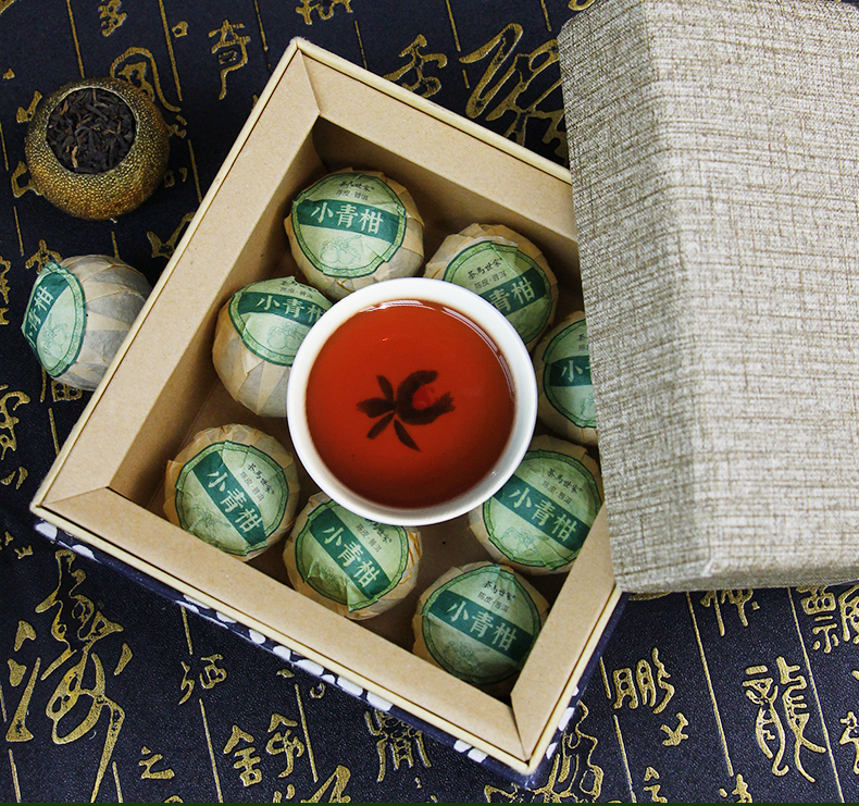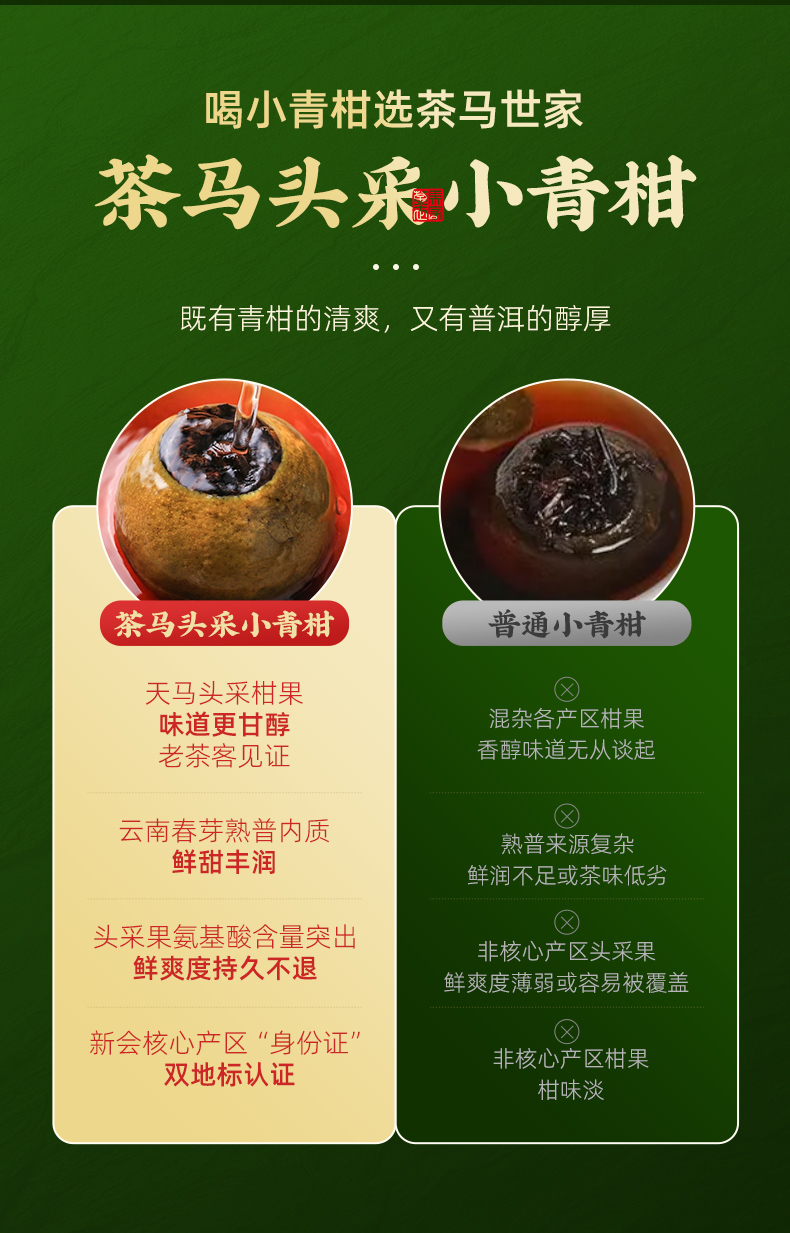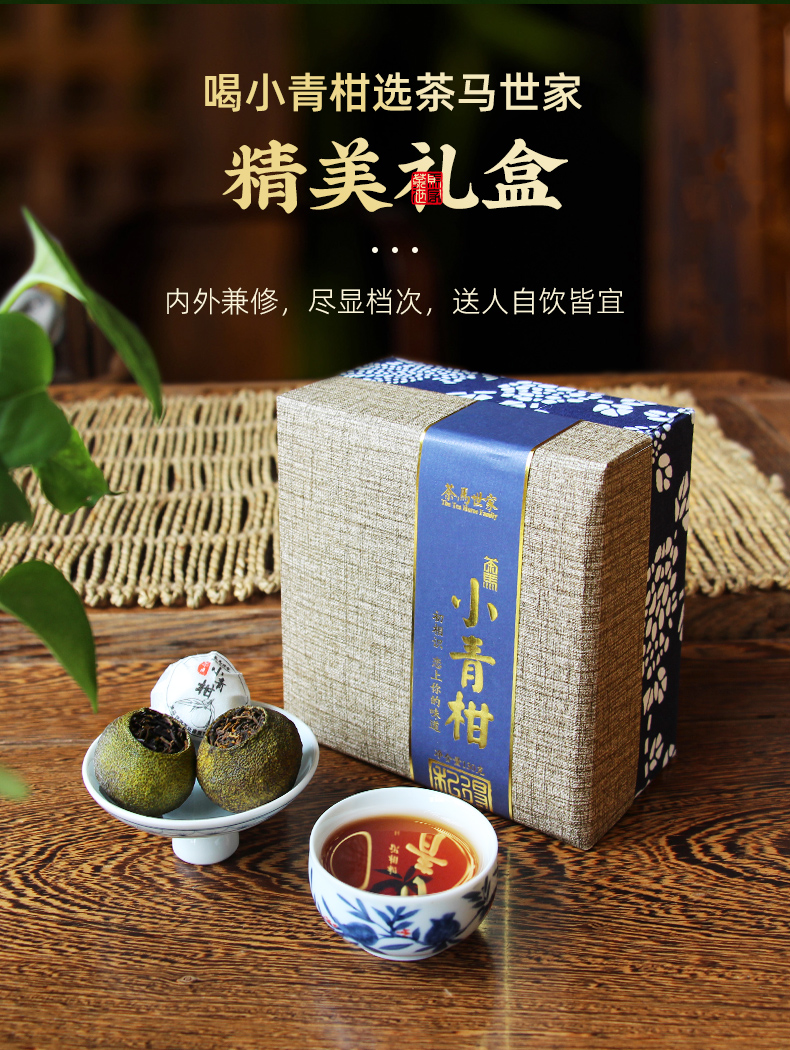 【金奖高颜值】茶马世家 正宗新会小青柑 陈皮 普洱 茶叶柑普熟24粒 绿色礼盒装