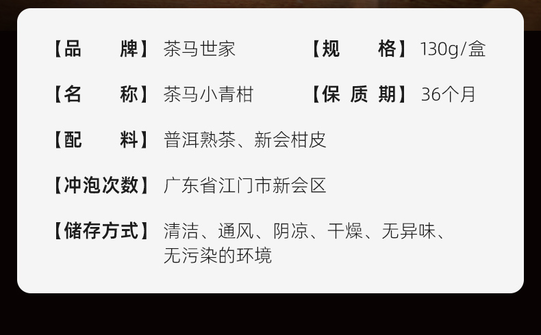 茶马世家 头采新会天马阳光果 全生晒小青柑130g