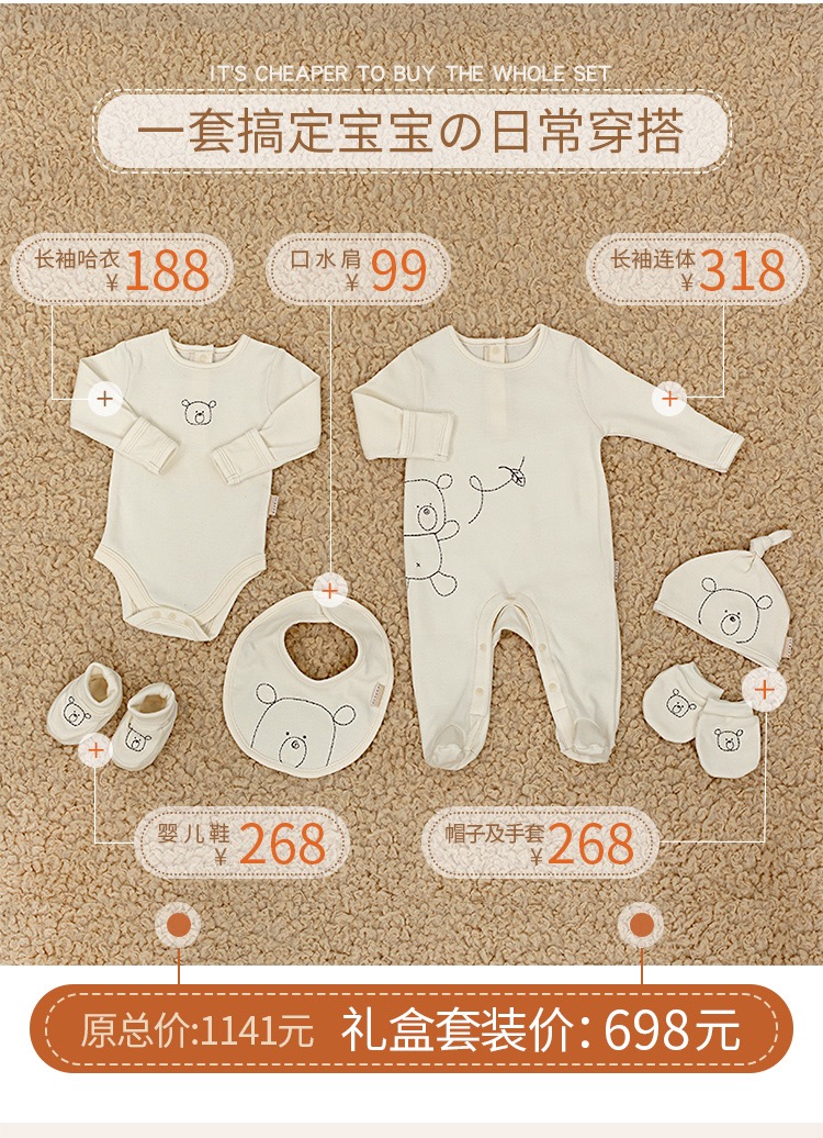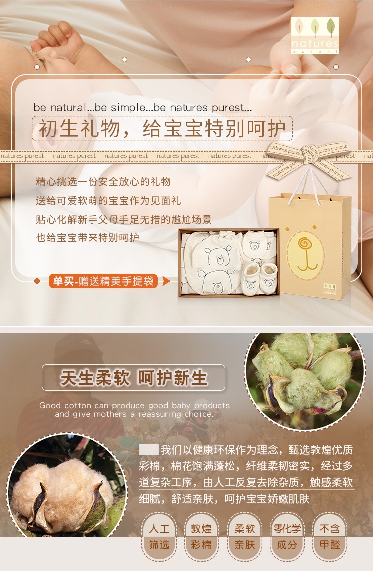 【云粉节】9楼英国natures purest(天然素彩)新生婴儿初生宝宝衣服礼盒套装丨吊牌价:1141元,活动价:660元