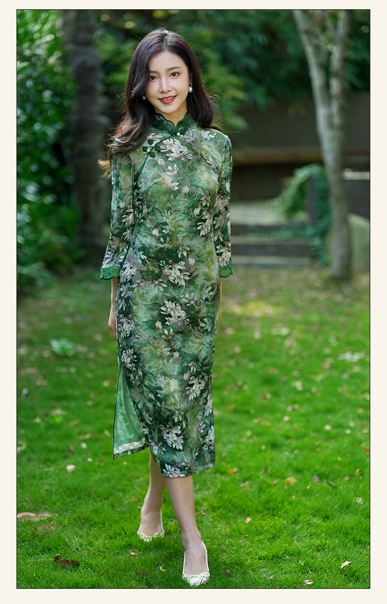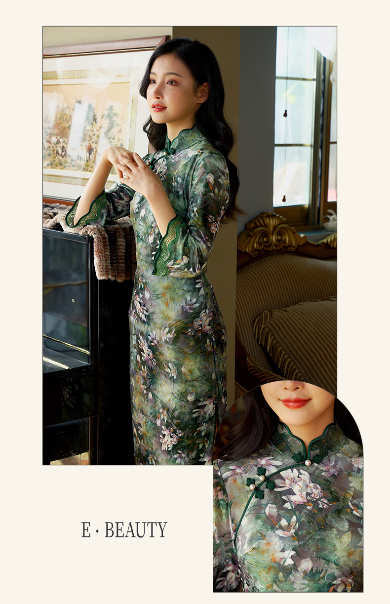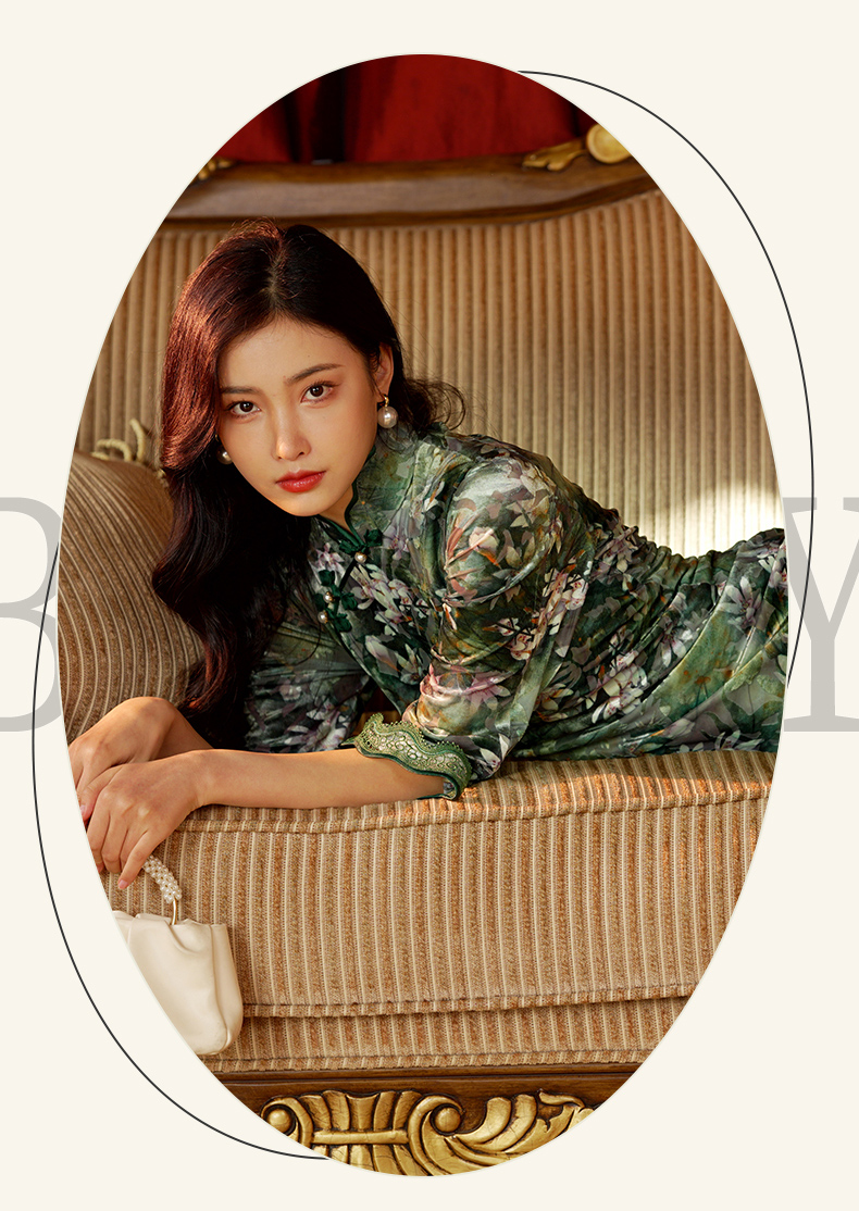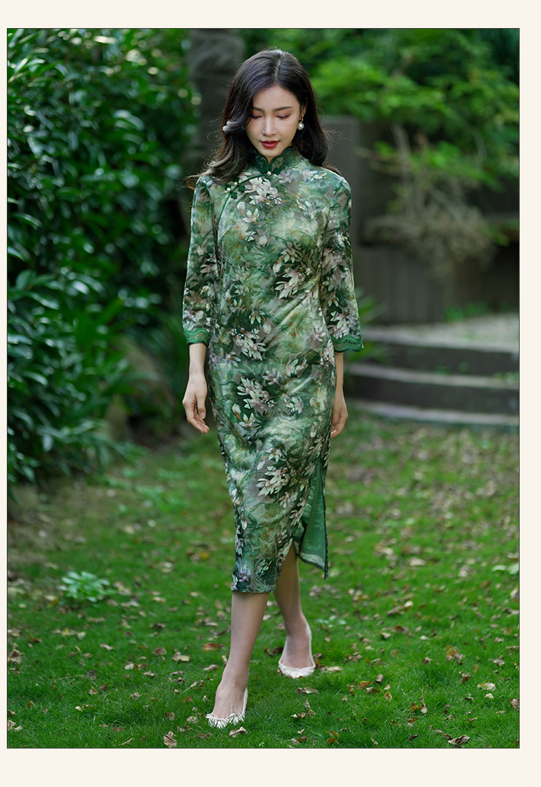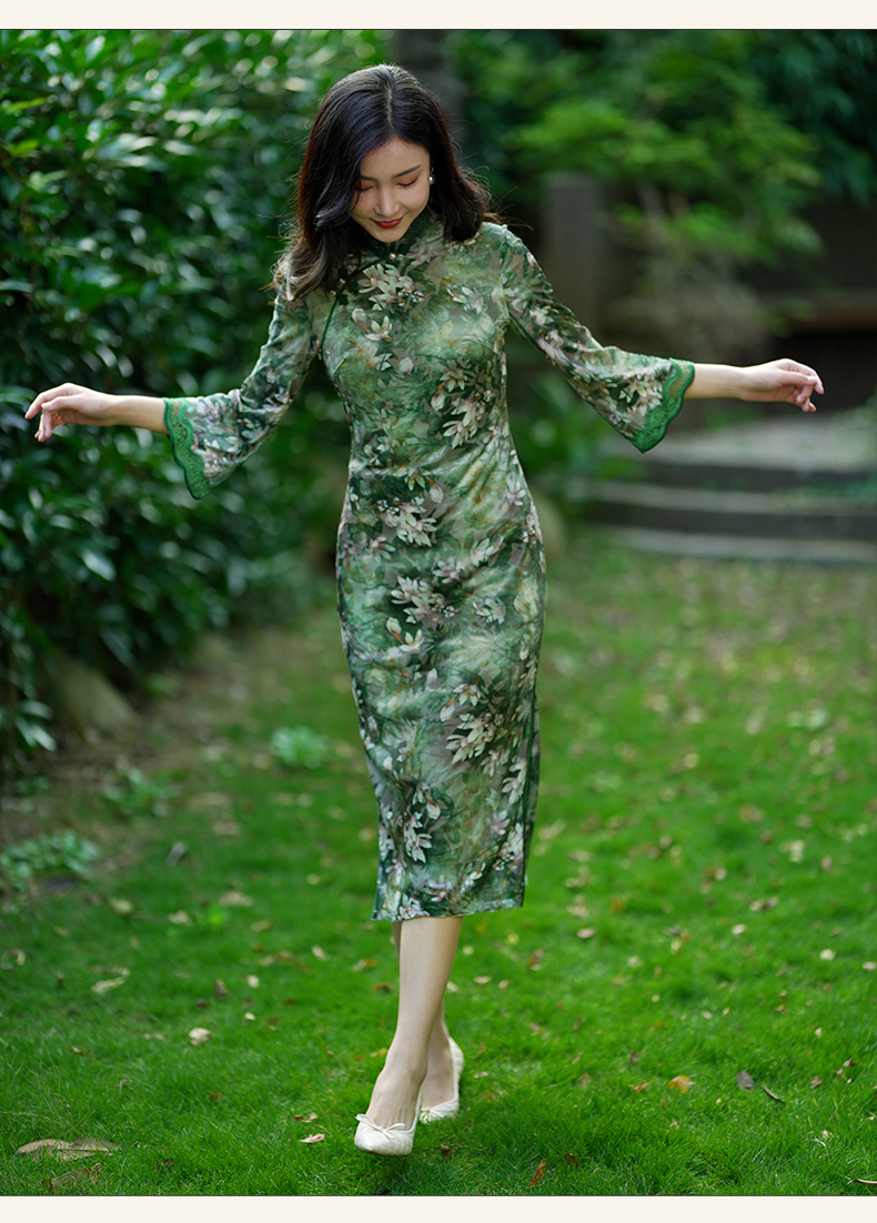 逸红颜苏荷2025春季新款烂花丝绒旗袍改良版连衣裙女弹力针织日常