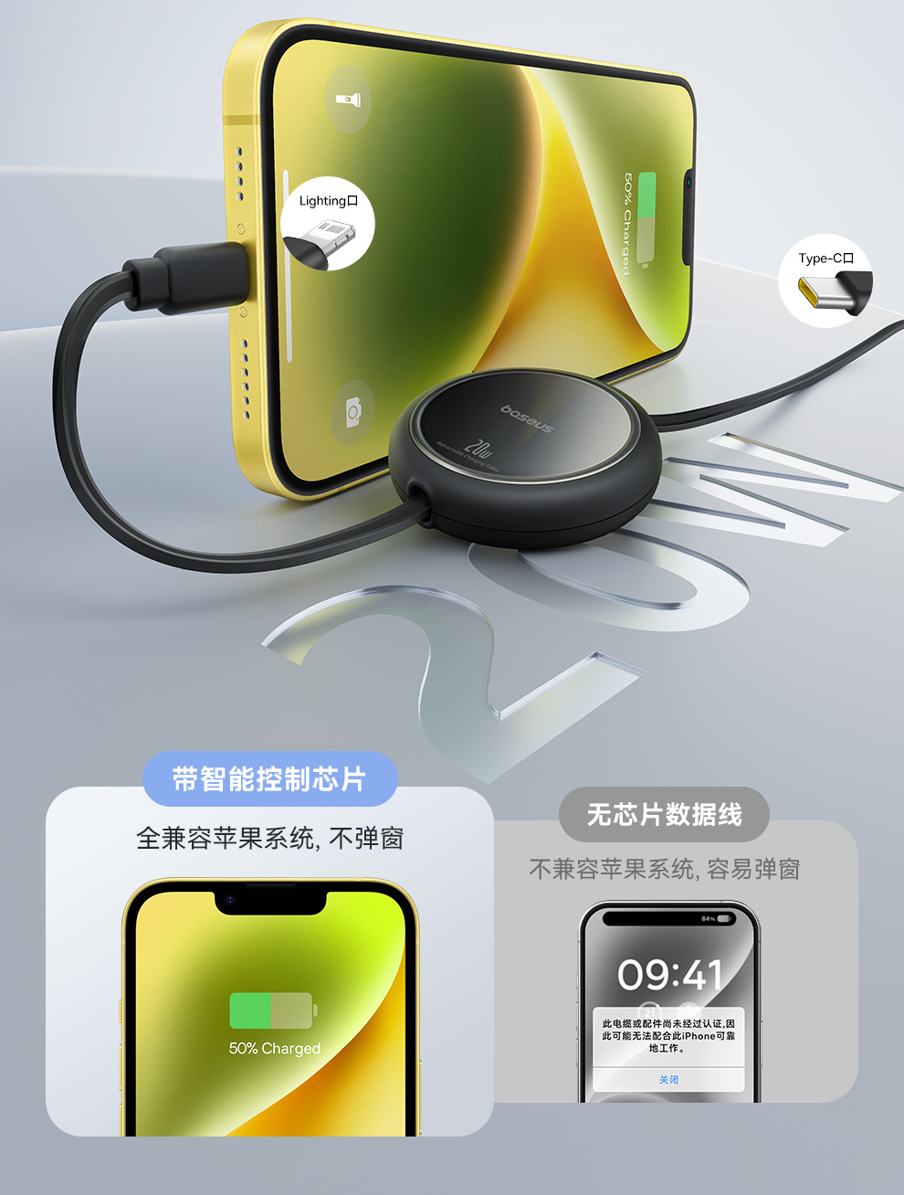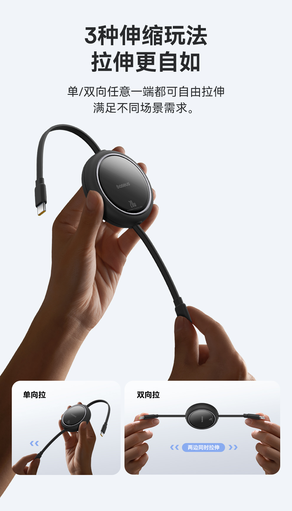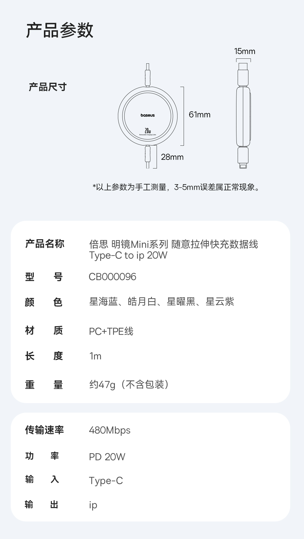 【69元3件】明镜Mini系列 随意拉伸快充数据线 Type-C to iP 20W