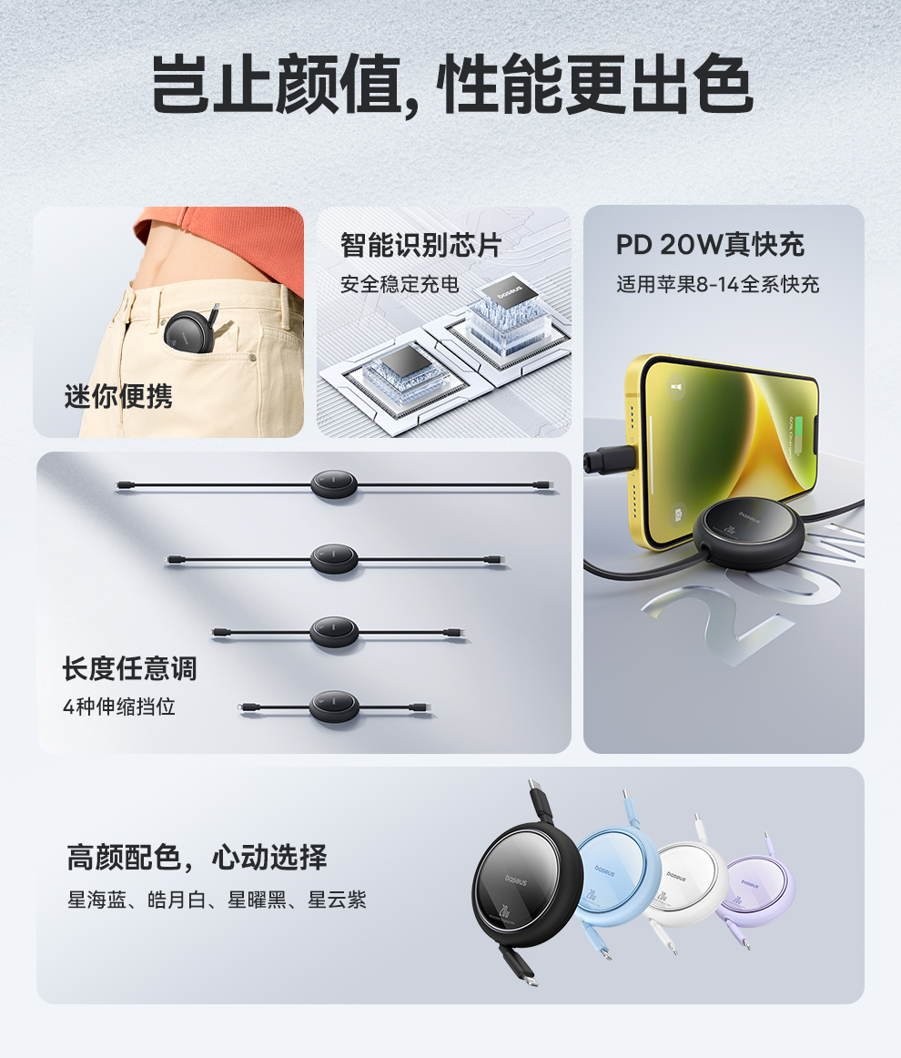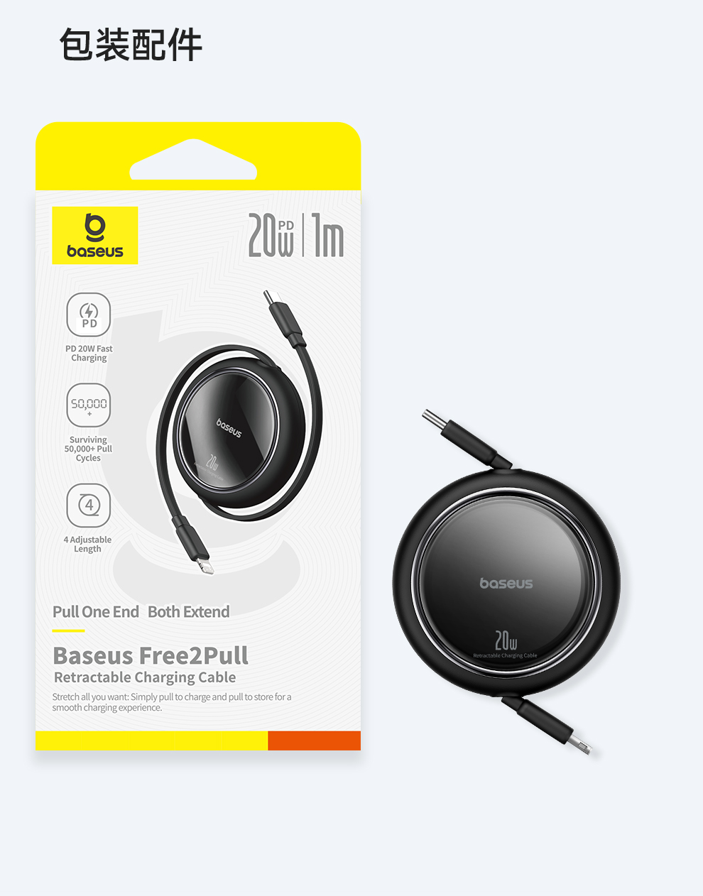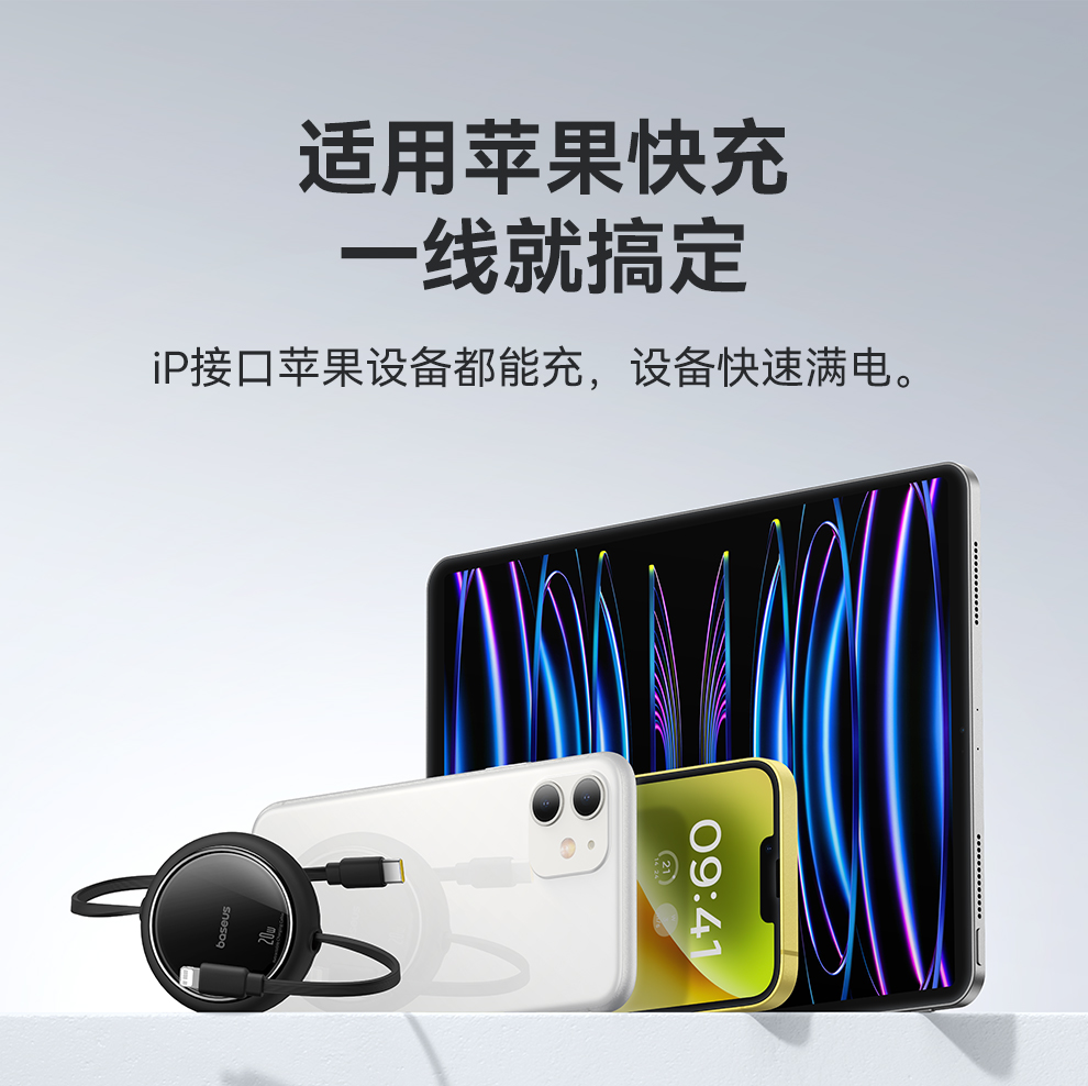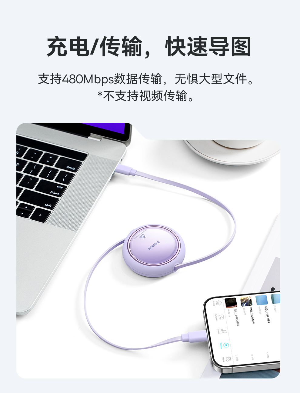 【69元3件】明镜Mini系列 随意拉伸快充数据线 Type-C to iP 20W