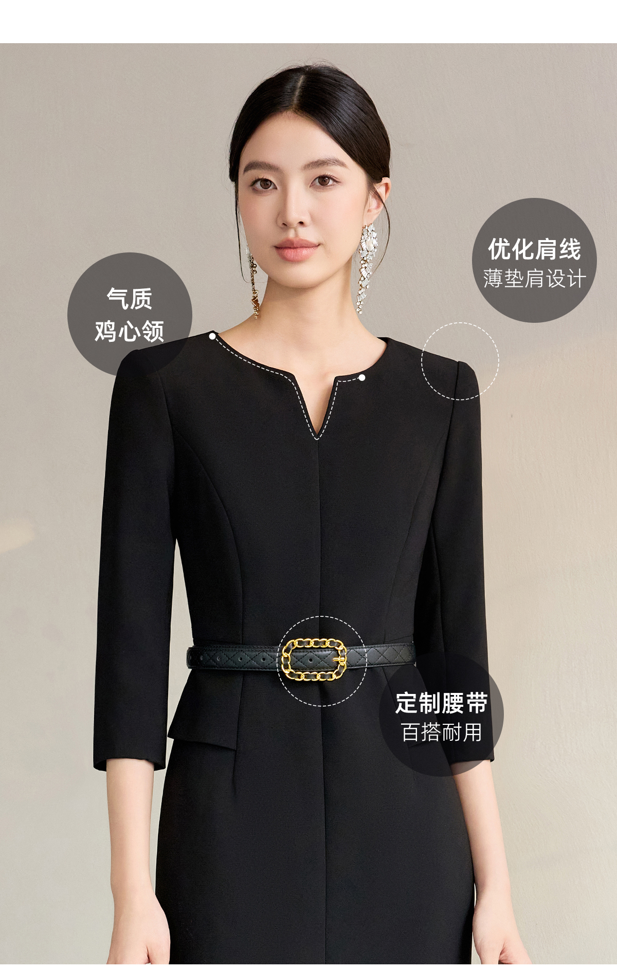 艾尚臣黑色职业连衣裙女高级感气质工装裙售楼部珠宝店工作服裙子