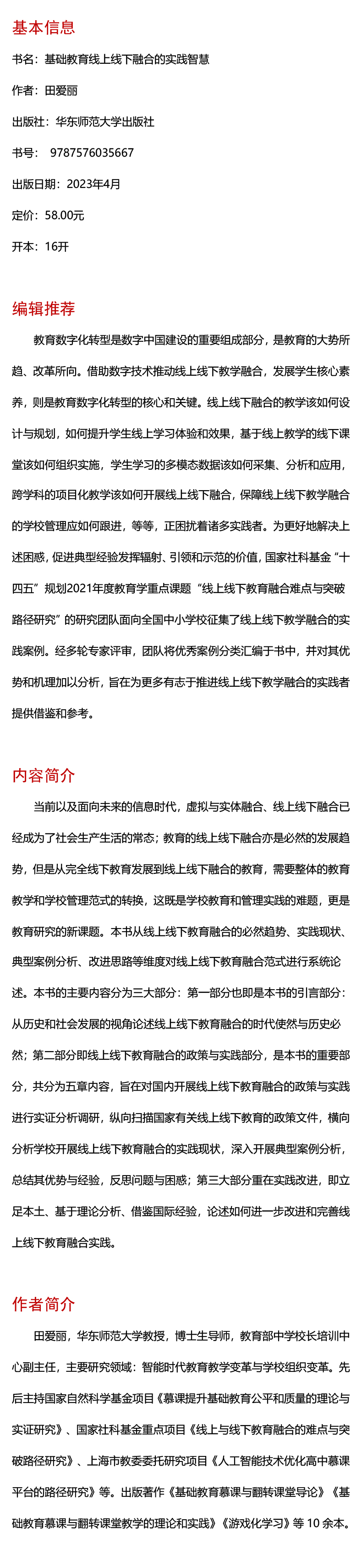 基础教育线上线下融合的实践智慧 教育数字化转型 田爱丽