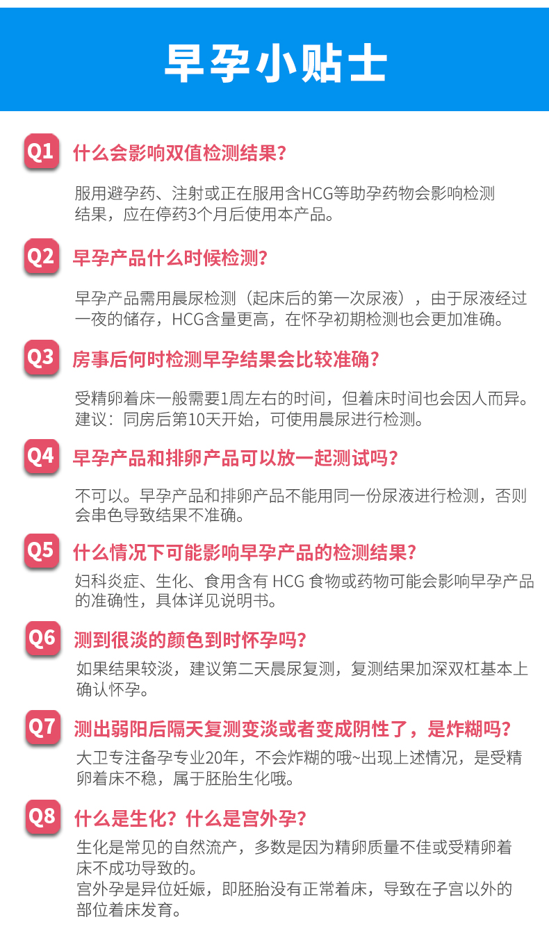 大卫双值验孕棒早早孕高精度宫外诊断验孕试纸女精准测怀孕