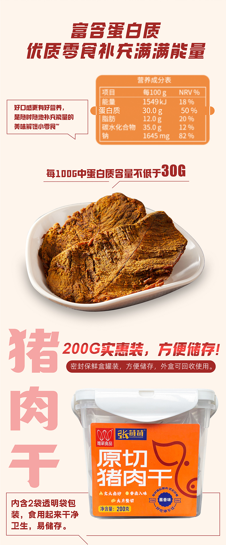 唯新张萌萌200g原切猪肉干酱香味罐装