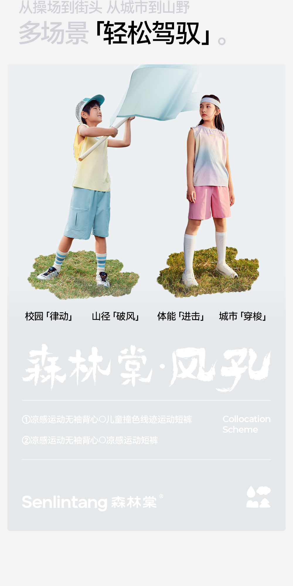 【凉感运动无袖背心】森林棠26夏款清凉透气舒适百搭儿童圆领无袖上衣40662025