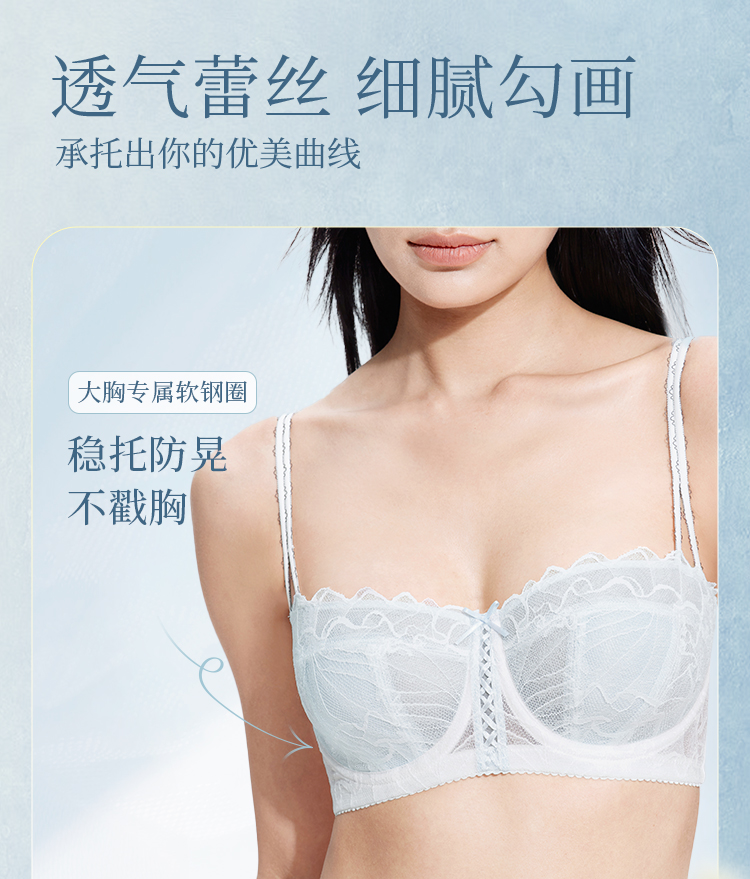 奶糖派缪斯超薄半杯文胸大胸显小蕾丝钢圈承托内衣女薄款胸罩