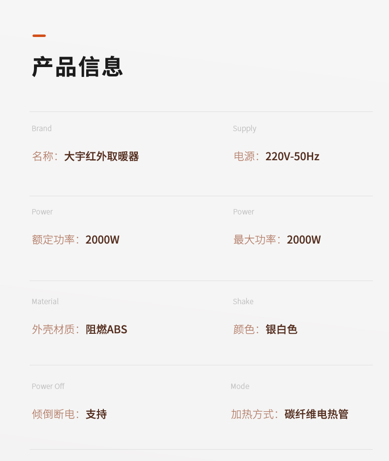 大宇 速热远红外取暖器K20