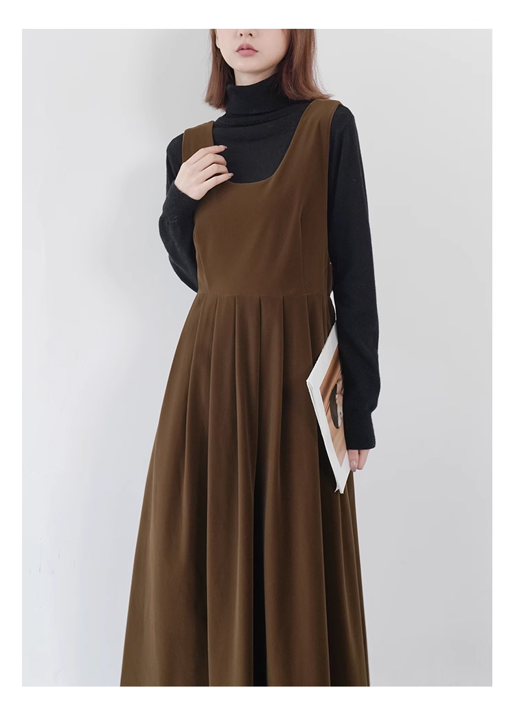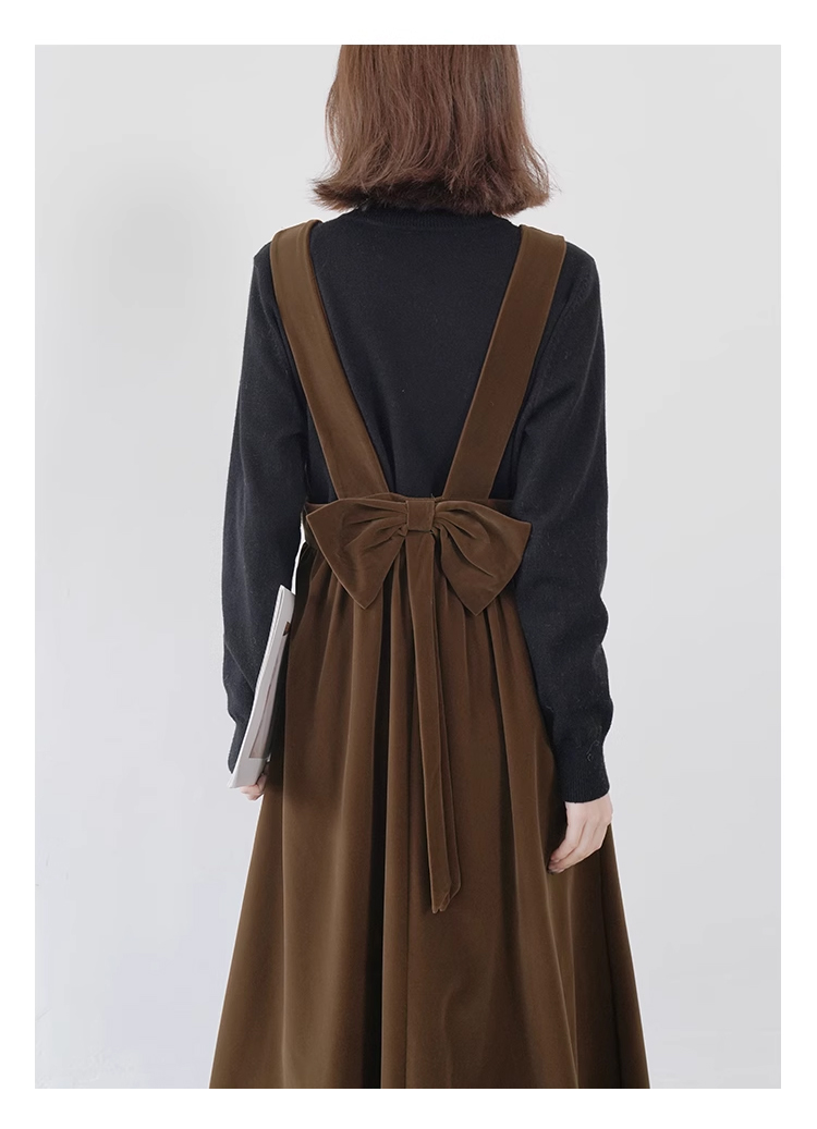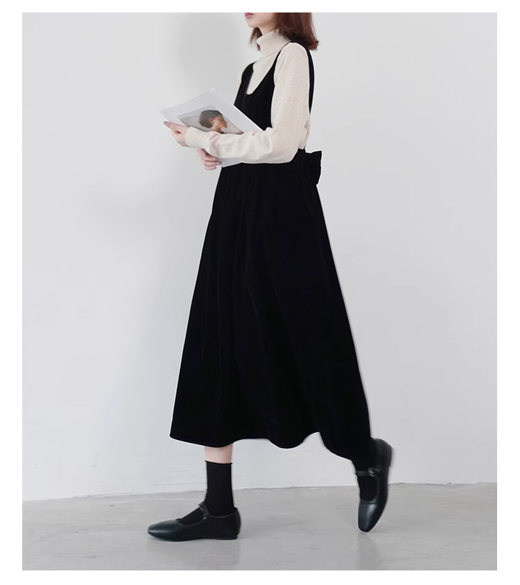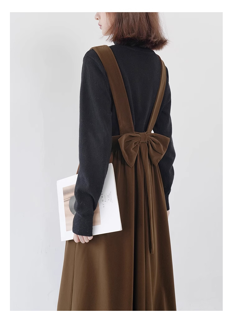 裁缝学苑AQ383法式丝绒百褶连衣裙纸样女装收腰复古蝴蝶结背带裙子样板
