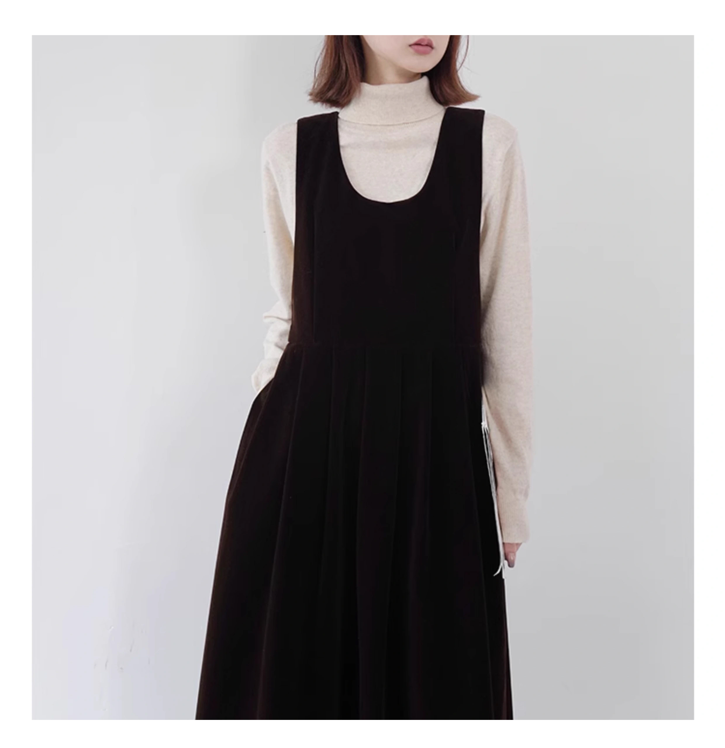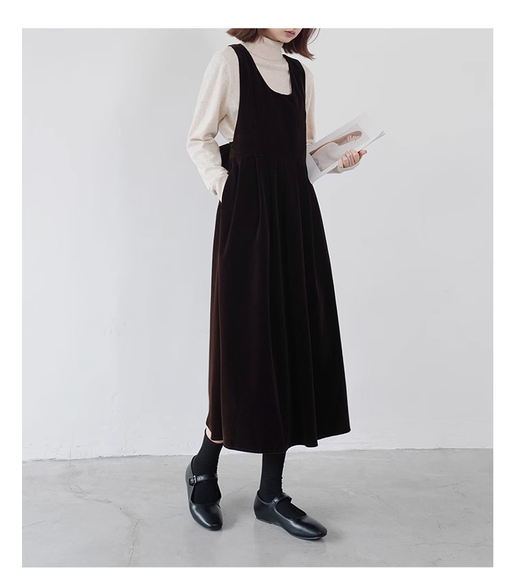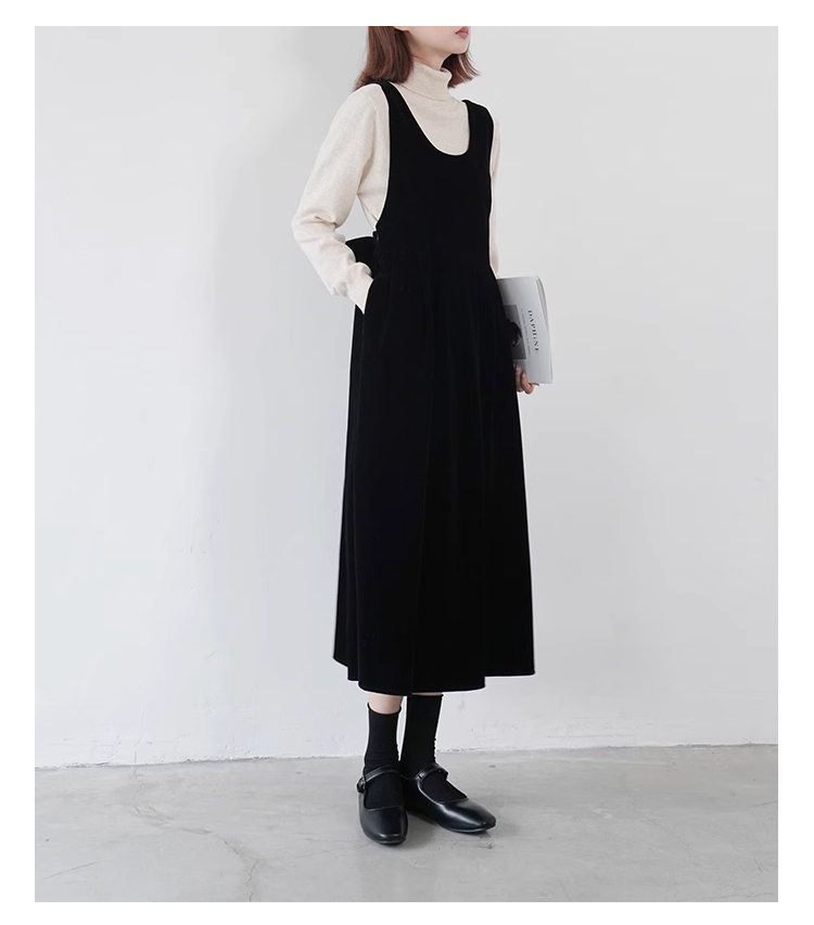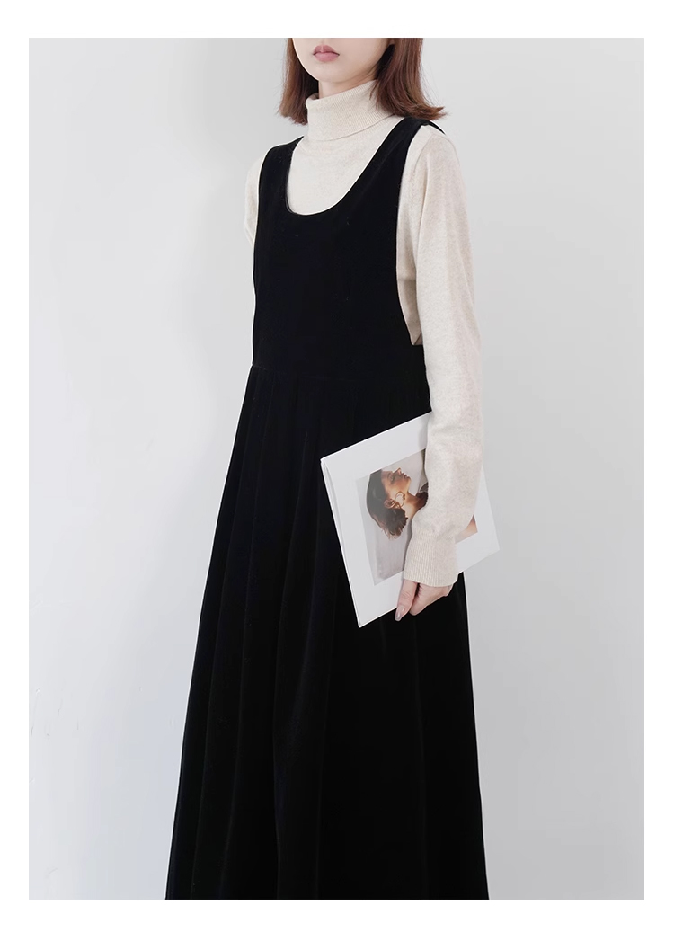 裁缝学苑AQ383法式丝绒百褶连衣裙纸样女装收腰复古蝴蝶结背带裙子样板