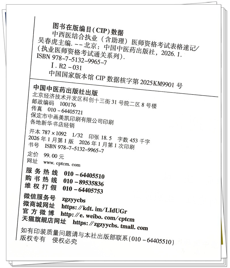书名:2026年中西医执业(含助理)表格速记