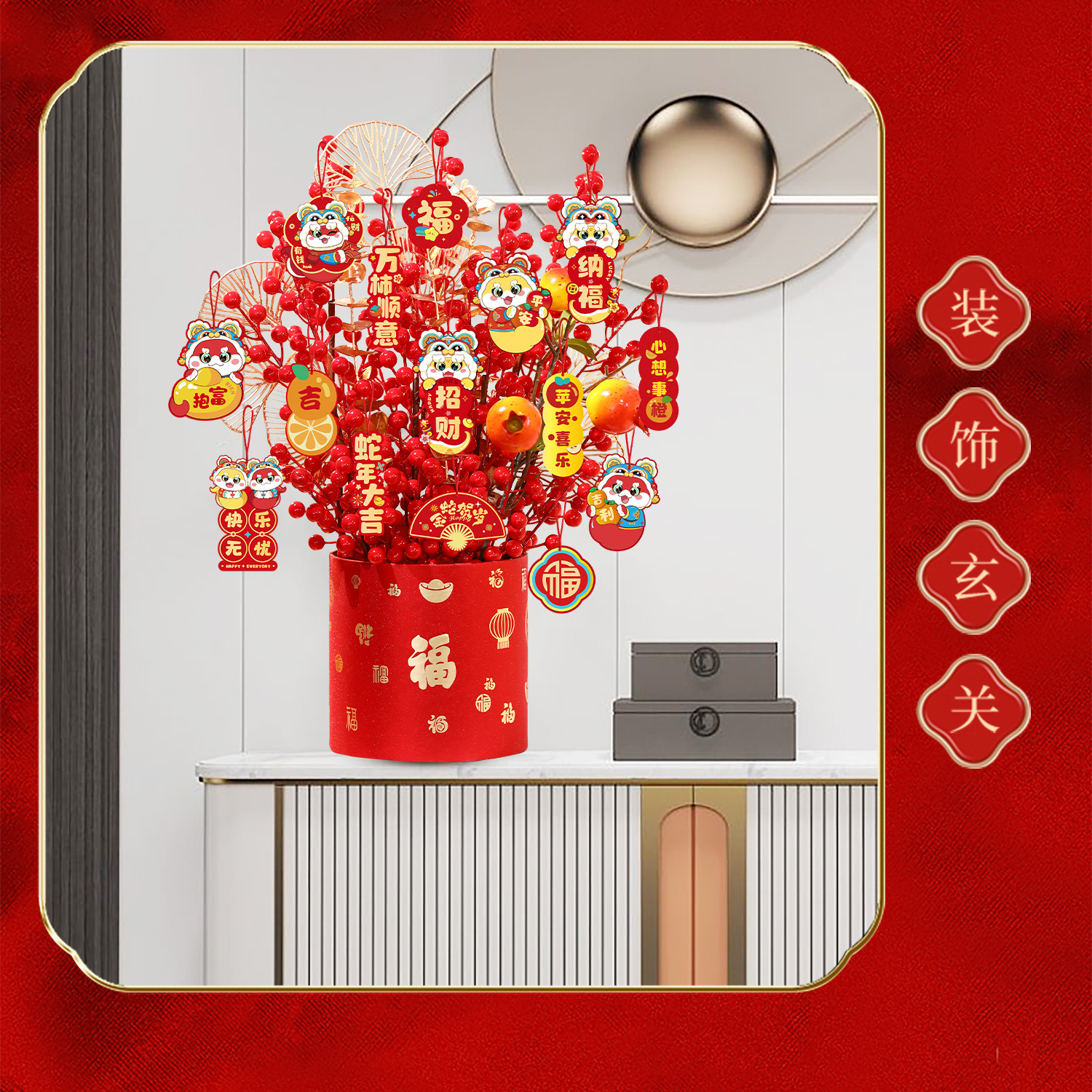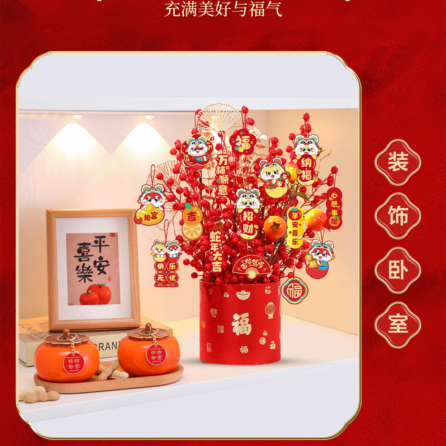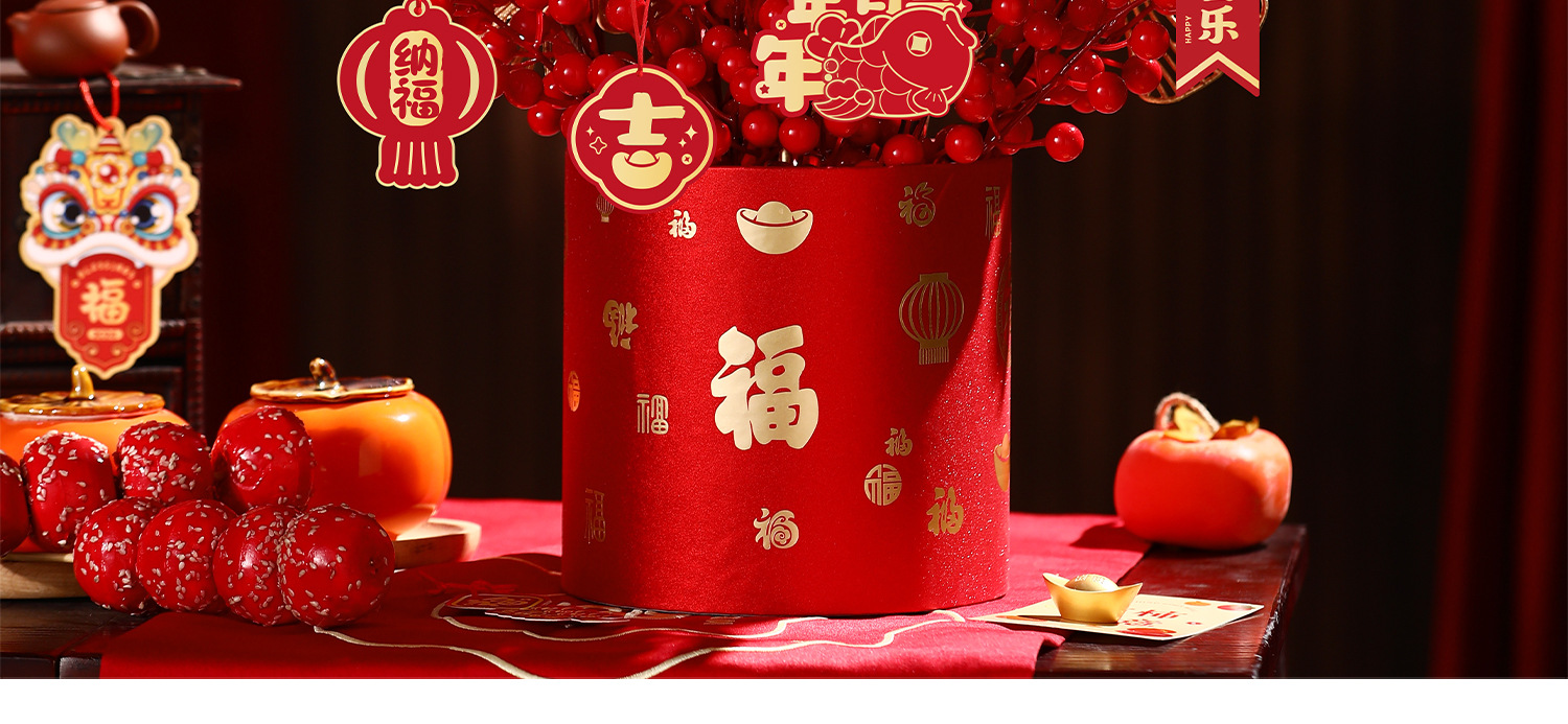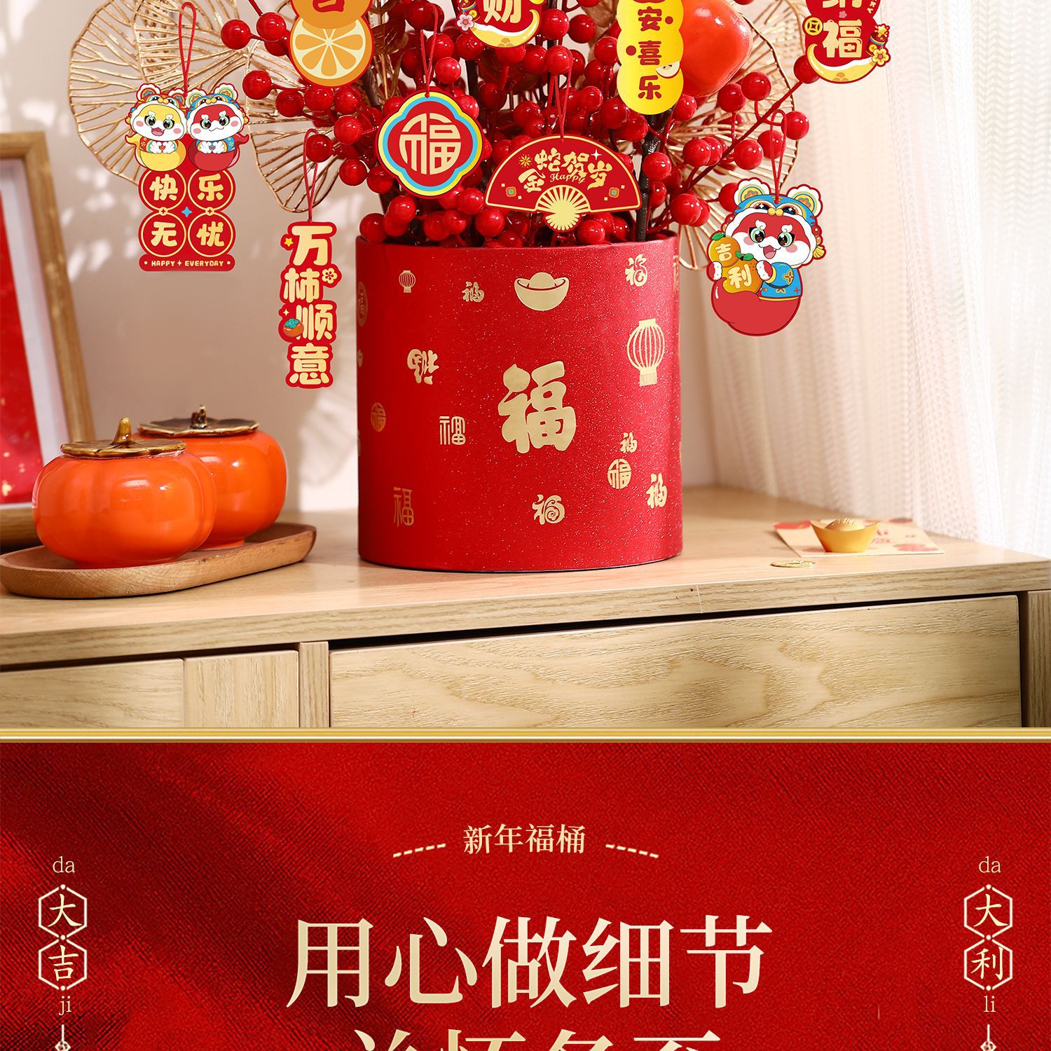 【红红火火!寓意美好】福桶摆件新年发财果过年客厅装饰品2025蛇年新春礼品春节布置用品。ry