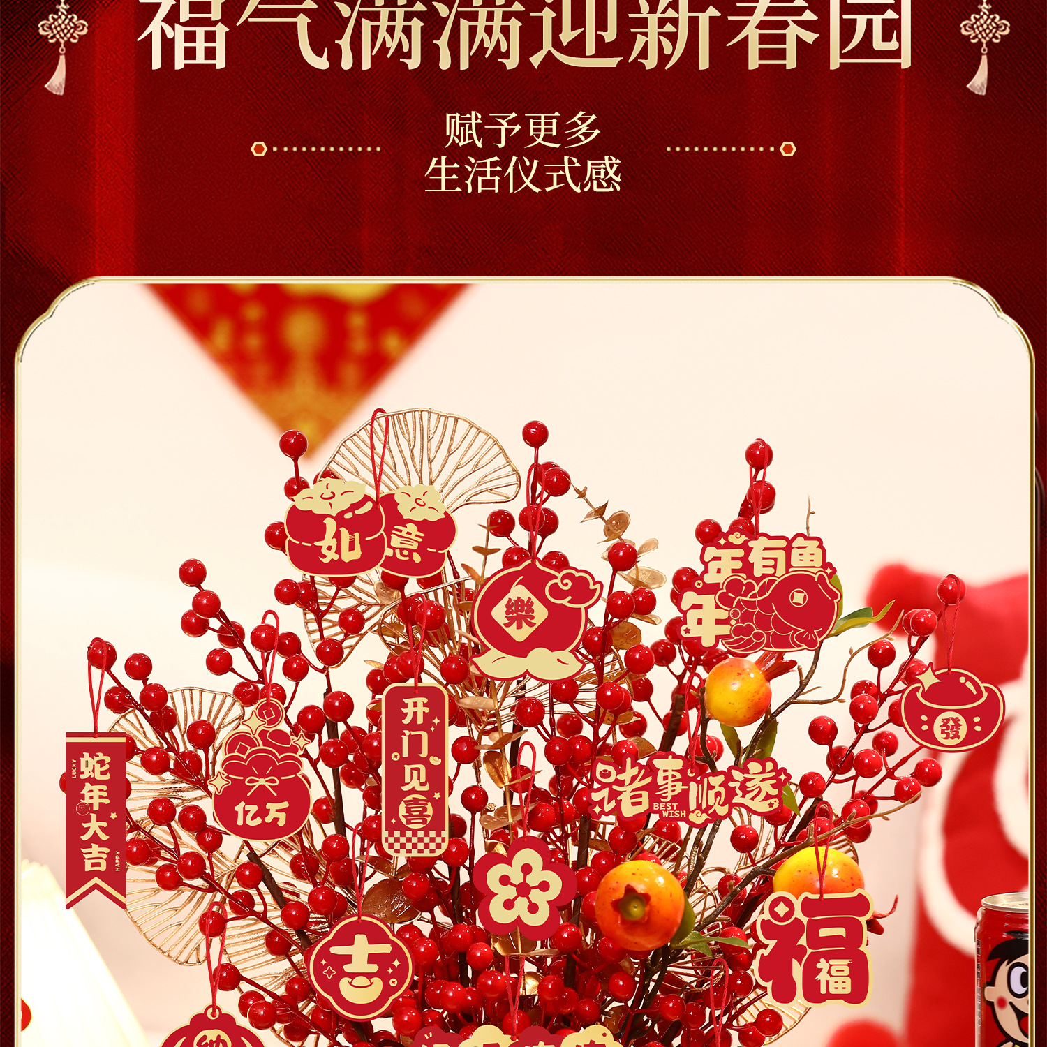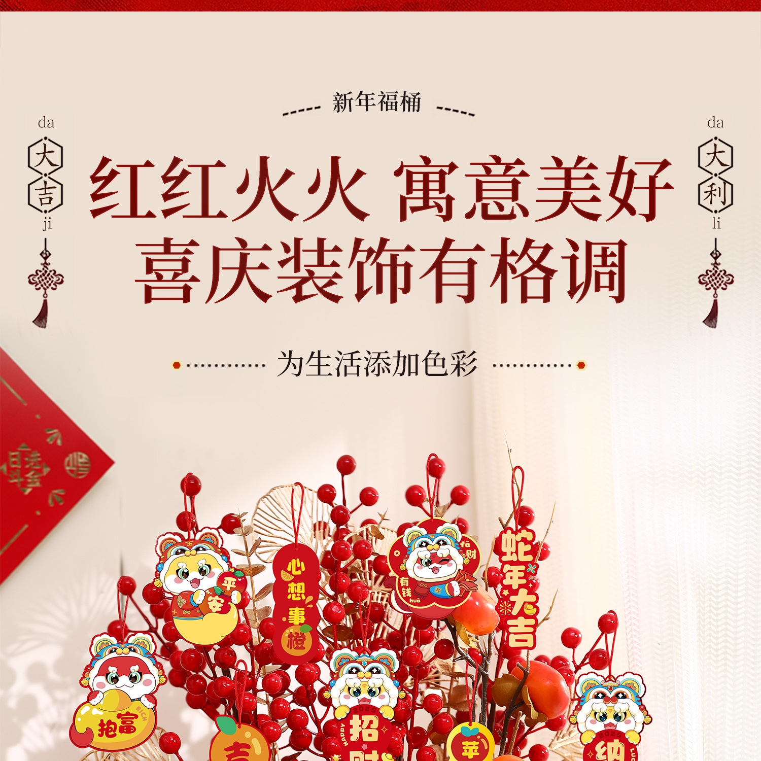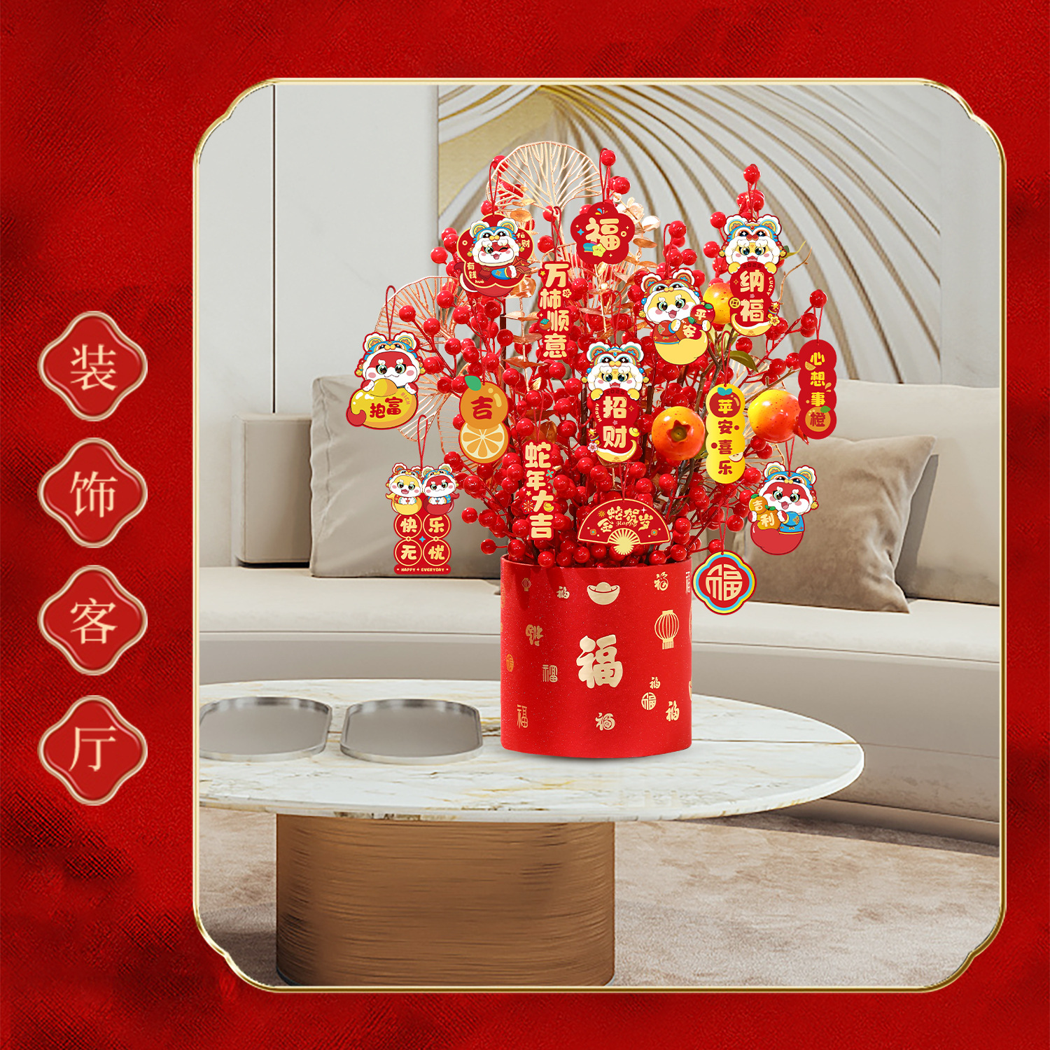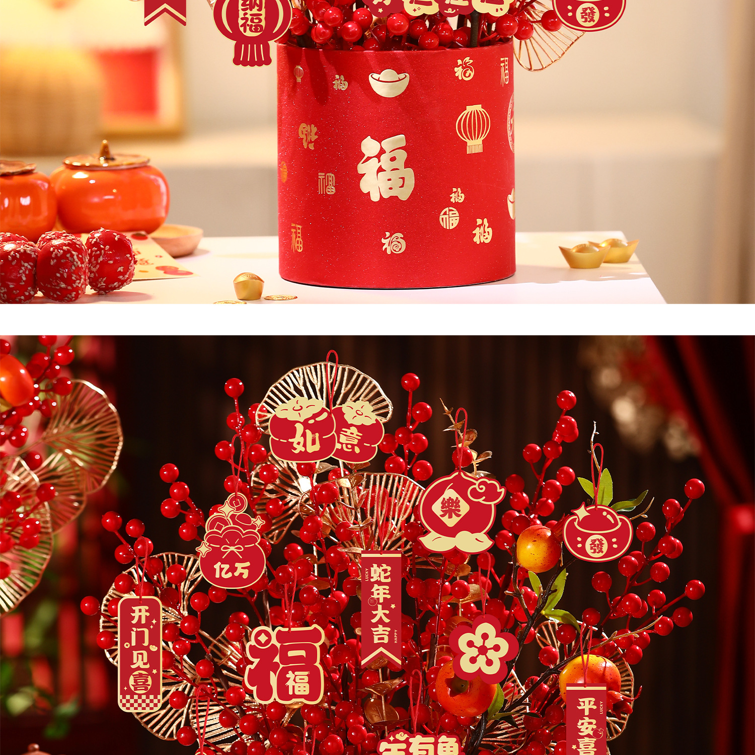 【红红火火!寓意美好】福桶摆件新年发财果过年客厅装饰品2025蛇年新春礼品春节布置用品。ry