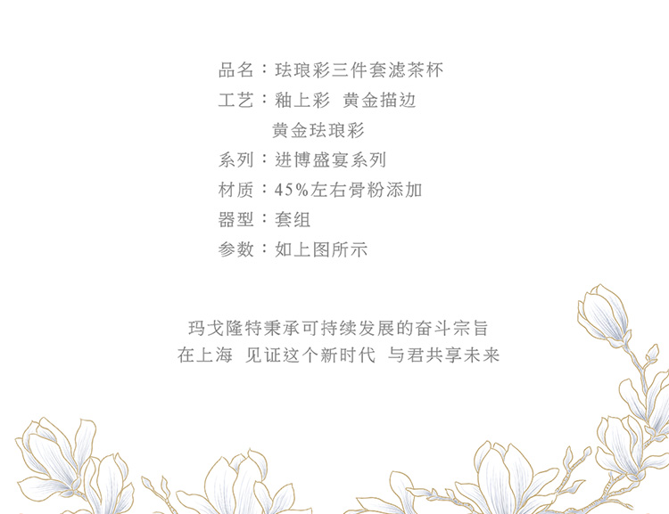 【春上新】10楼玛戈隆特进博盛宴珐琅彩三件套滤茶杯吊牌价768元活动价648元