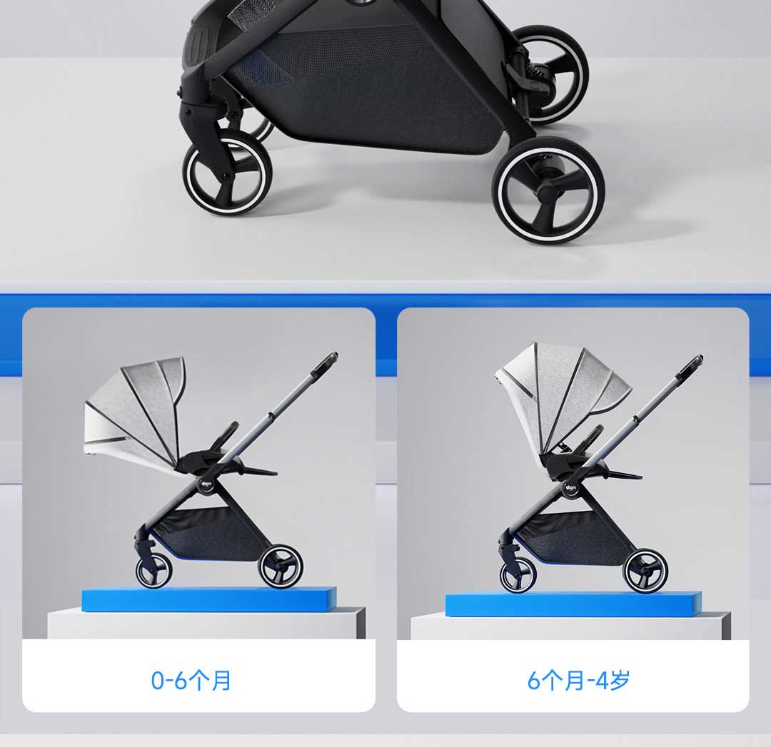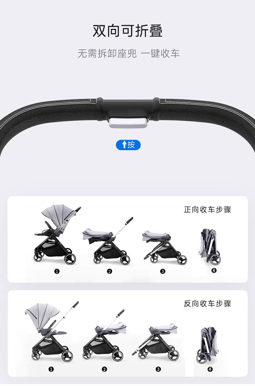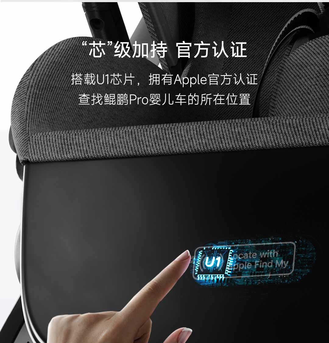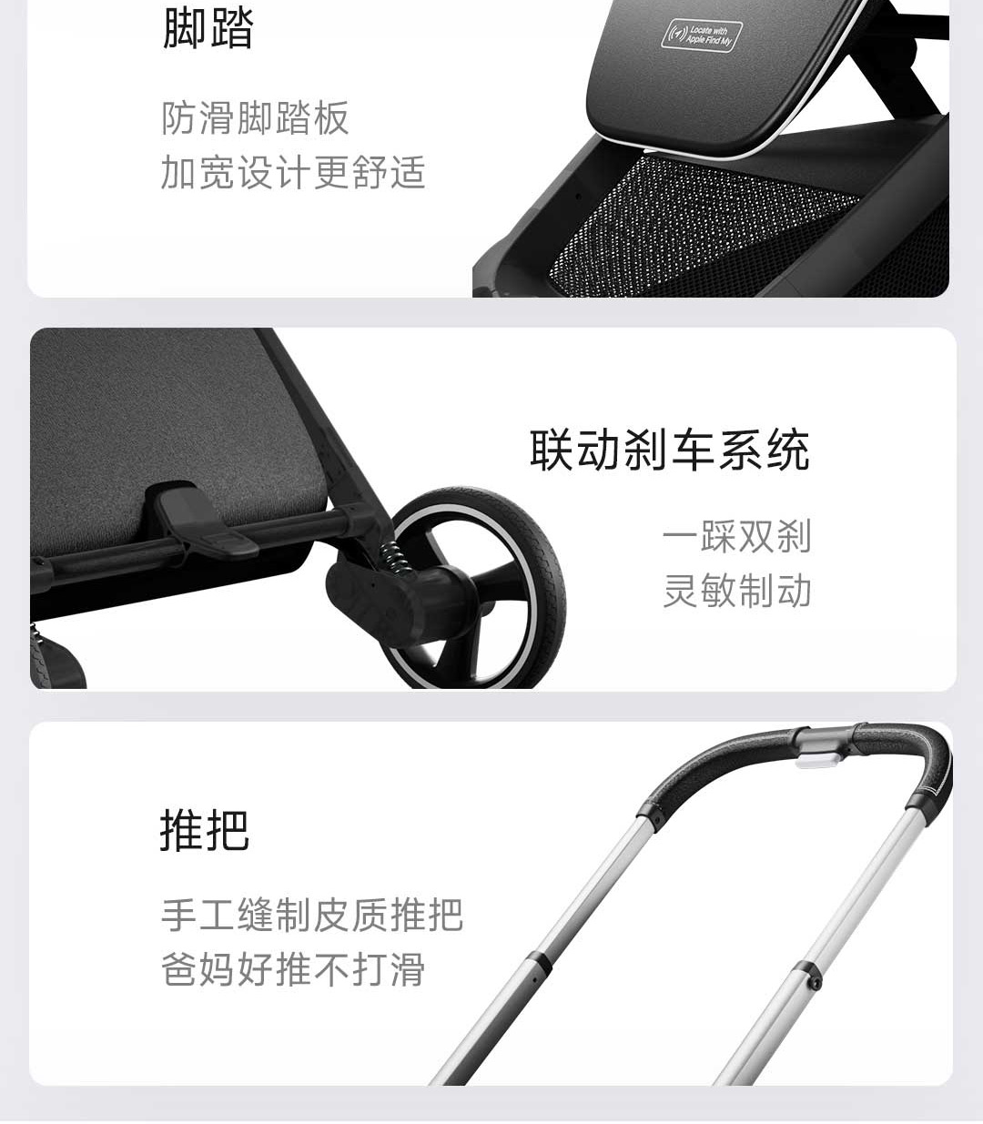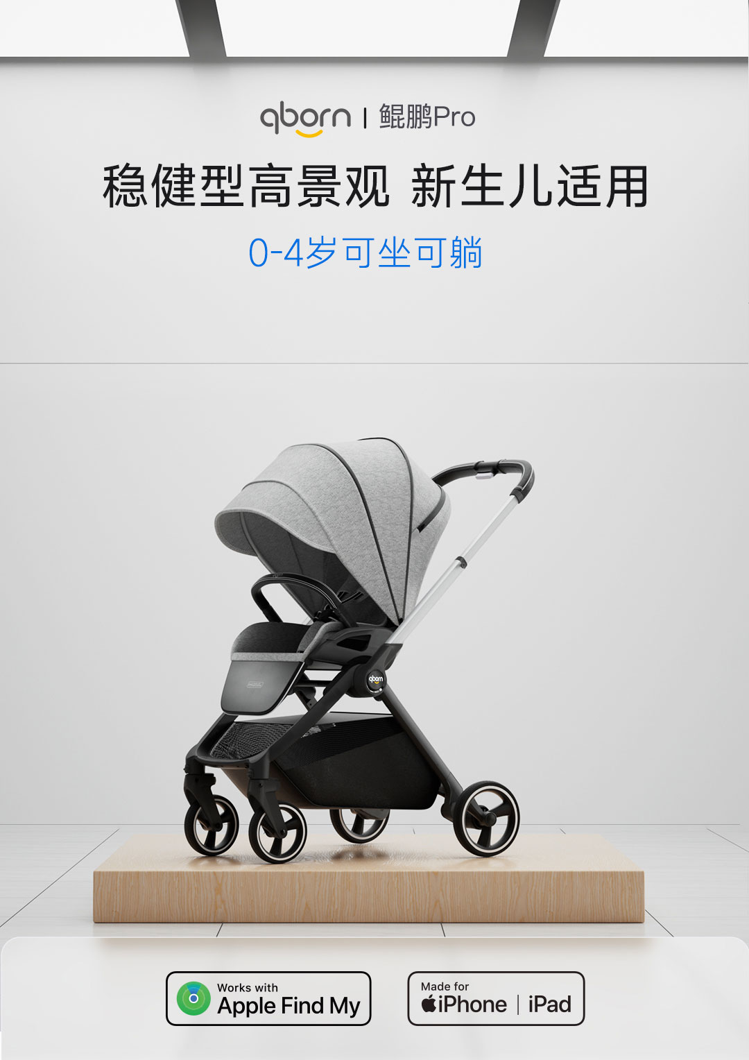 【包邮】qborn苹果findmy鲲鹏双向高景观婴儿推车 (科技灰)(0-4岁)【LY】