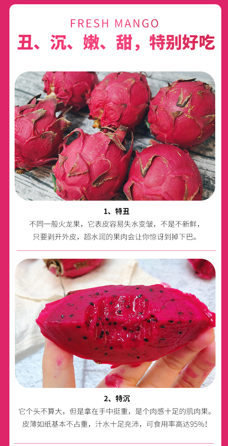 【红颜惹人爱】红心火龙果 娇艳欲滴 嫩滑多汁 淡淡香味 馋得口水直流