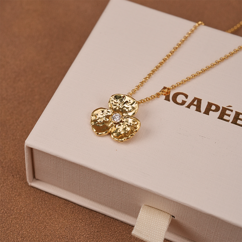 北京仓|Agapee-Narci-金色 水仙花 缎面 吊坠 项链[法国设计师]