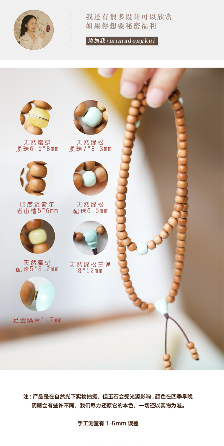 米马设计 印度迈索尔地区108颗老山檀颈链/念珠 存一颗敬畏慈悲心