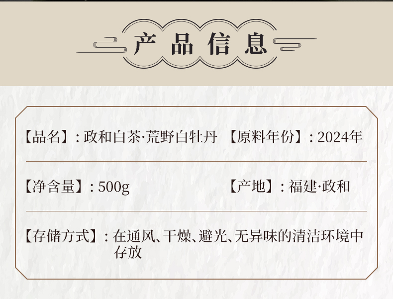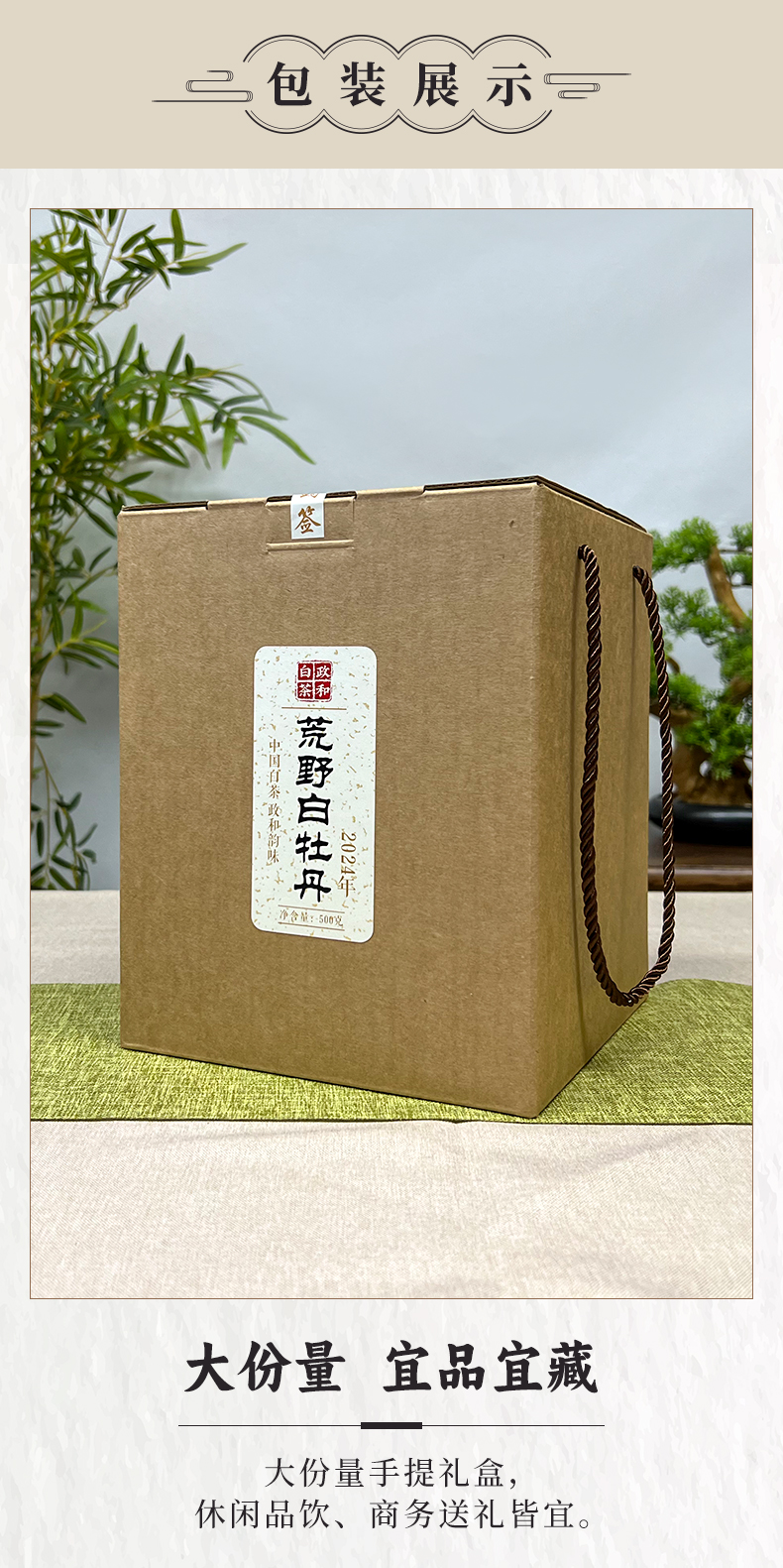添寿茶业丨荒野白牡丹 政和白茶 2024年 一级 500g 手提礼盒装(配2袋样泡)