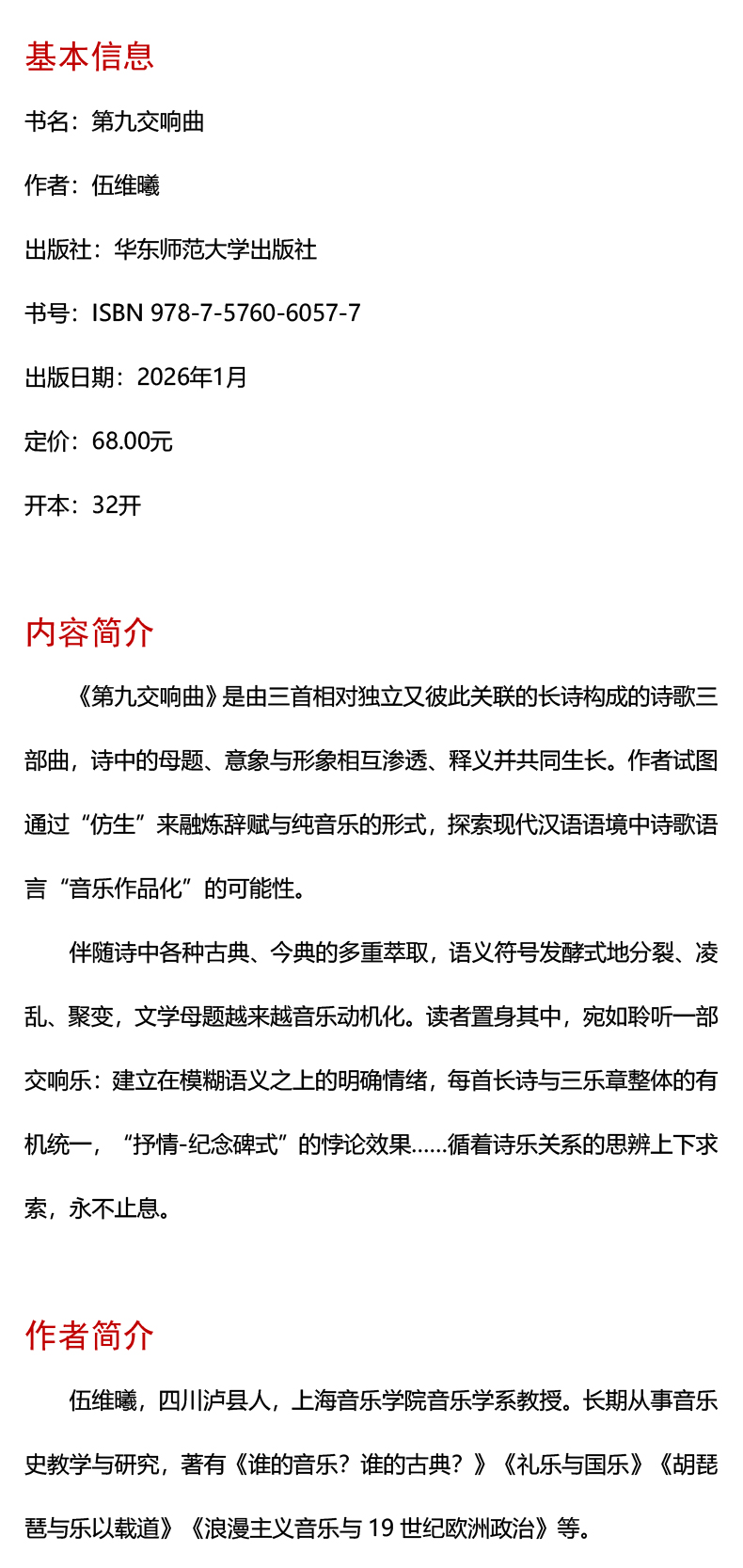 第九交响曲 伍维曦 诗歌集 六点图书
