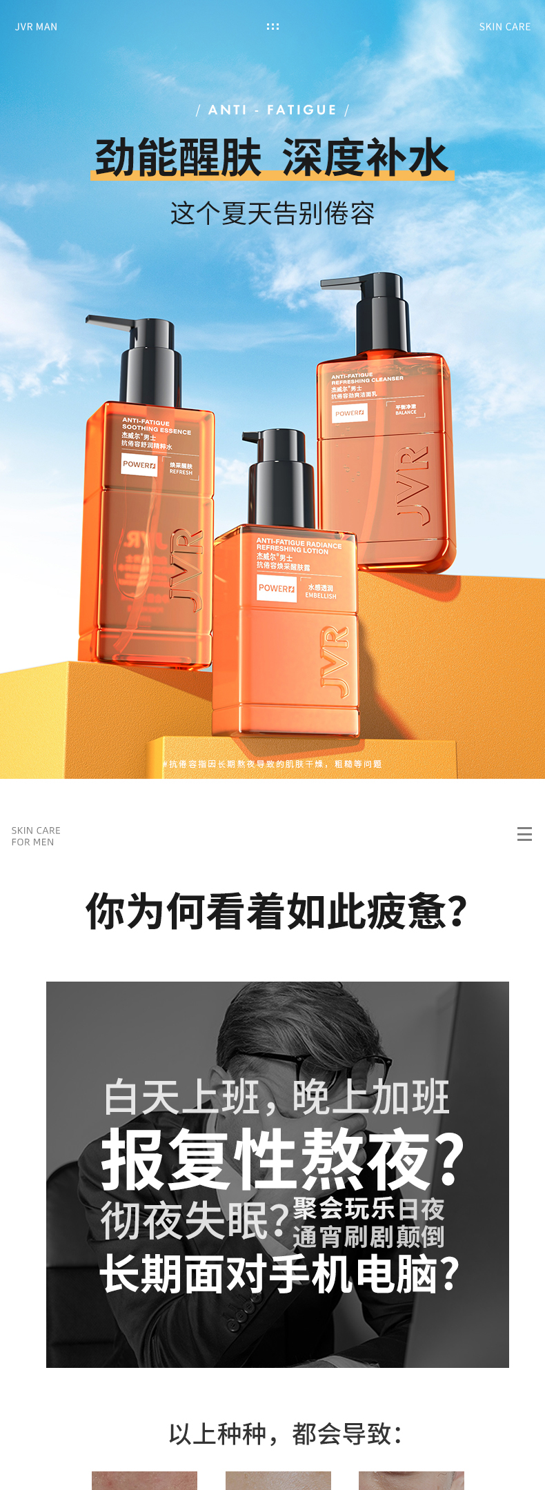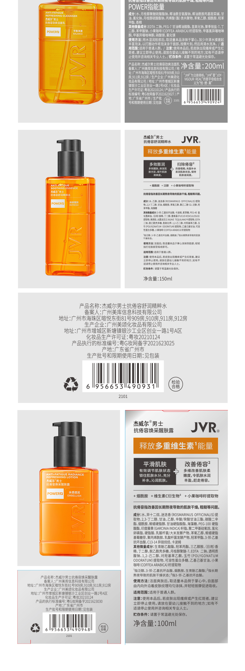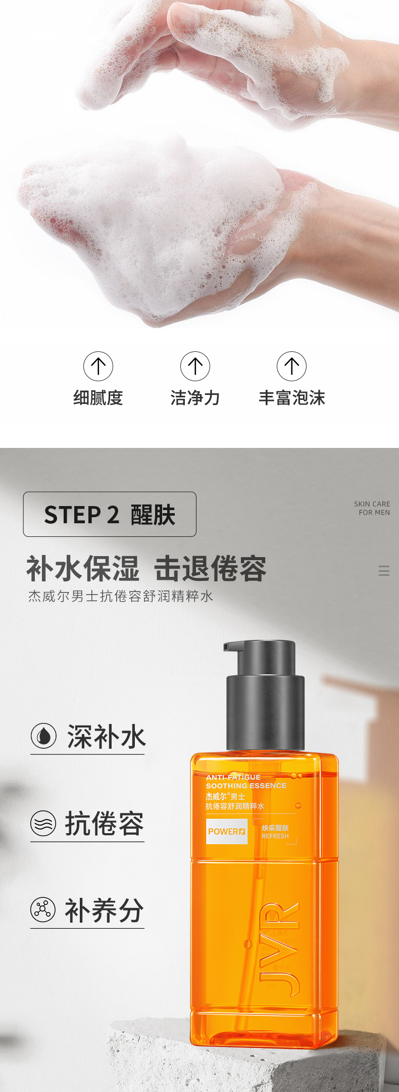 杰威尔男士醒肤抗倦容护肤品三件套装爽肤水乳霜洗面奶洁面膏保湿补水控油清洁正品
