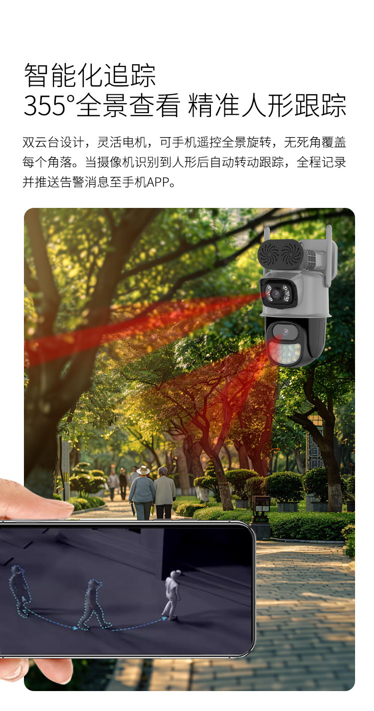 蜂眼20号双镜头双画面免充值流量人形侦测报警355度旋转