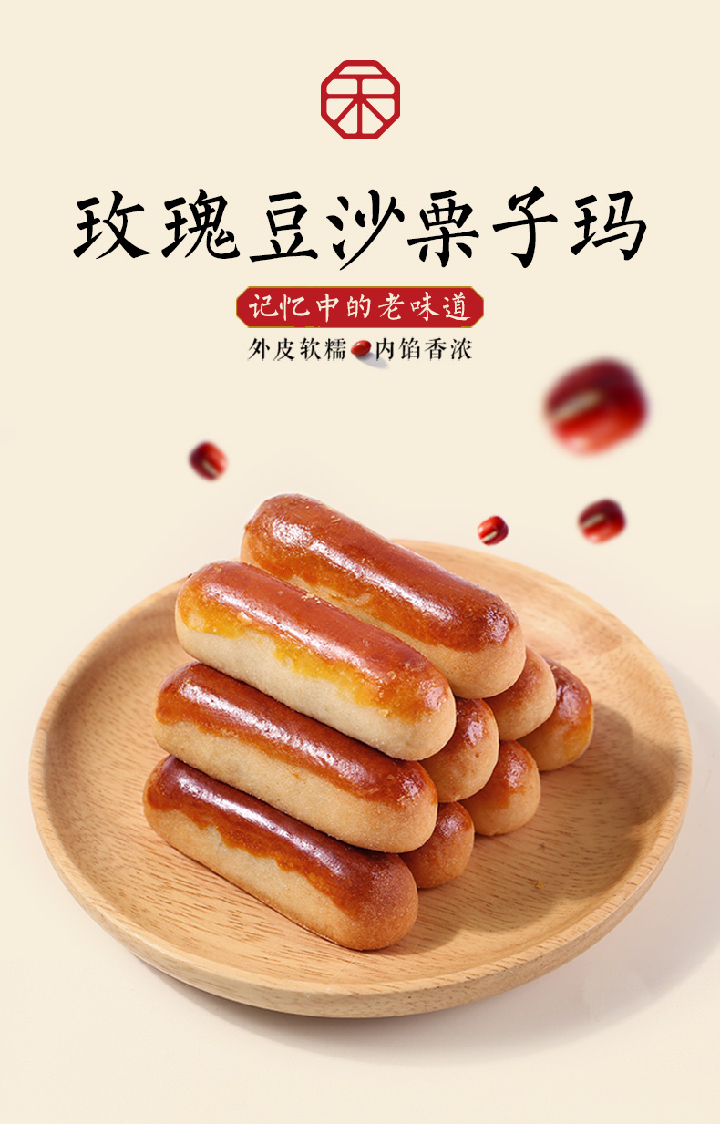 祥禾饽饽铺红豆沙栗子玛传统手工黄油松软糕点心天津特产休闲零食