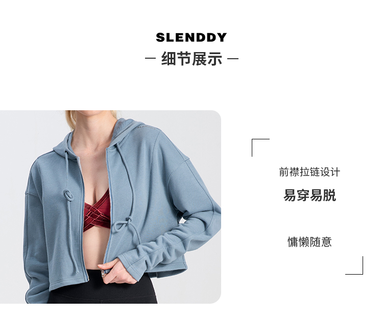 slenddy Comet卫衣连帽短款拉链式长袖瑜伽运动外套S4003