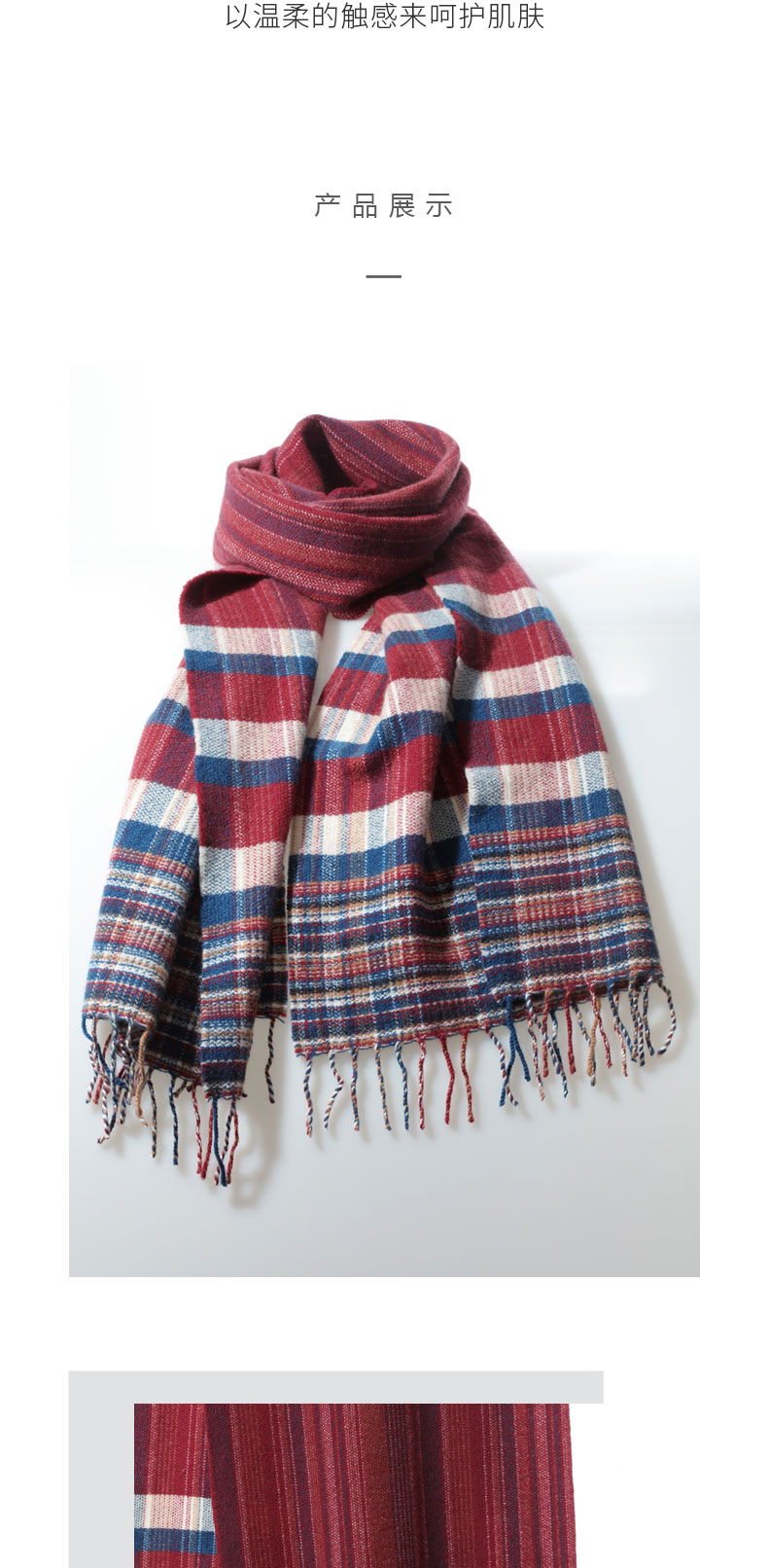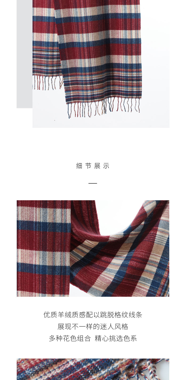 青海羊绒格纹流苏围巾SJF96P720N