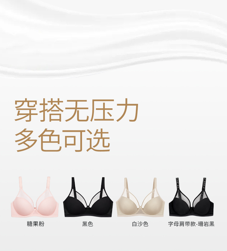 【积分兑换】奶糖派【0感杯】大杯大胸显小显瘦透气光面文胸内衣