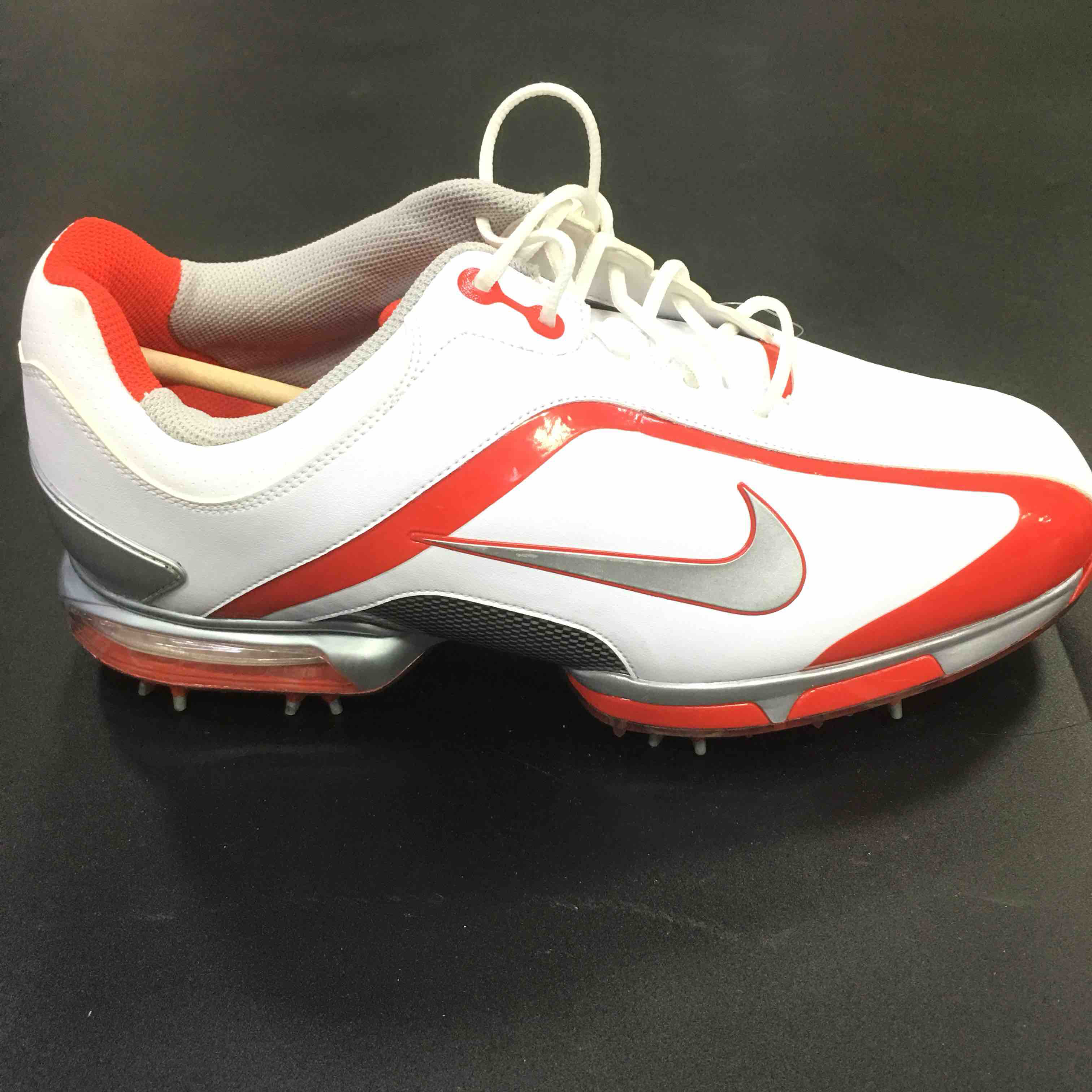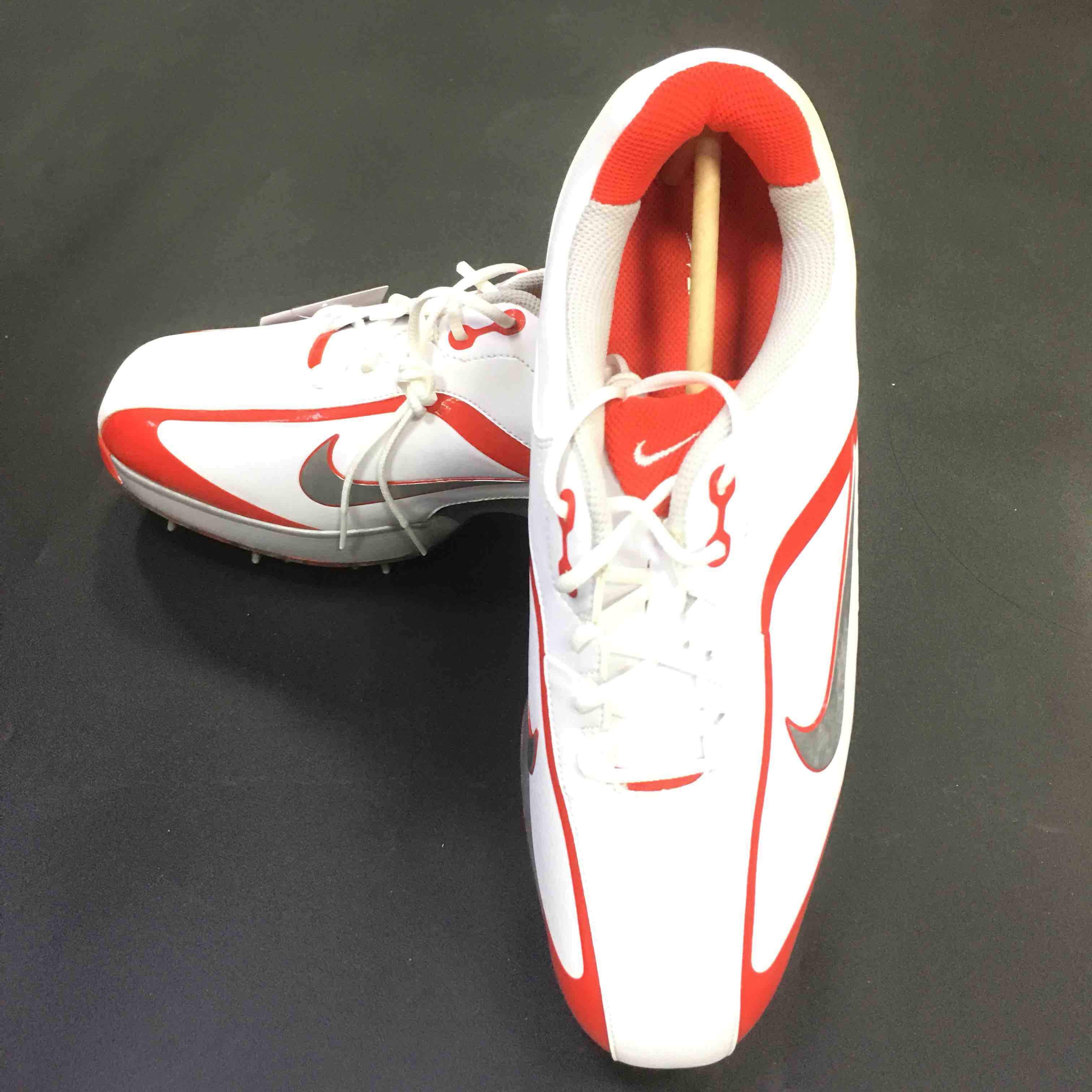 Nike 男士高尔夫球钉鞋 此款是Nike老款里的经典款 红白相间 显得非常大气 皮革表面 可以防雨渗入