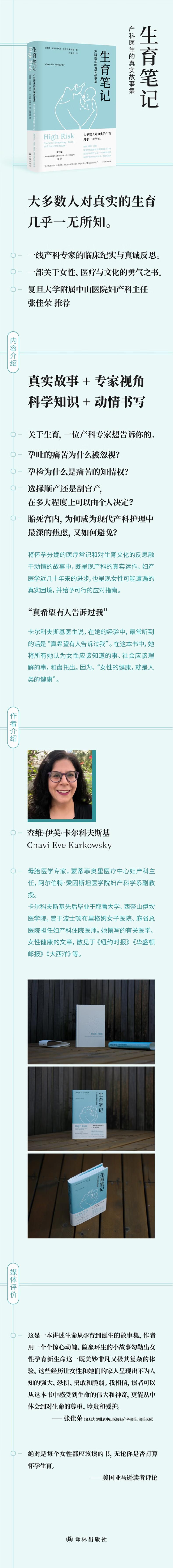 查维·伊芙·卡尔科夫斯基(Chavi Eve Karkowsky),母胎医学专家,蒙蒂菲奥里医疗中心妇产科主任,阿尔伯特·爱因斯坦医学院妇产科学系副教授。卡尔科夫斯基出生于马里兰州,先后毕业于耶鲁大学、西奈山伊坎医学院,曾于波士顿布里格姆女子医院、麻省总医院担任妇产科住院医师。她撰写的有关医学、女性健康和生育政策的文章,散见于《纽约时报》《华盛顿邮报》《大西洋》等。