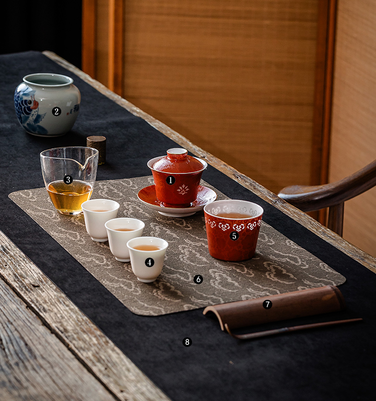 茶香记唐草玲珑盖碗宫红120ml景德镇陶瓷扒花三才泡茶碗功夫茶具