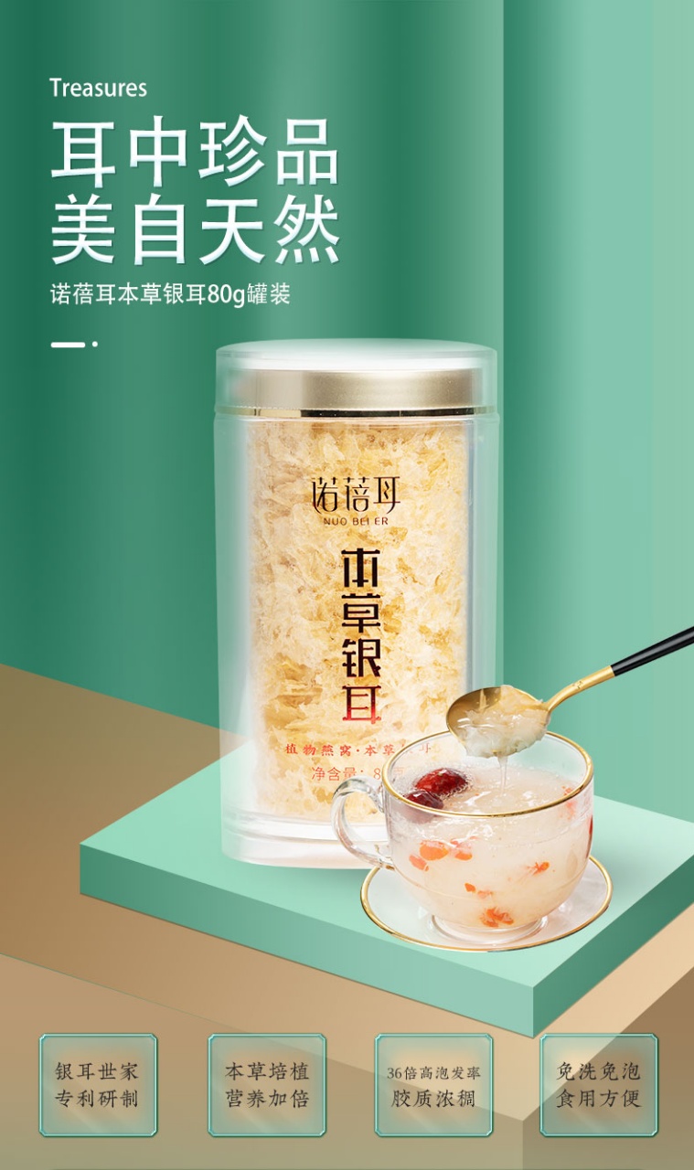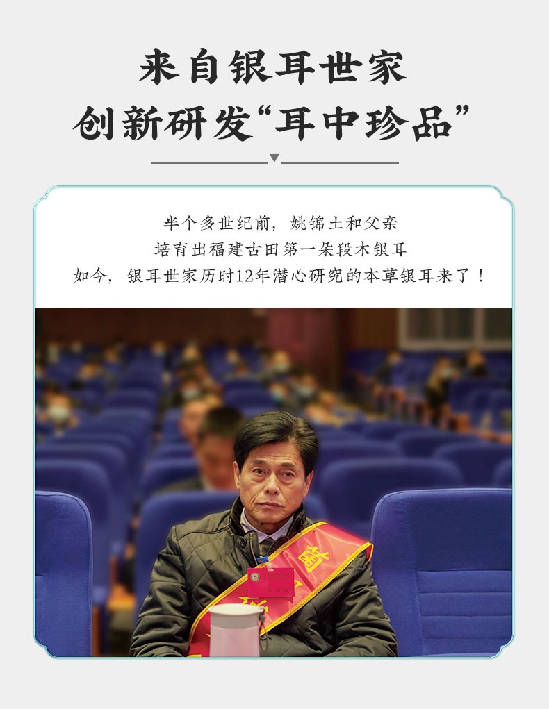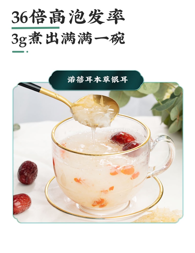 每一罐本草银耳都是由36朵新鲜的本草银耳加工而成 每朵只萃取营养集中的顶端部分。