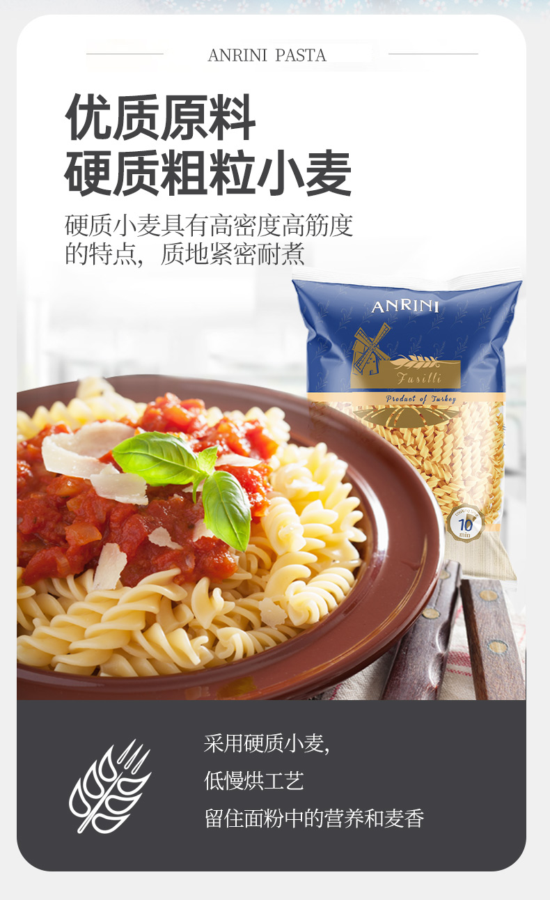 莫利 意大利进口 340#两头尖形意大利面 500g/包