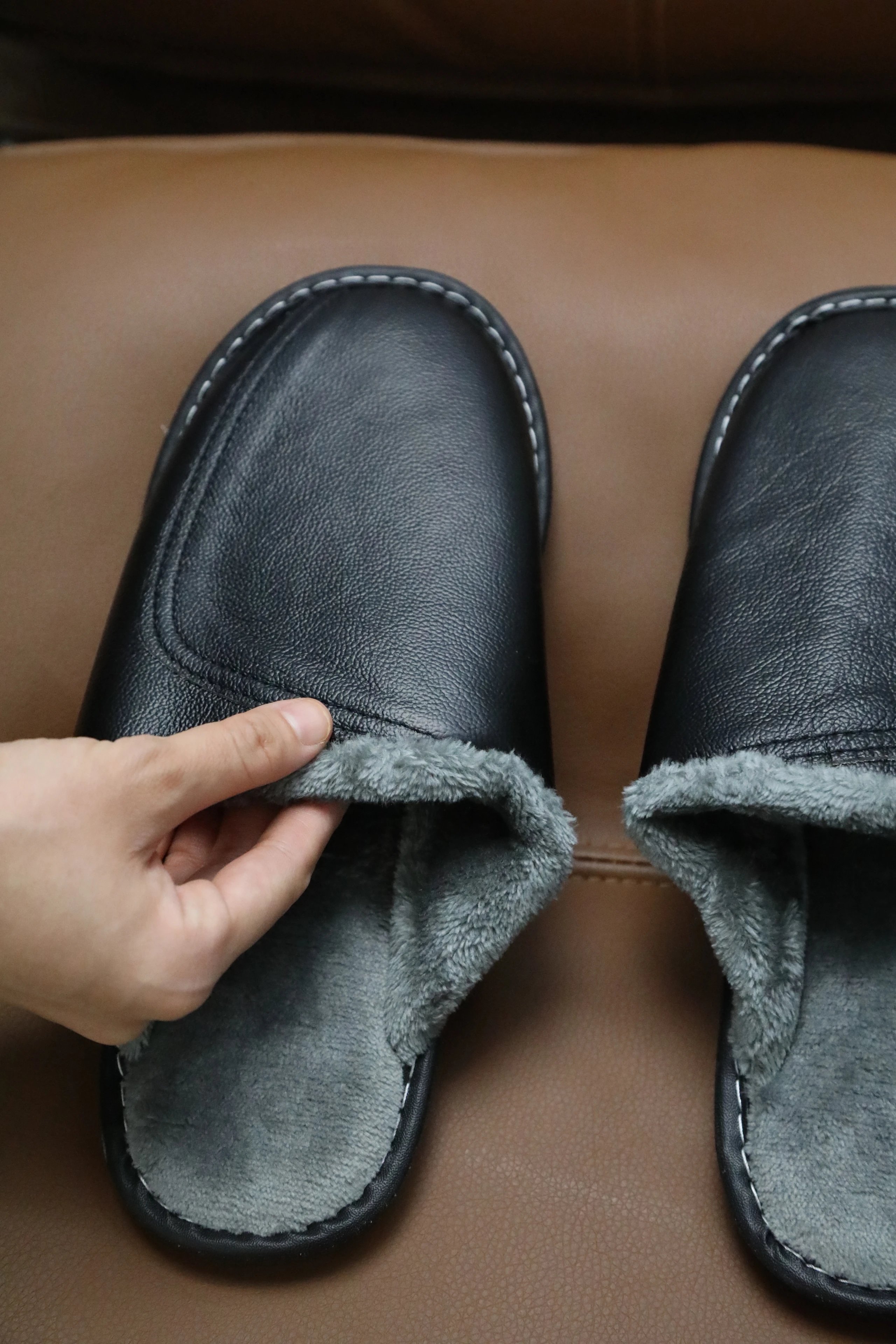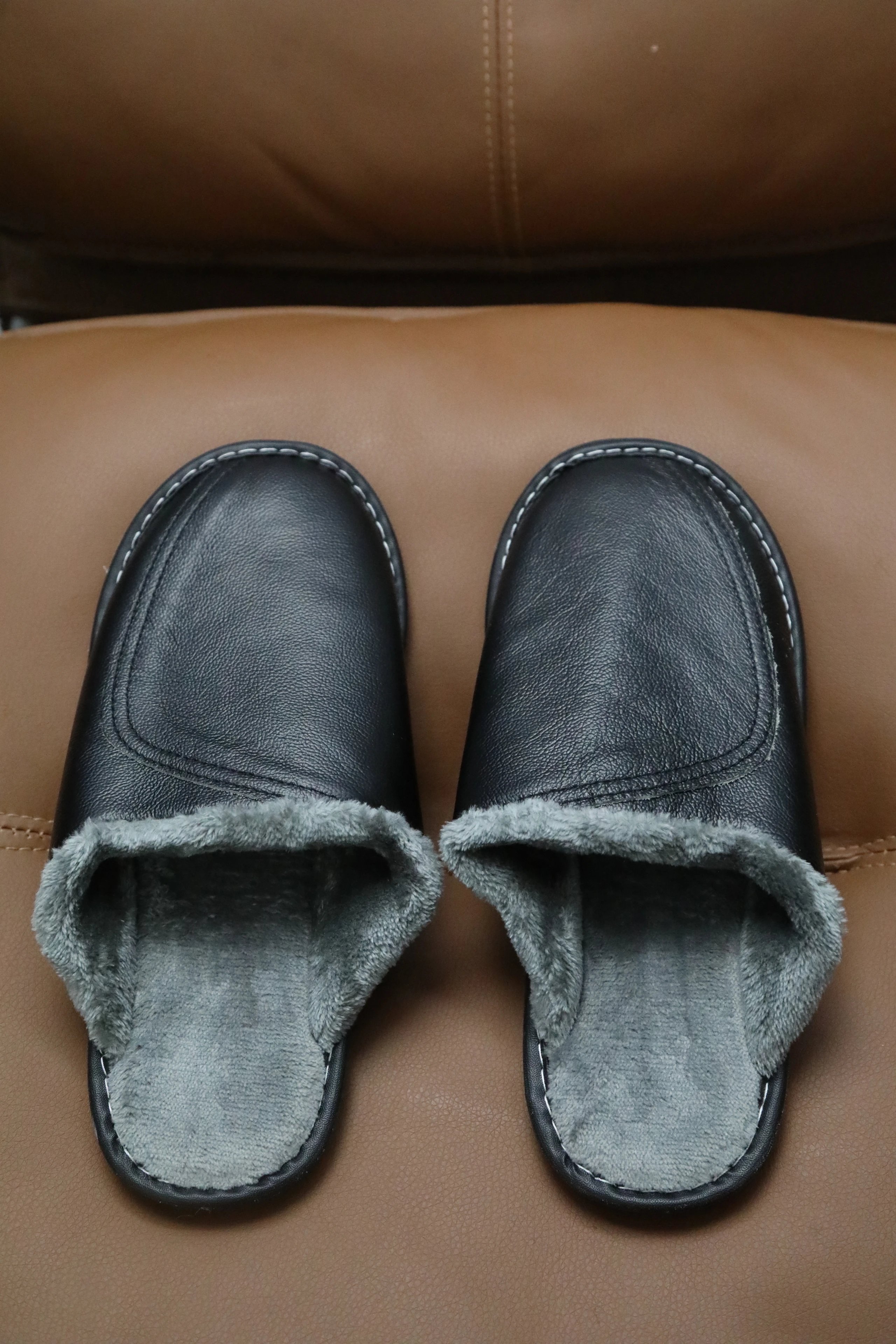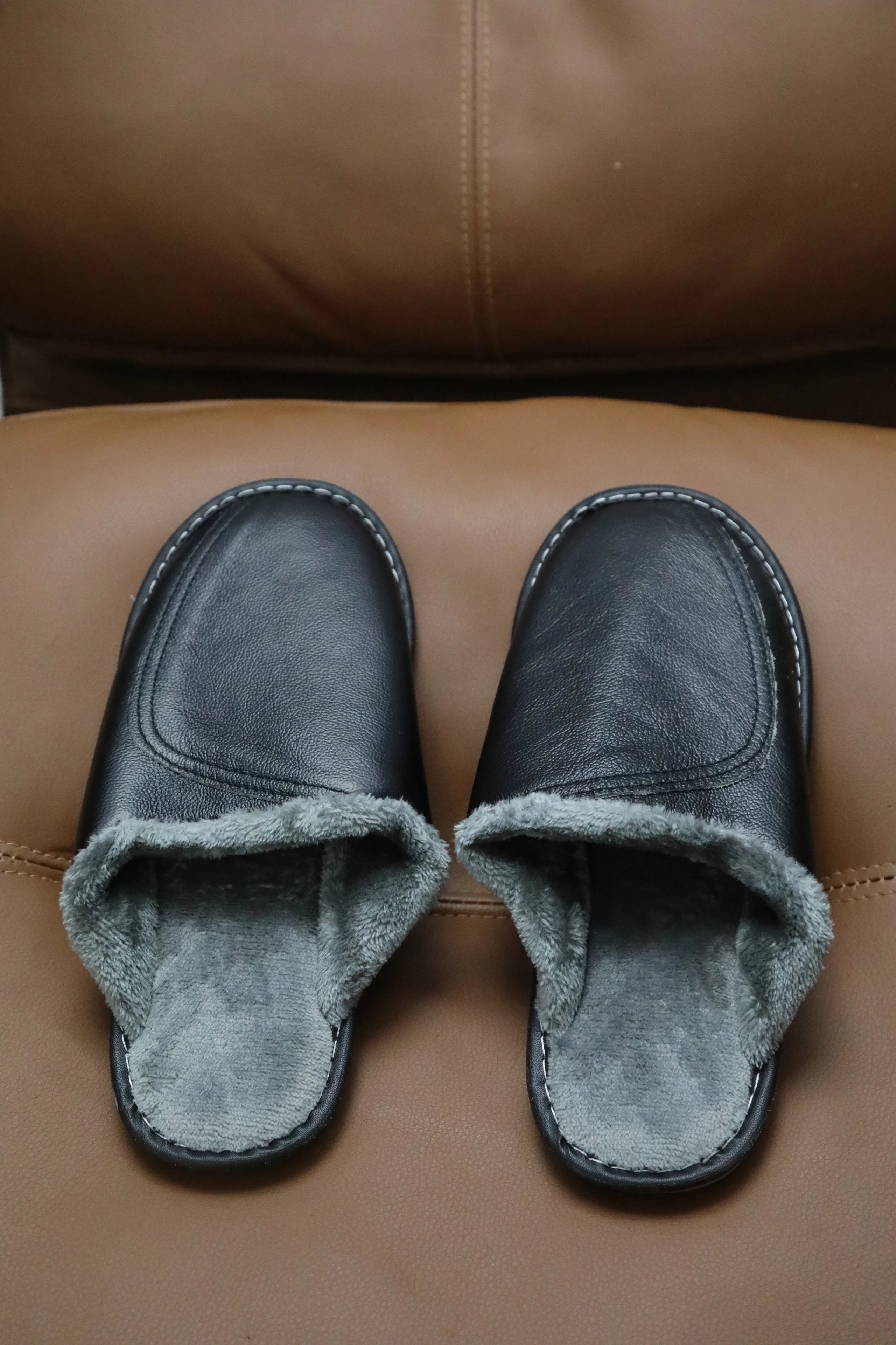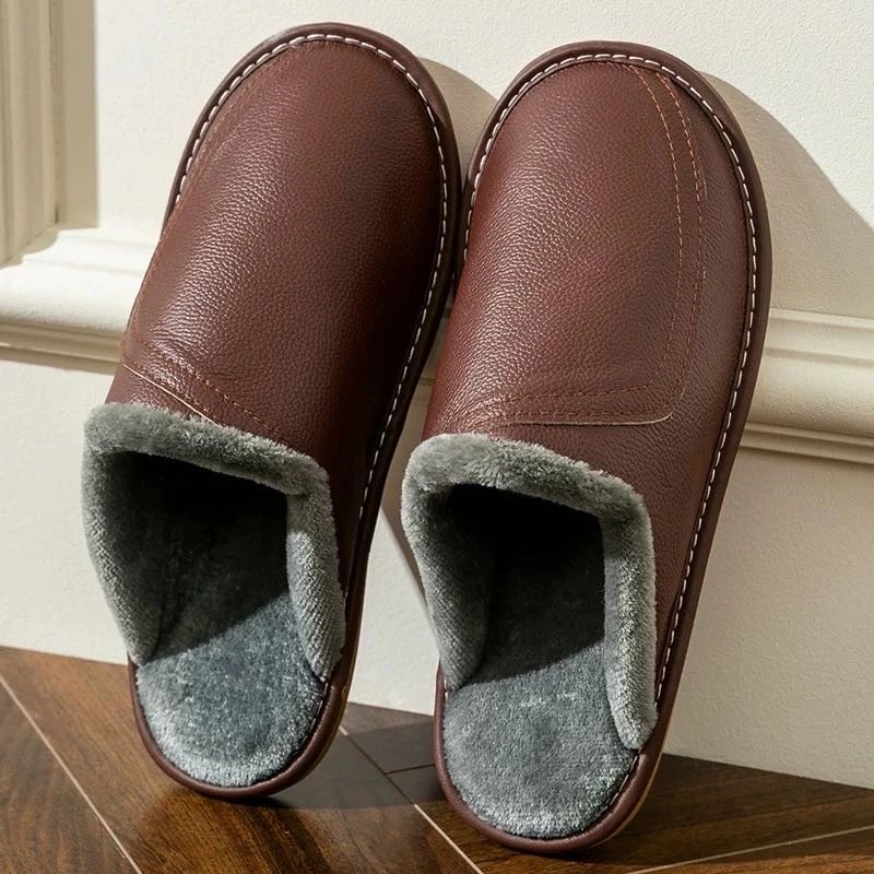 【商品品名】男款冬季头层牛皮拖鞋