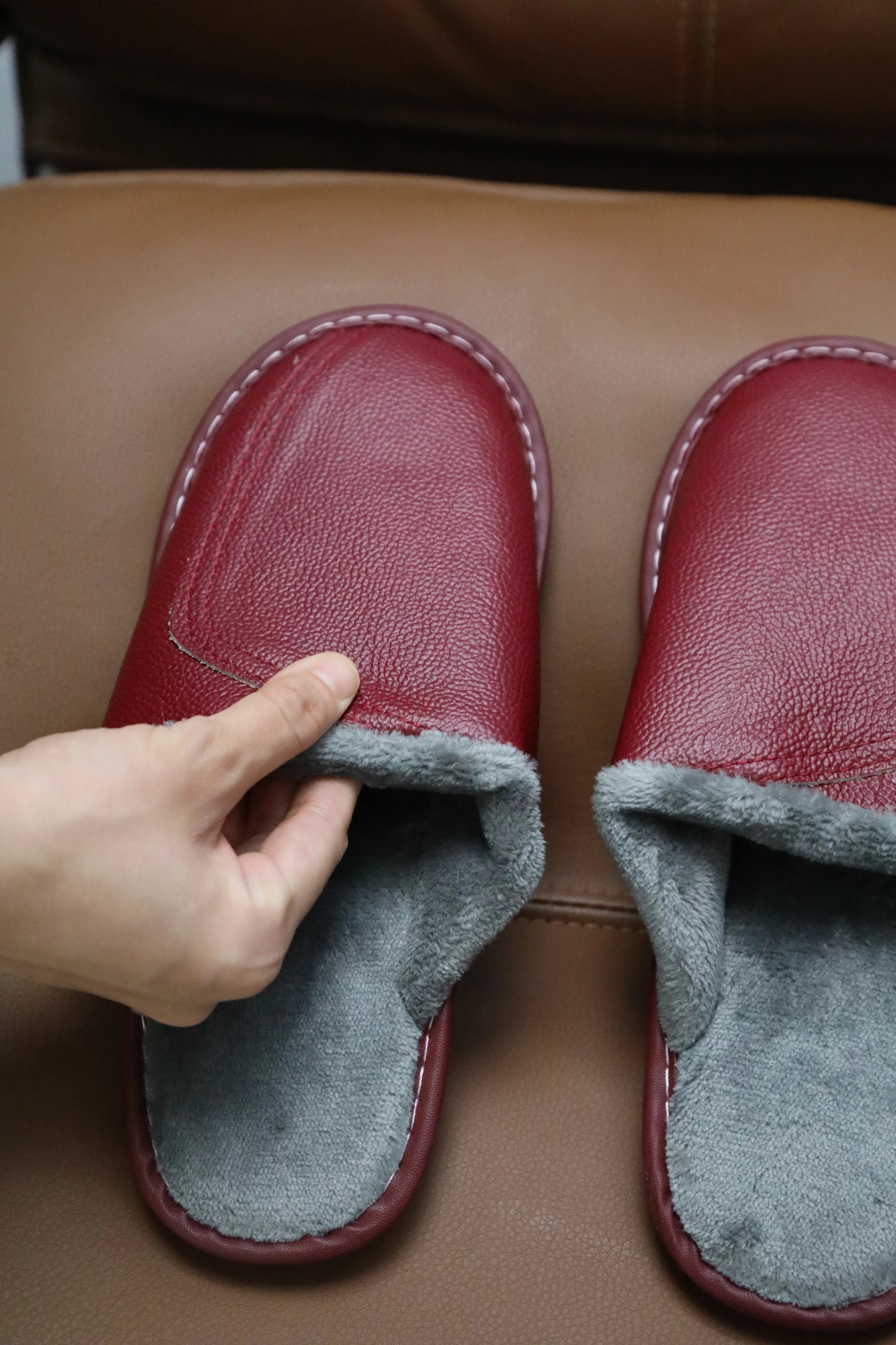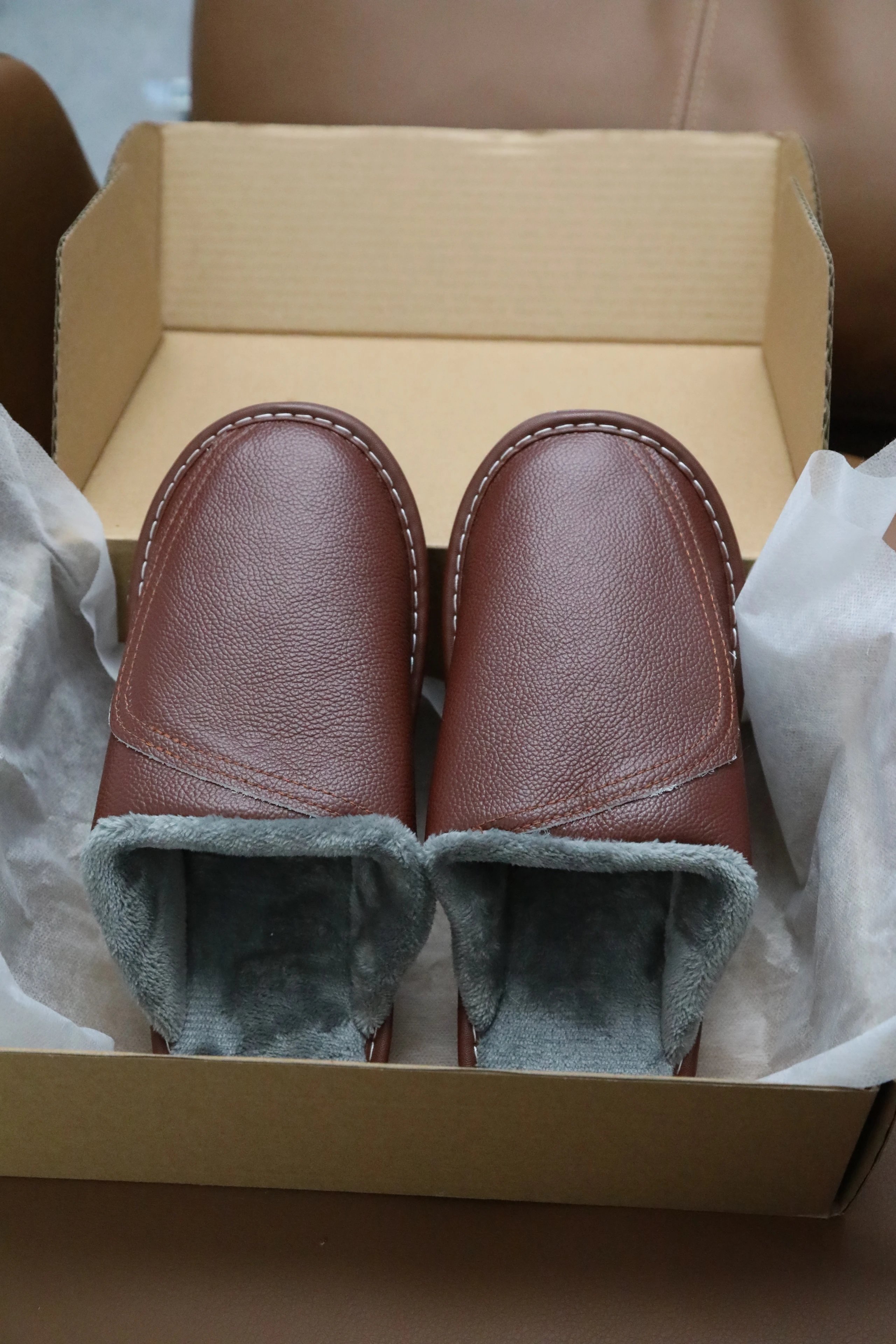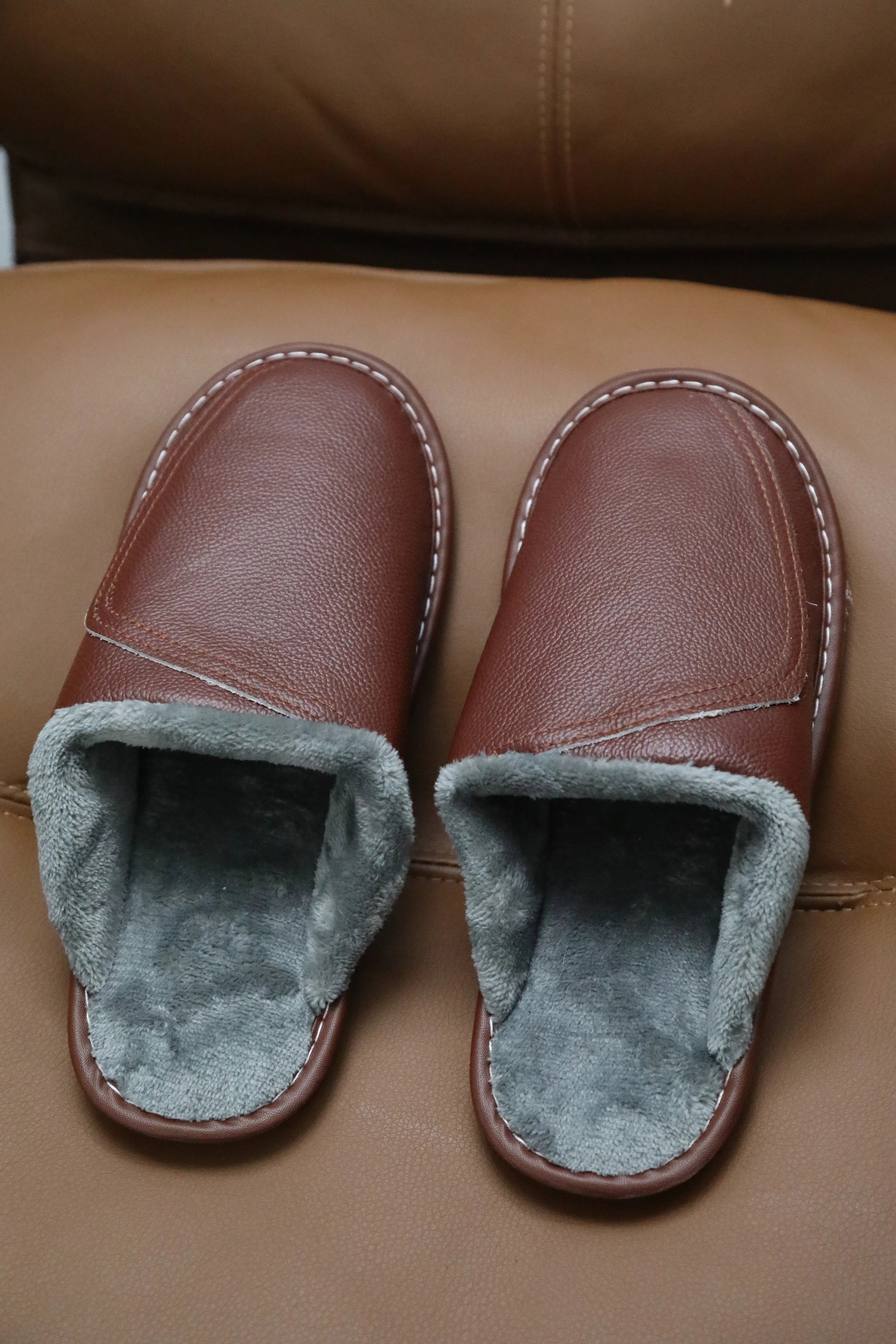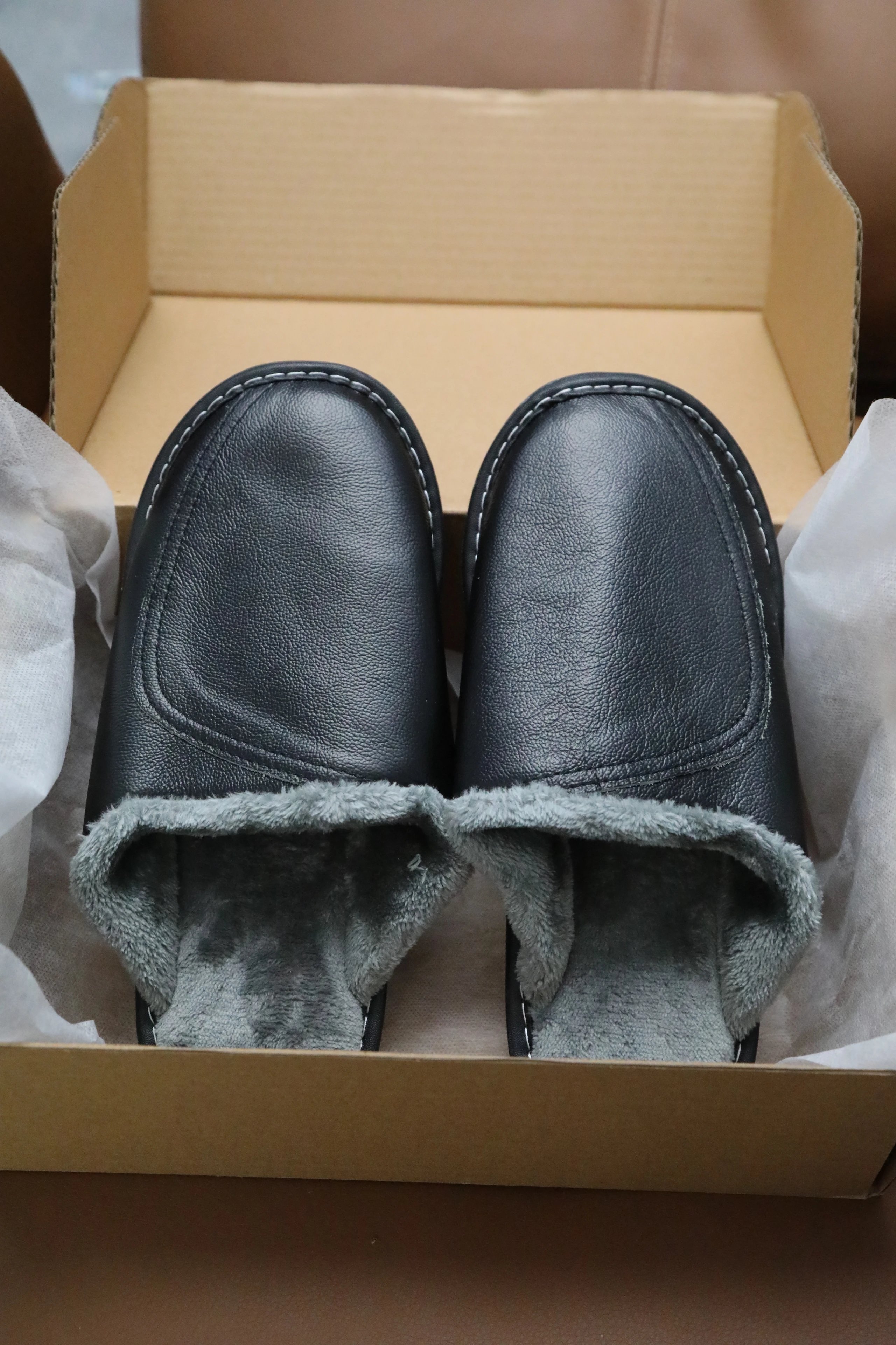 【商品品名】男款冬季头层牛皮拖鞋