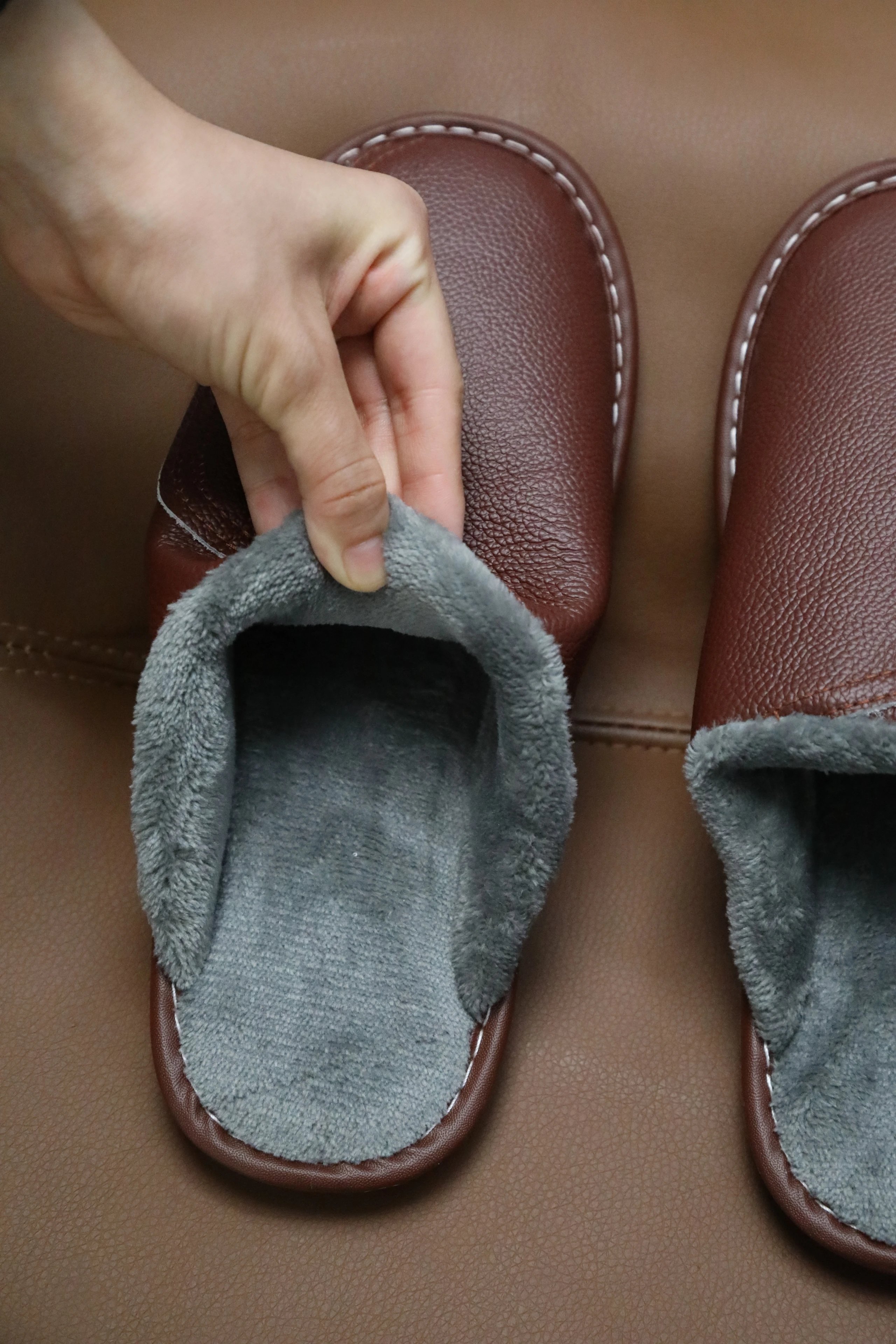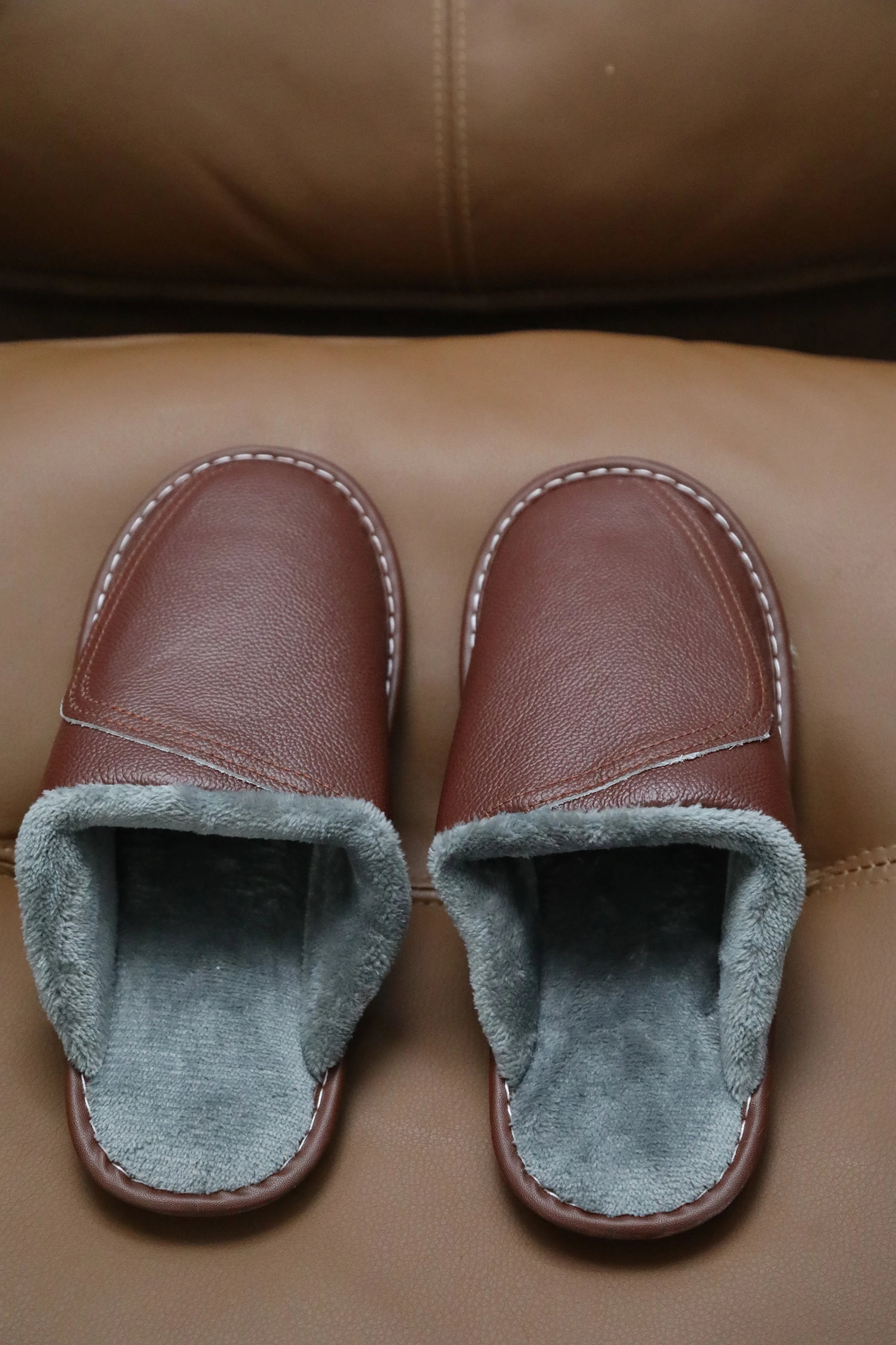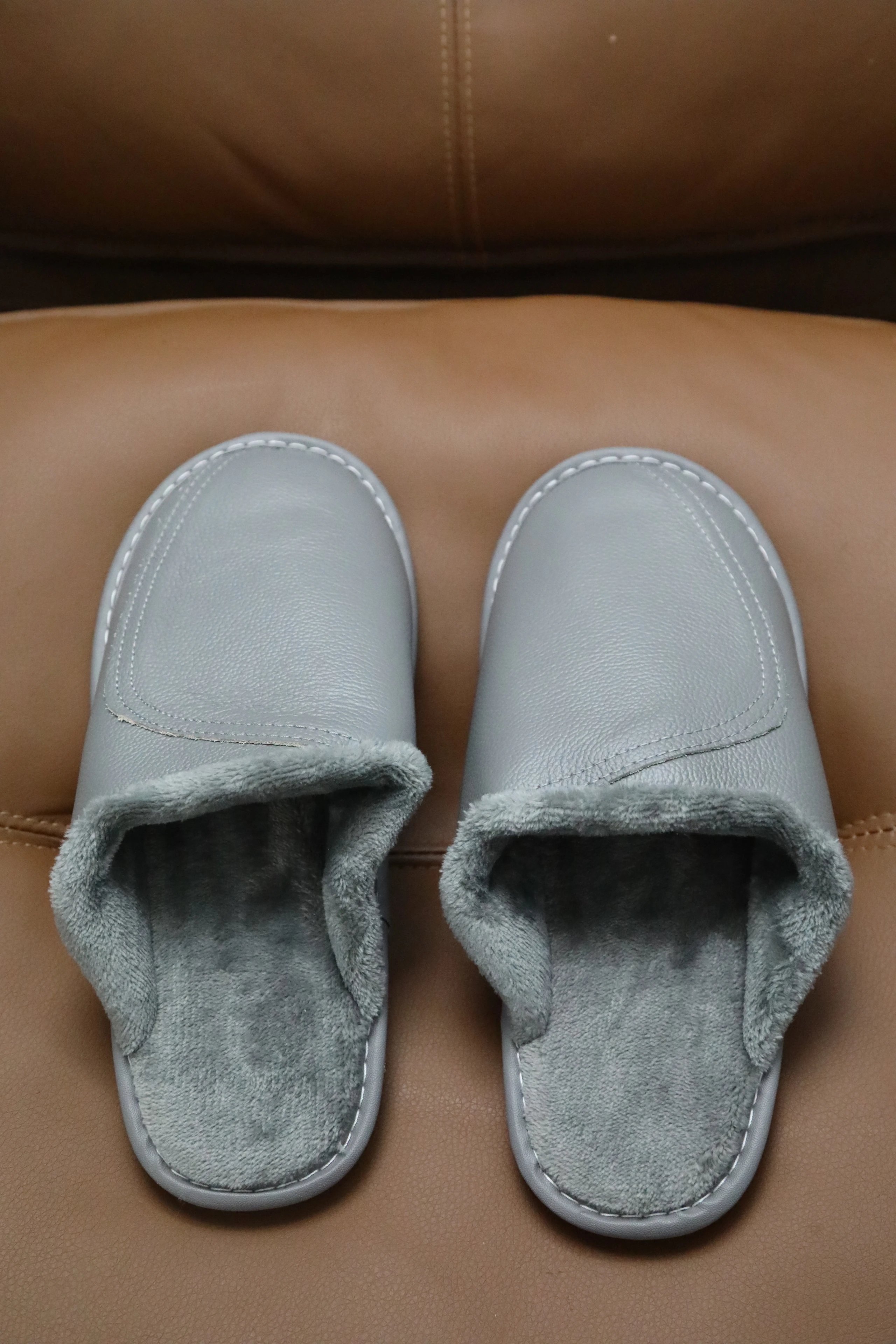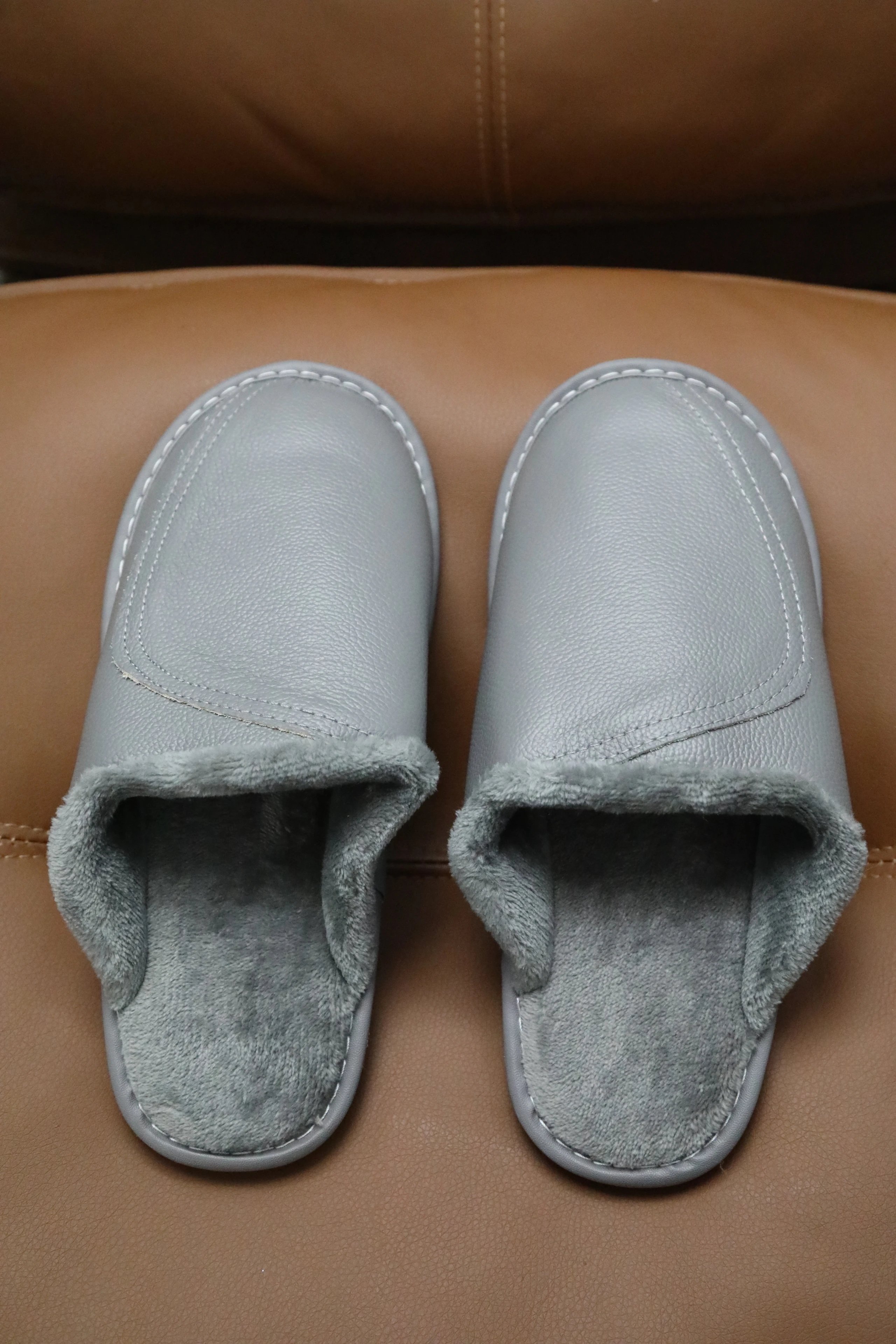 【商品品名】男款冬季头层牛皮拖鞋