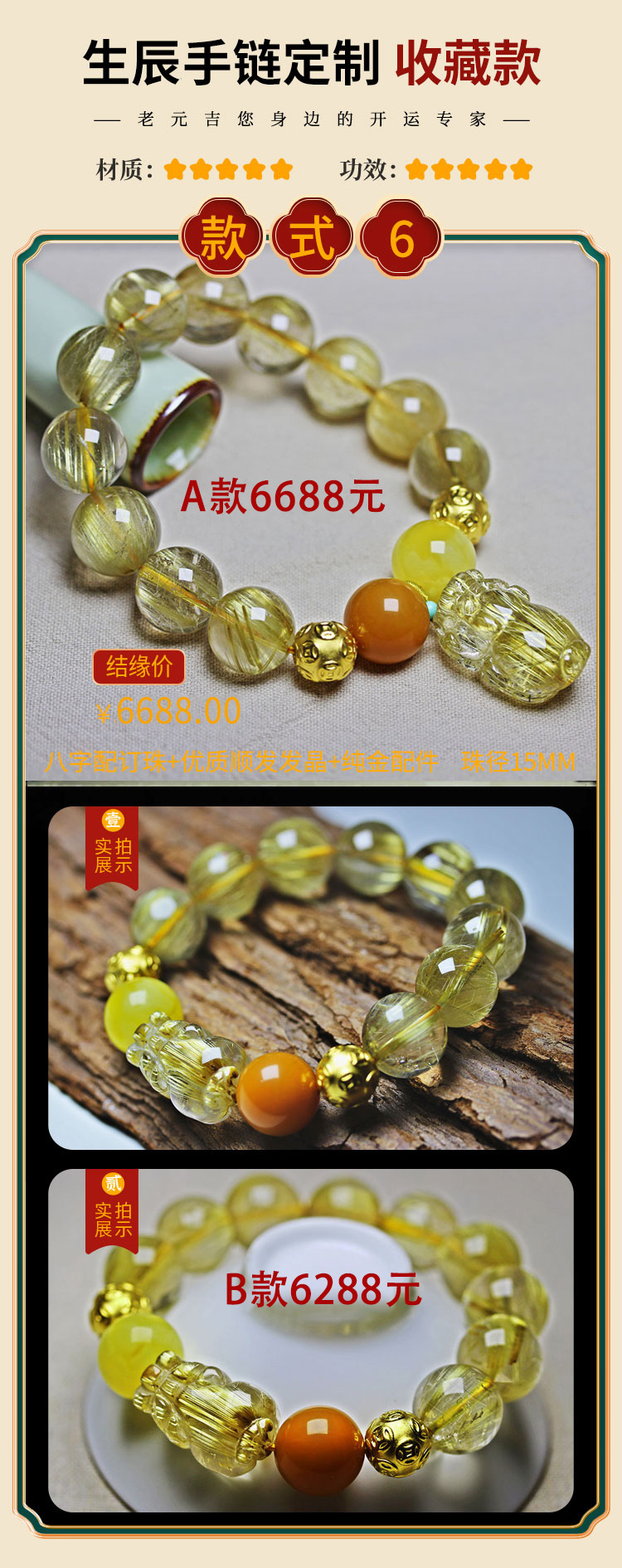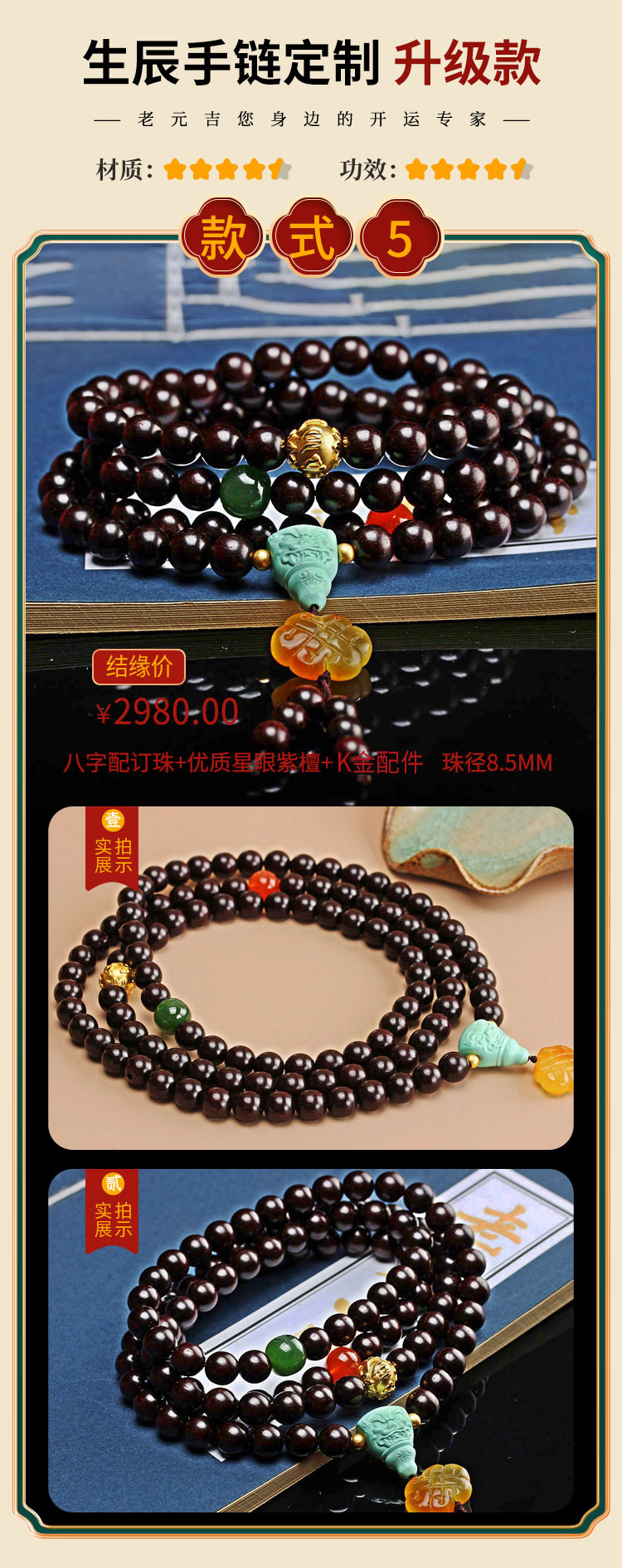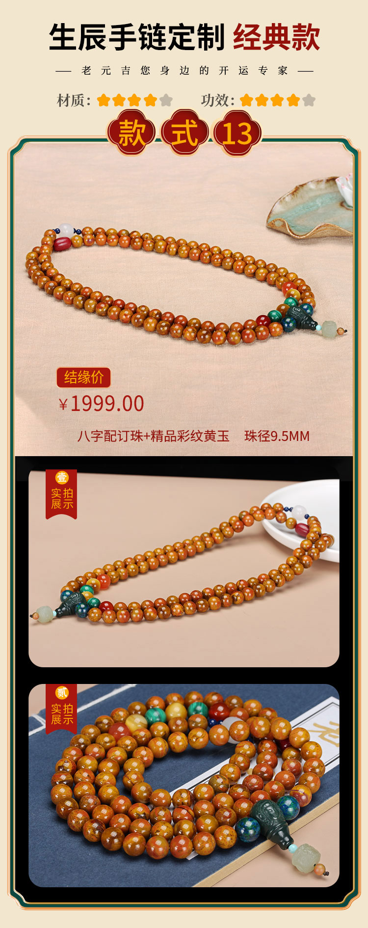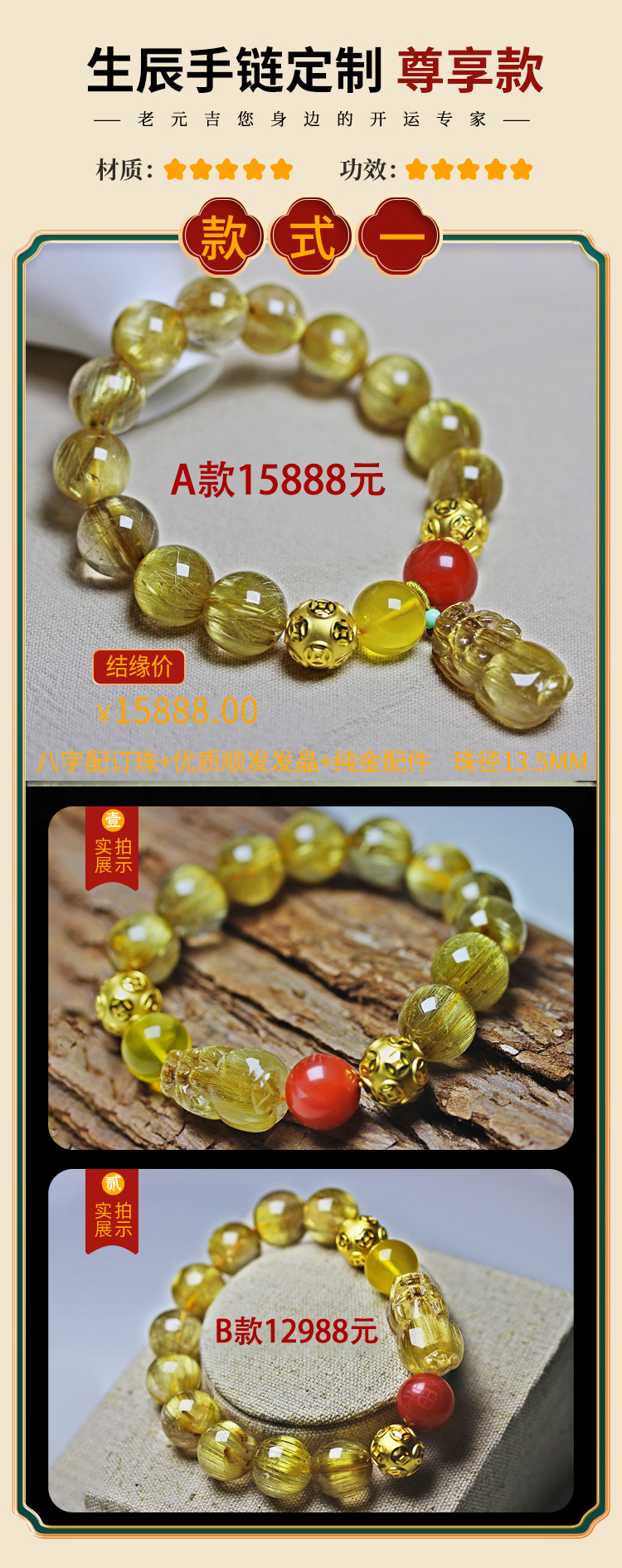 一对一私人定制手链【元吉星辰手链男款】单圈多圈手串