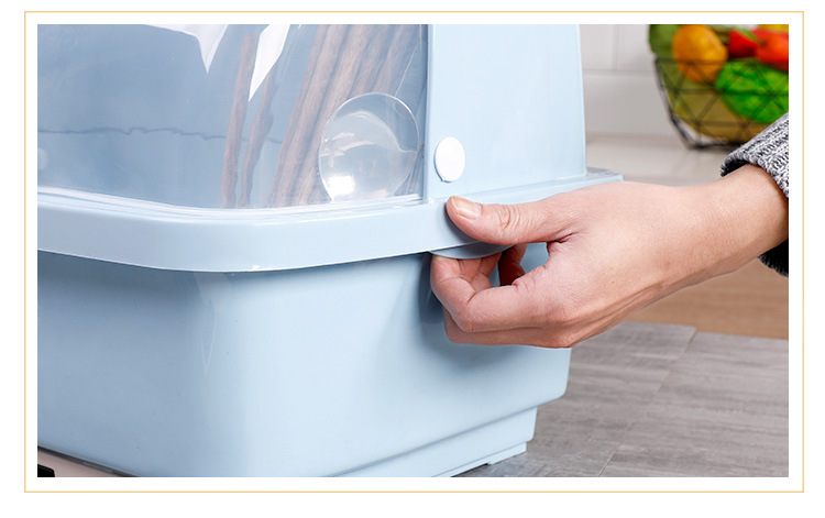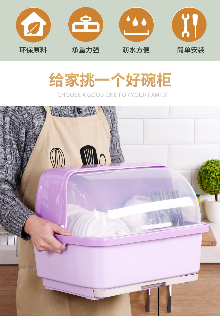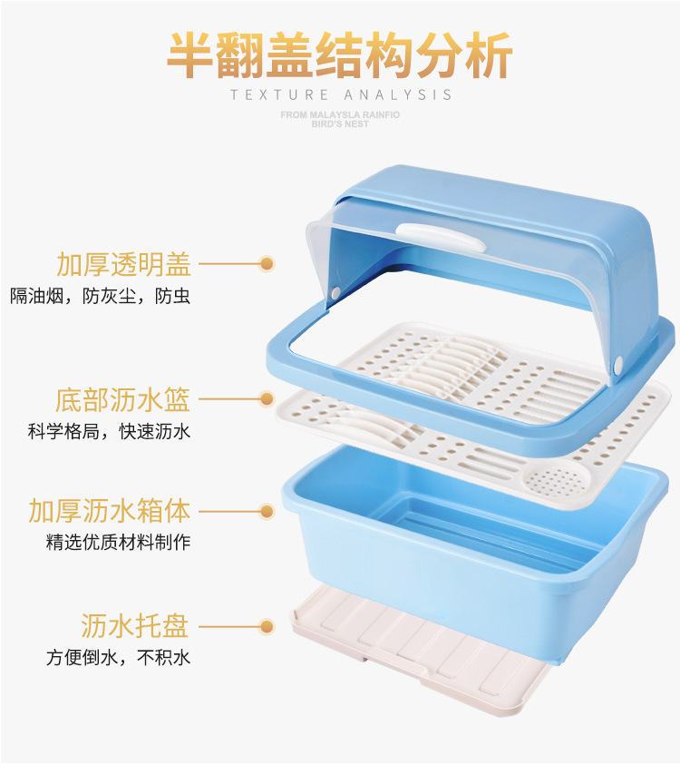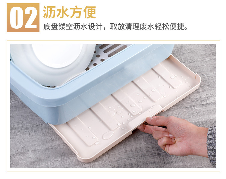 【带盖防尘,快速沥水】抽水碗柜厨房沥水碗架 带盖碗筷餐具收纳盒 塑料碗碟架置物架收纳箱-QQ