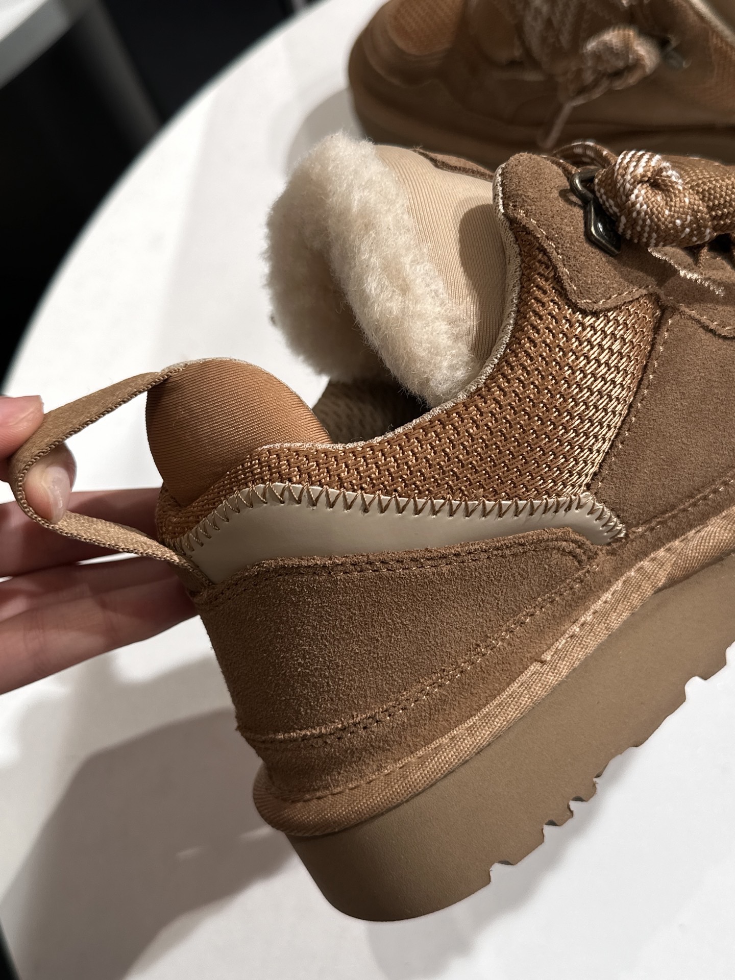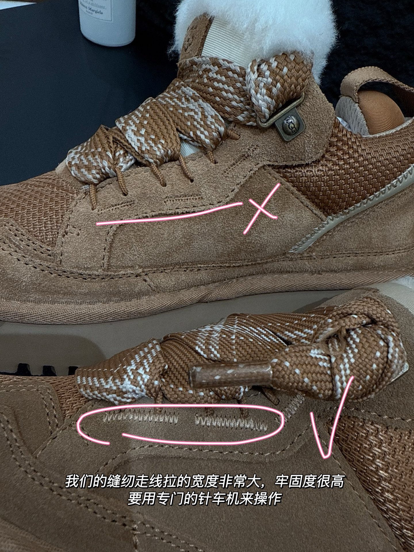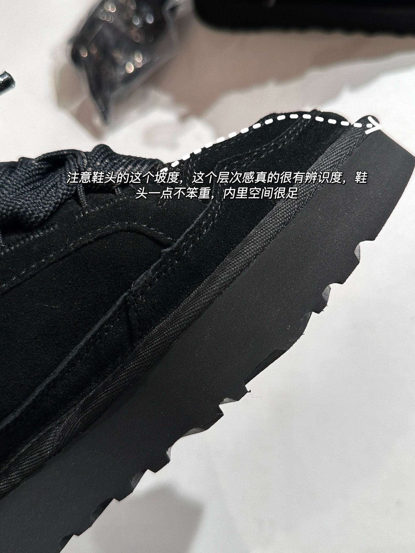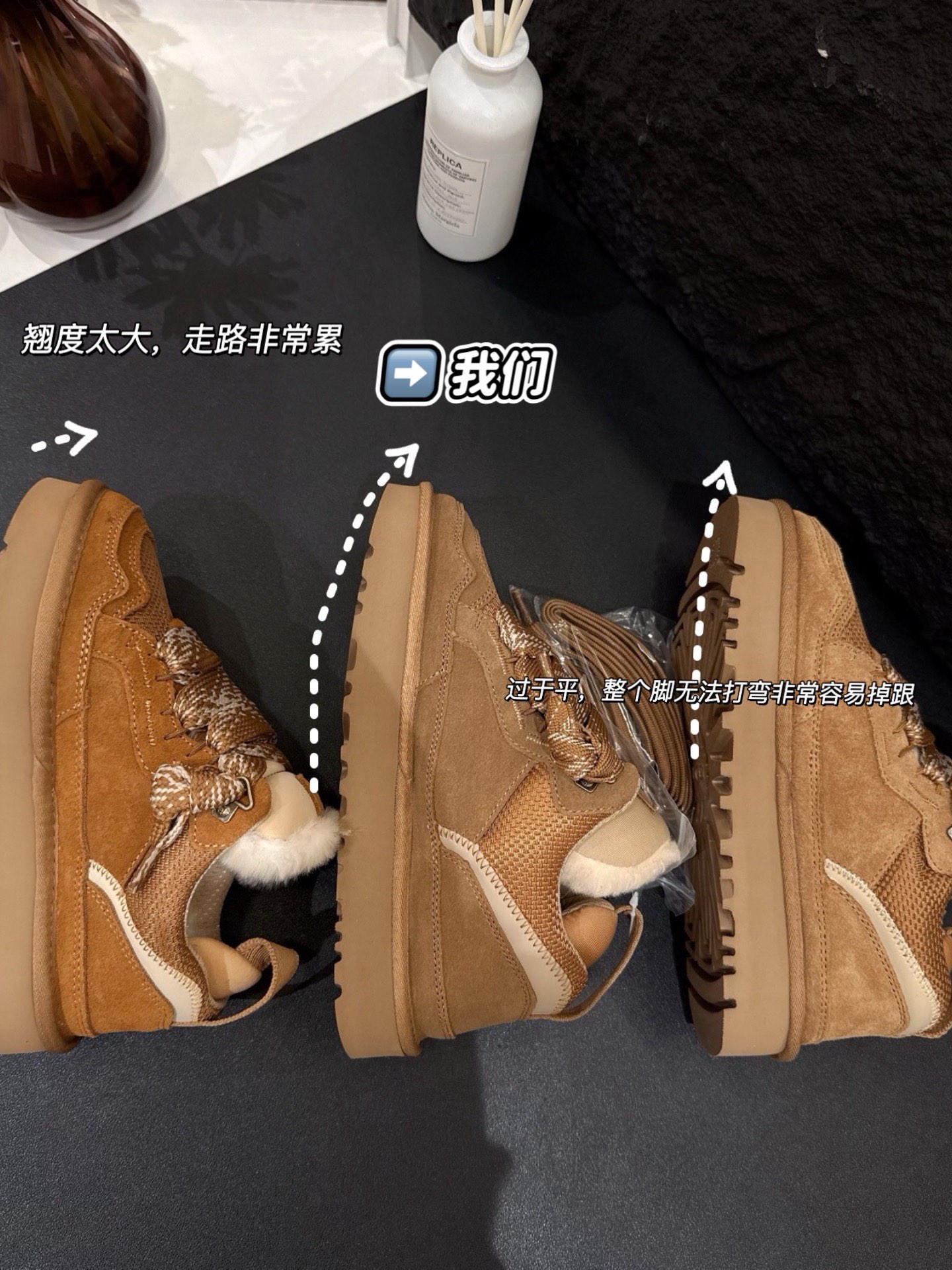 宛若一只面包👟搭配双拼色宽鞋带的设计直接赢麻了,三公分左右的厚底让你走路相当平稳!!!注意它的鞋带可以固定在两侧 直接一脚蹬巨方便