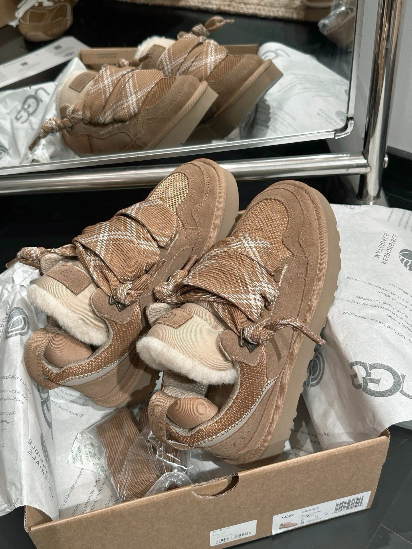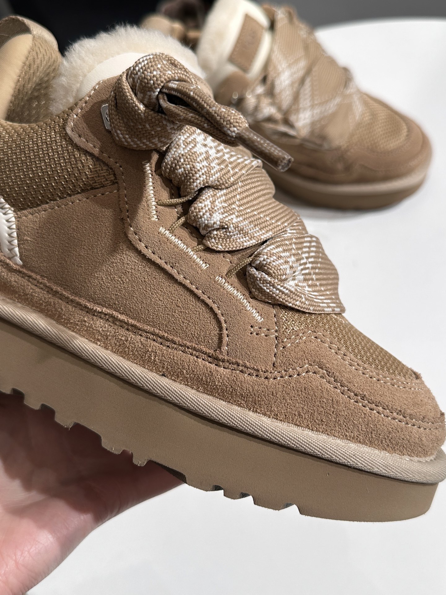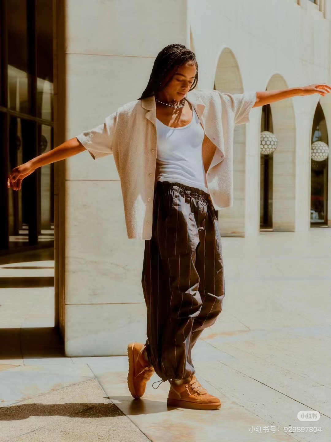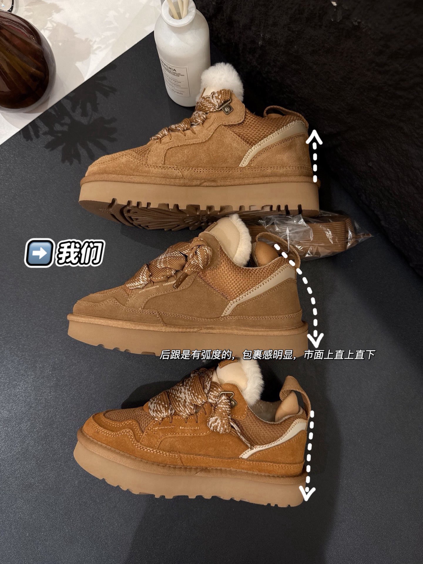 宛若一只面包👟搭配双拼色宽鞋带的设计直接赢麻了,三公分左右的厚底让你走路相当平稳!!!注意它的鞋带可以固定在两侧 直接一脚蹬巨方便